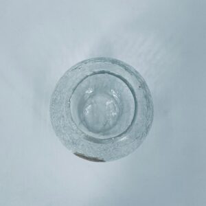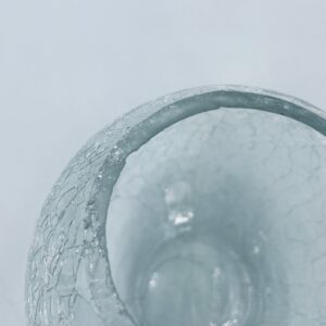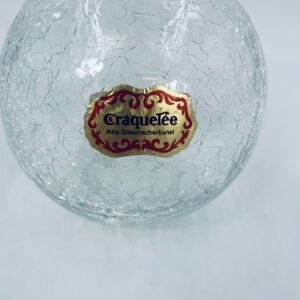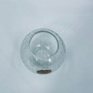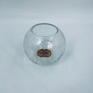 A decorative vase in vintage style, made of high-quality crystal glass, transparent. A spherical vase with a characteristic cracked glass texture (craquelure effect). It has a chip on the upper edge.
