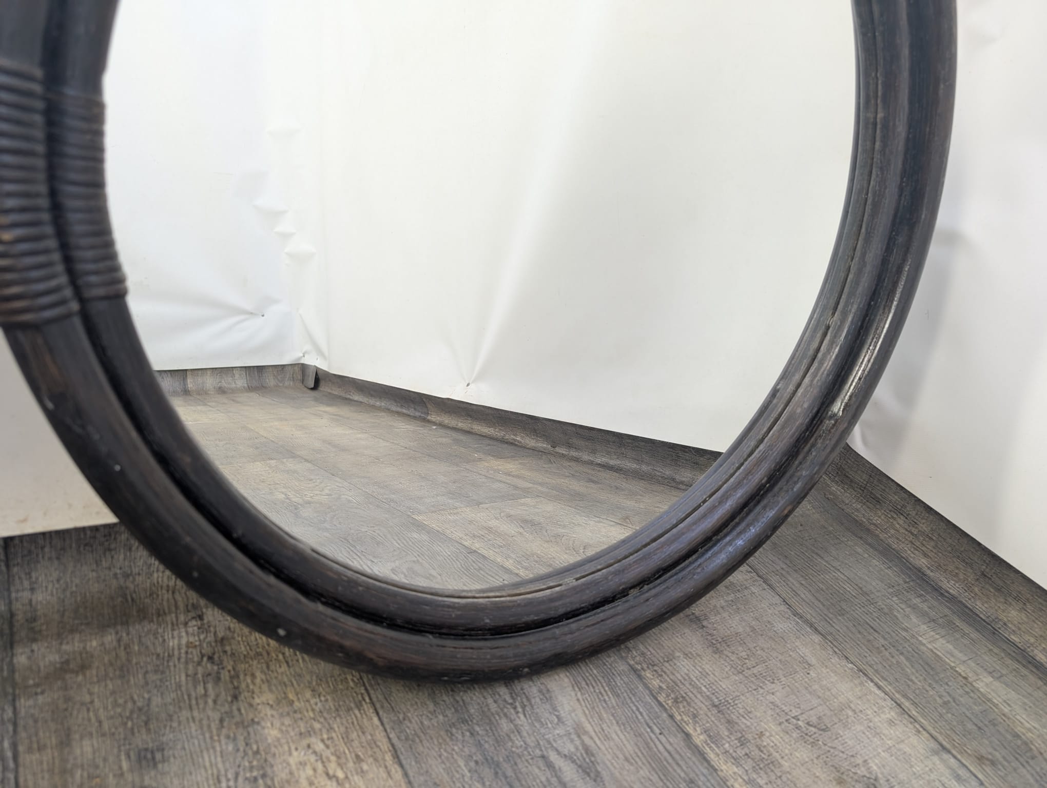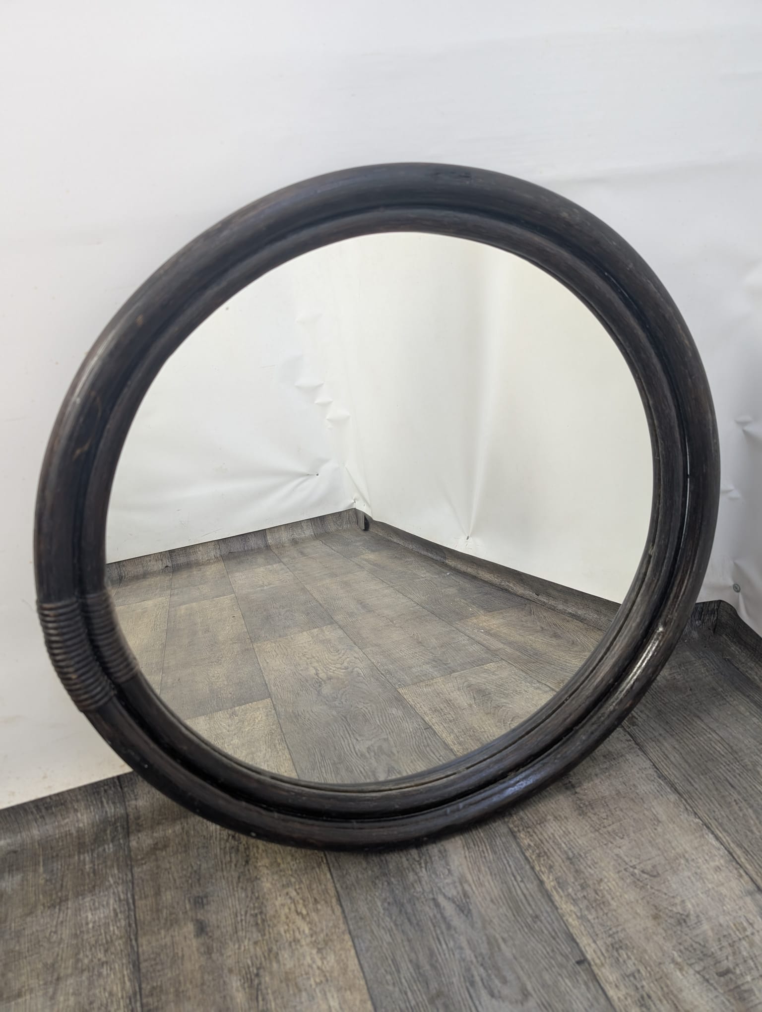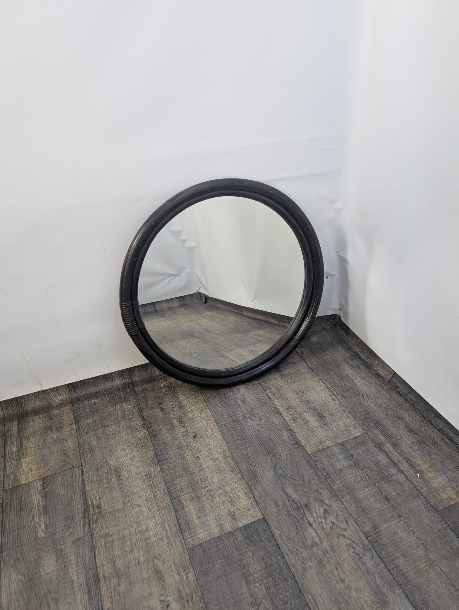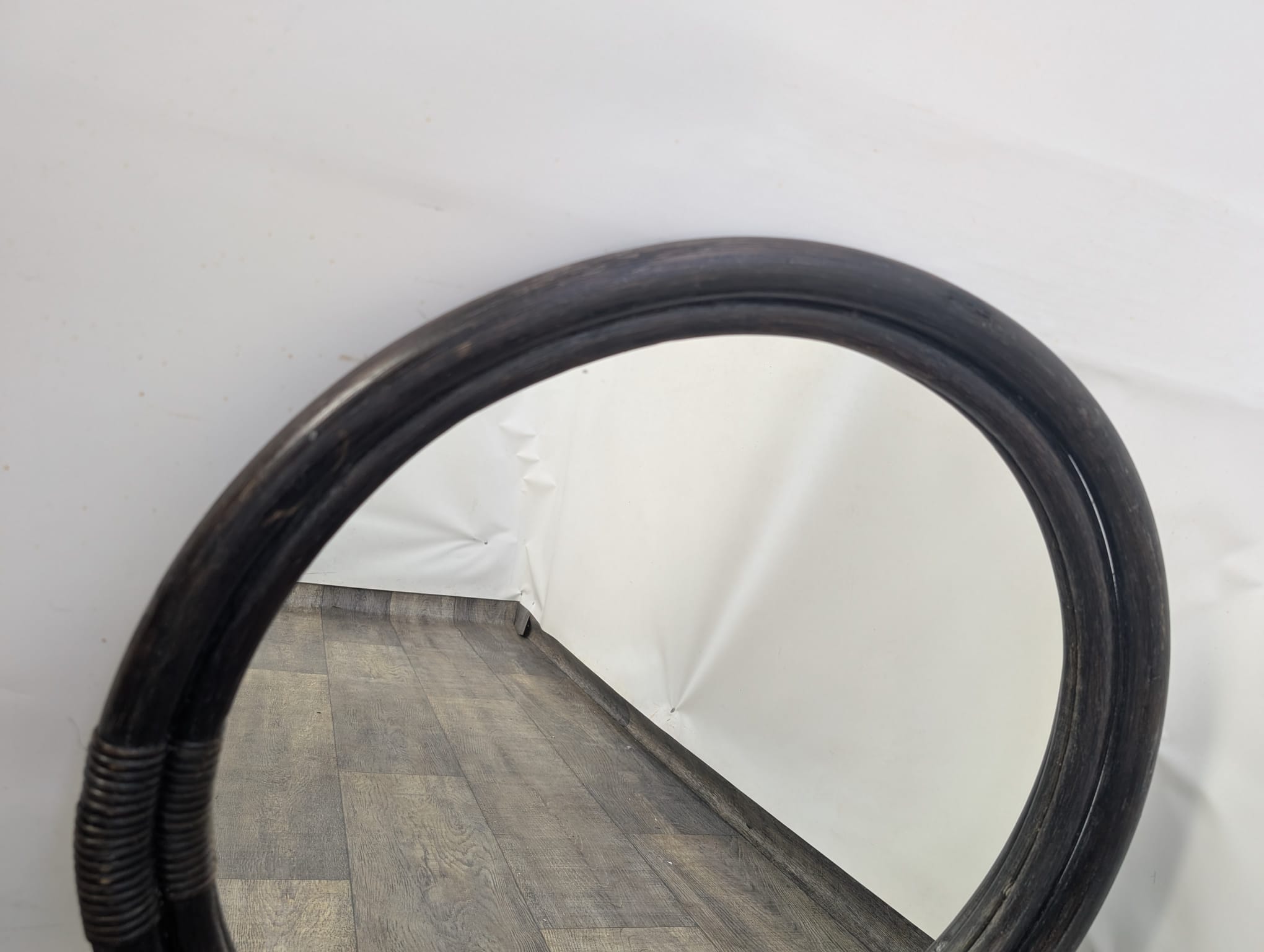 Vintage round rattan mirror