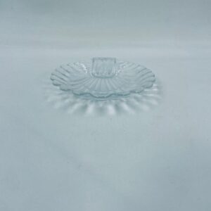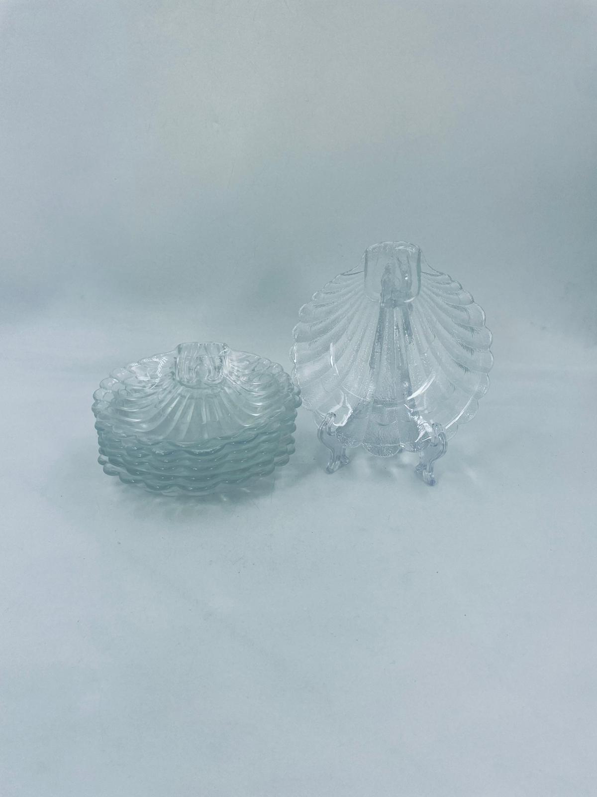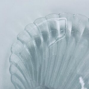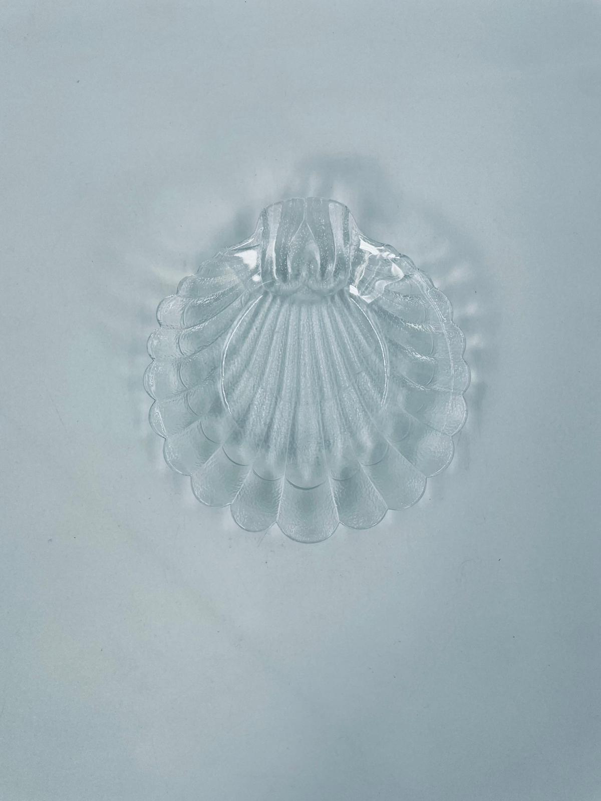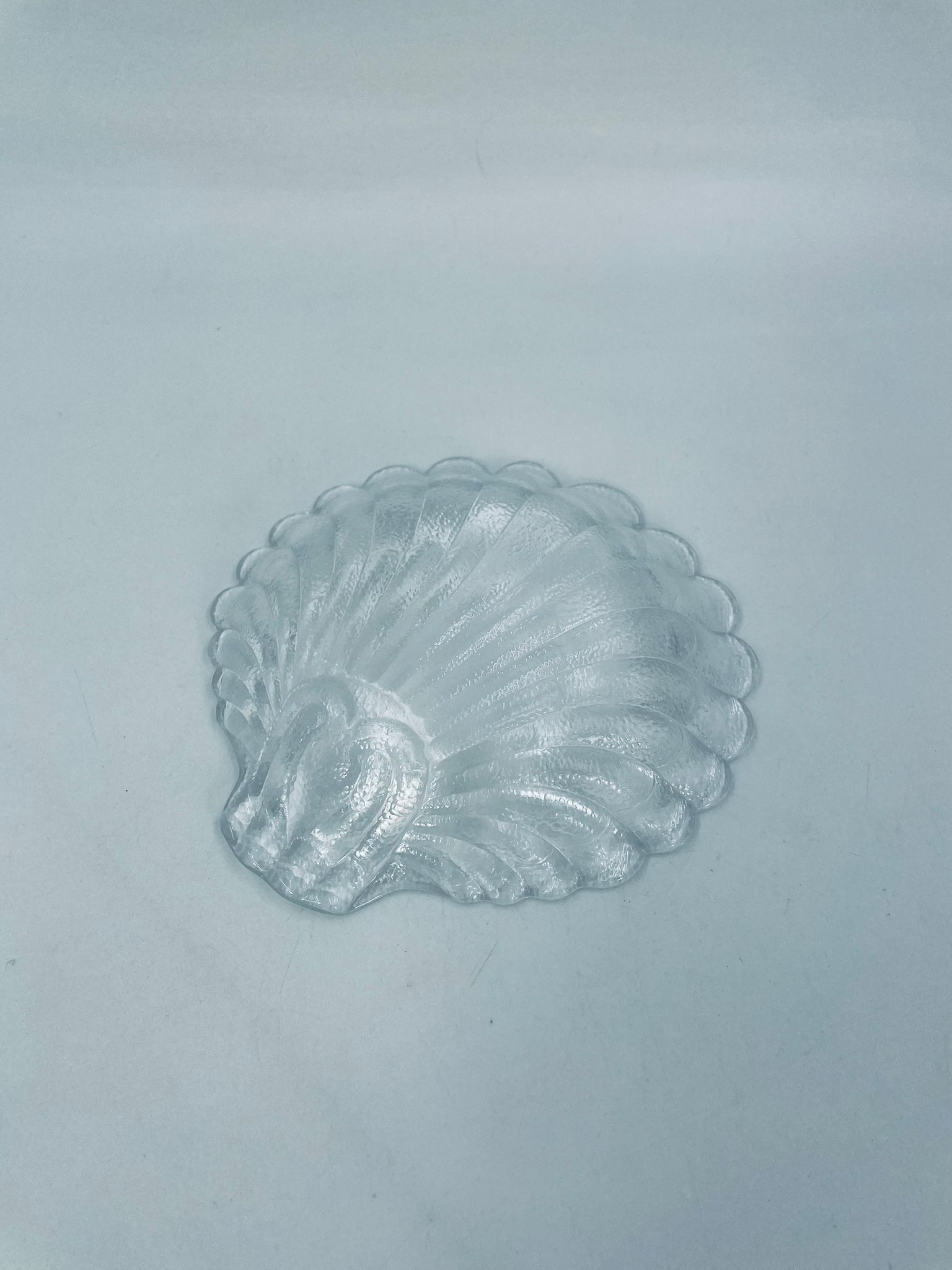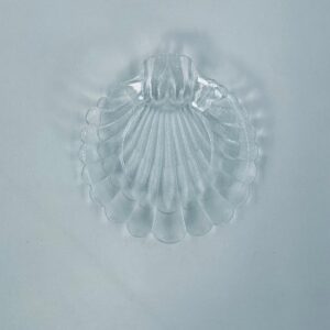 A vintage-style snack plate made of high-quality transparent glass. The plate is shaped like a scallop shell with a distinctive ribbed pattern resembling a shell.
