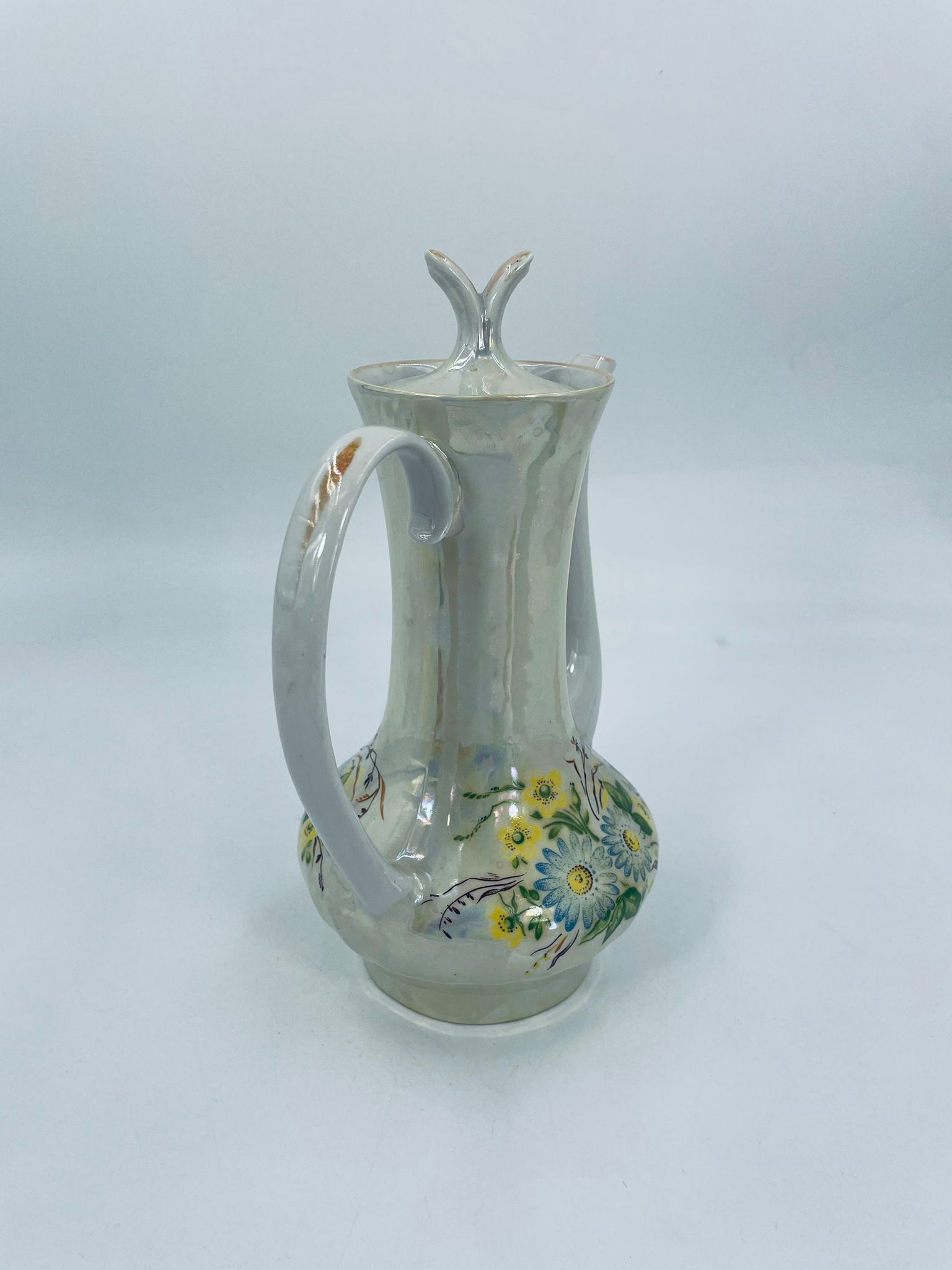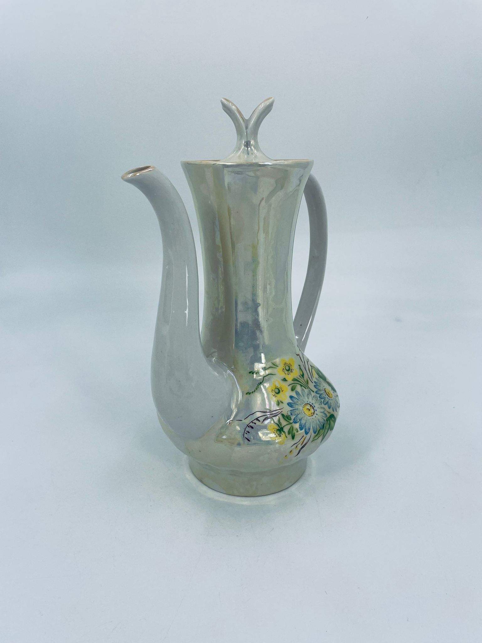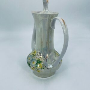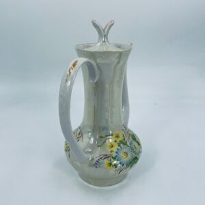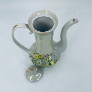 A vintage-style jug made of pearl porcelain in shades of green and yellow with floral decoration. The jug dates back to the Soviet era. This collector's item can also be used for everyday purposes.