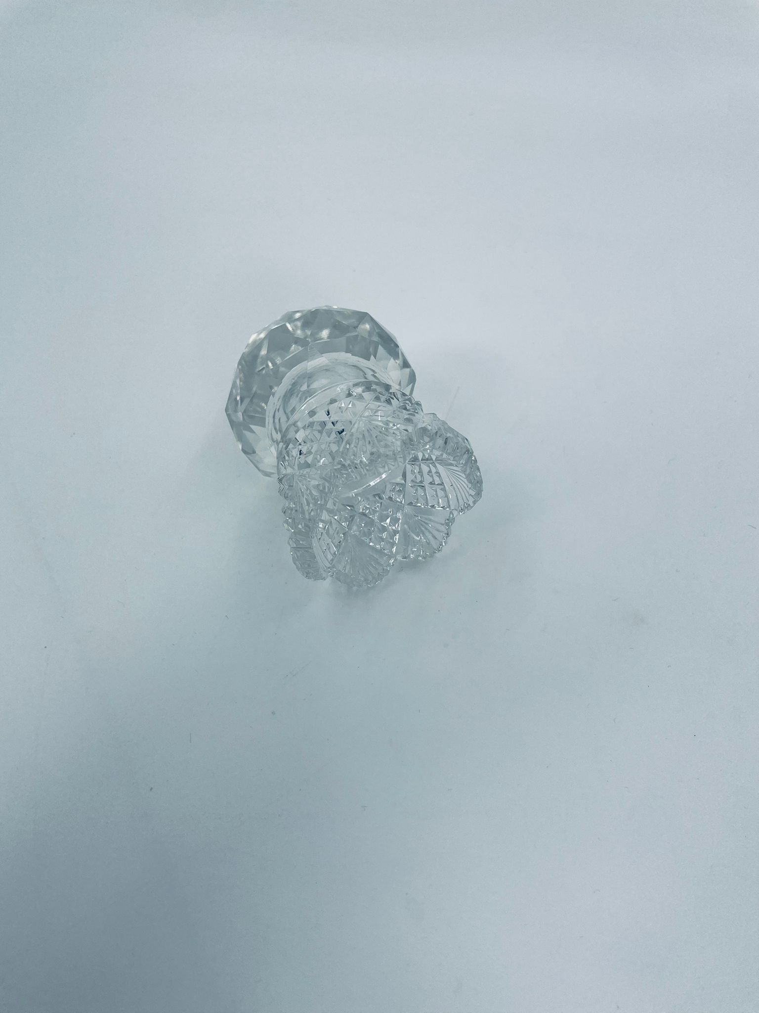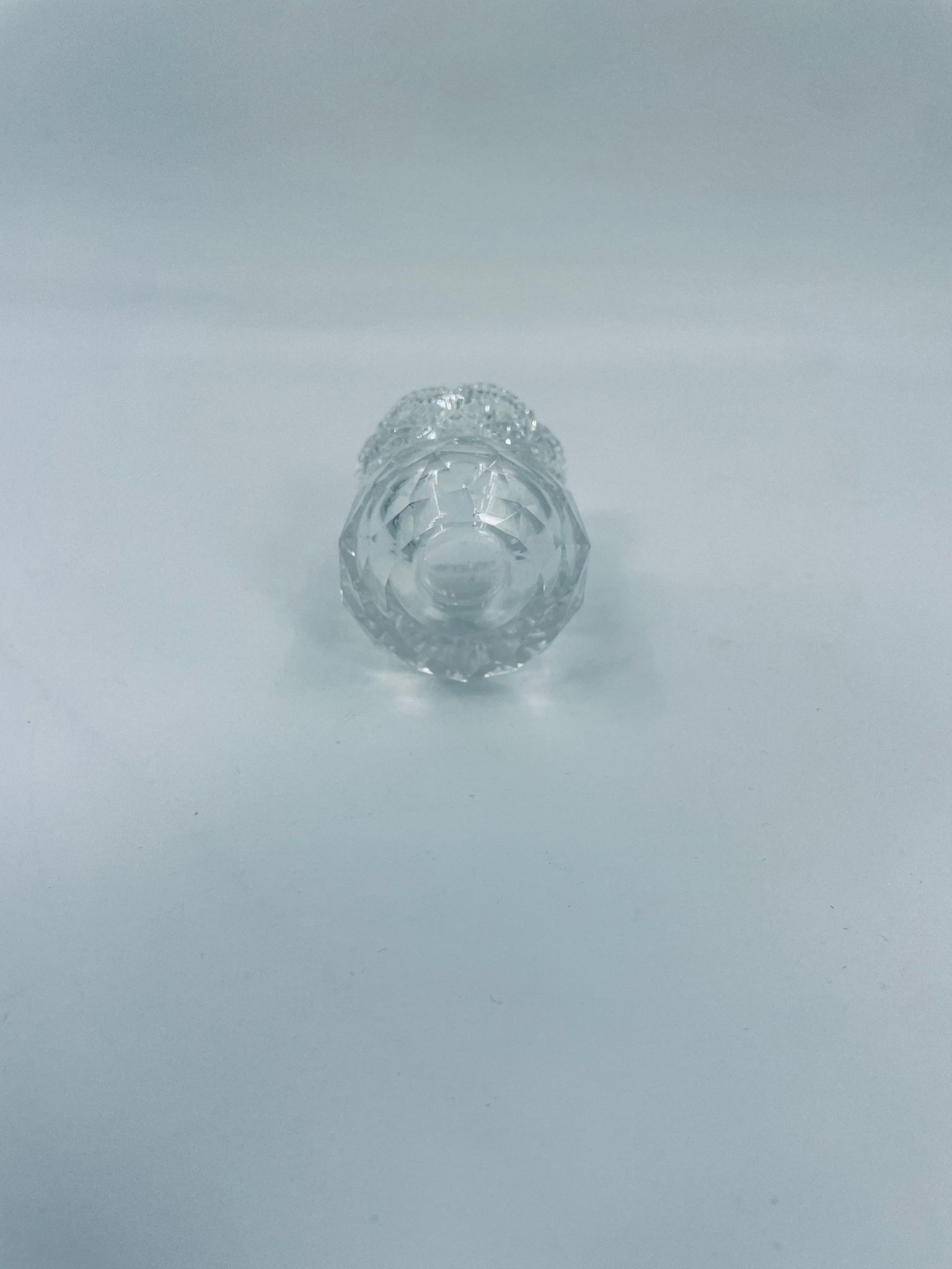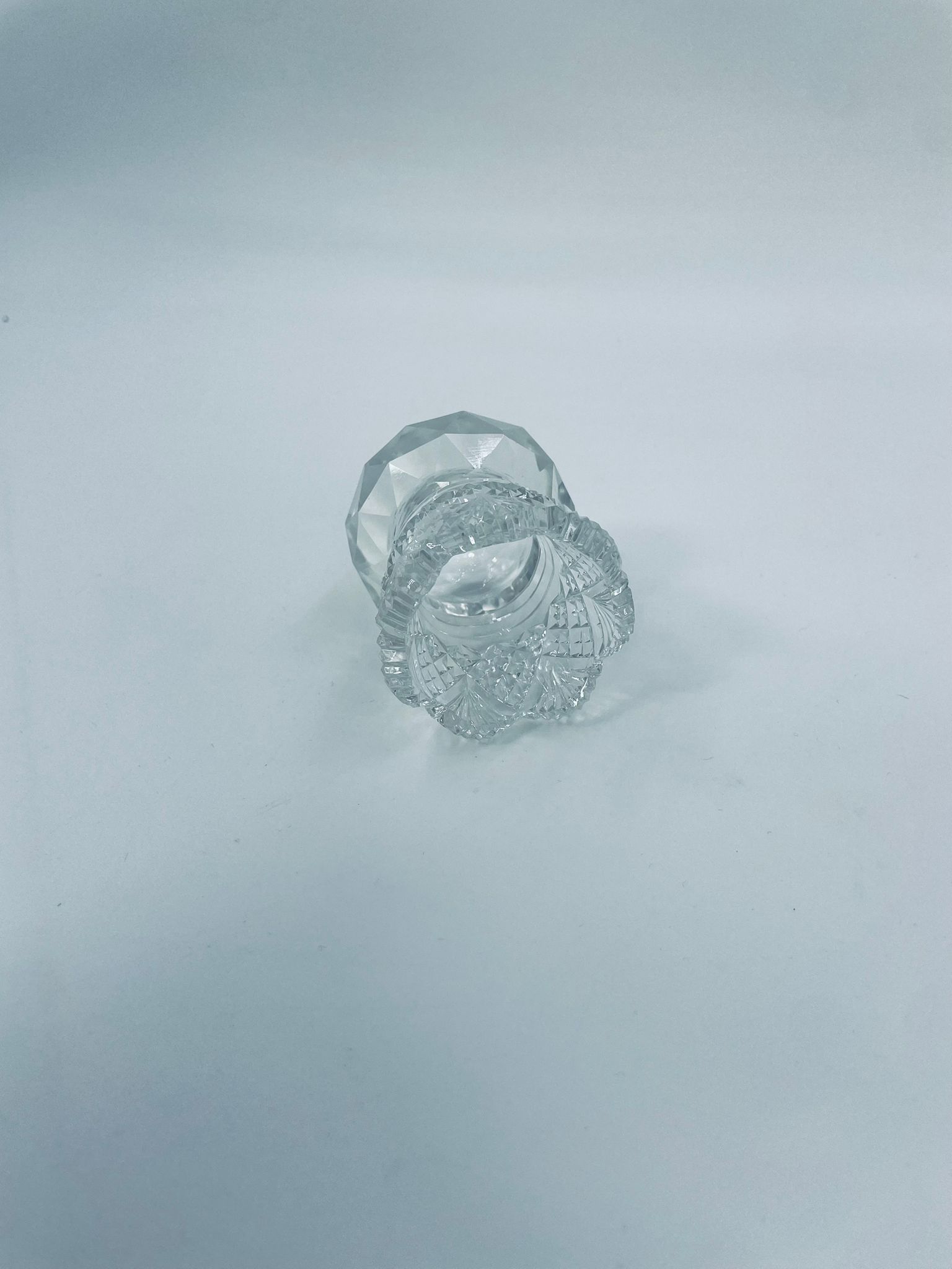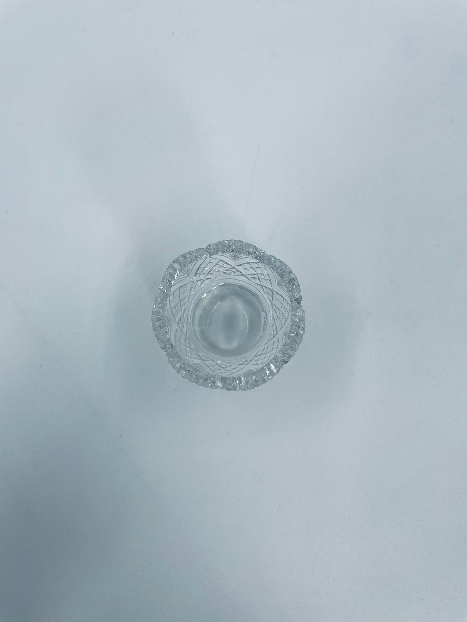 Vintage style toothpick container, made of high quality cut crystal clear glass. It is characterised by its irregular fluted rim and fan pattern.
