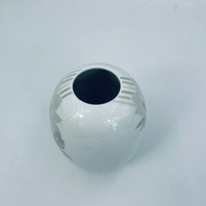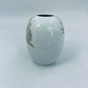 A glazed porcelain vase by the Arzberg factory in white, decorated with a floral motif in shades of grey and beige. The vase has a spiral pattern on its surface. A beautiful decoration for any interior.