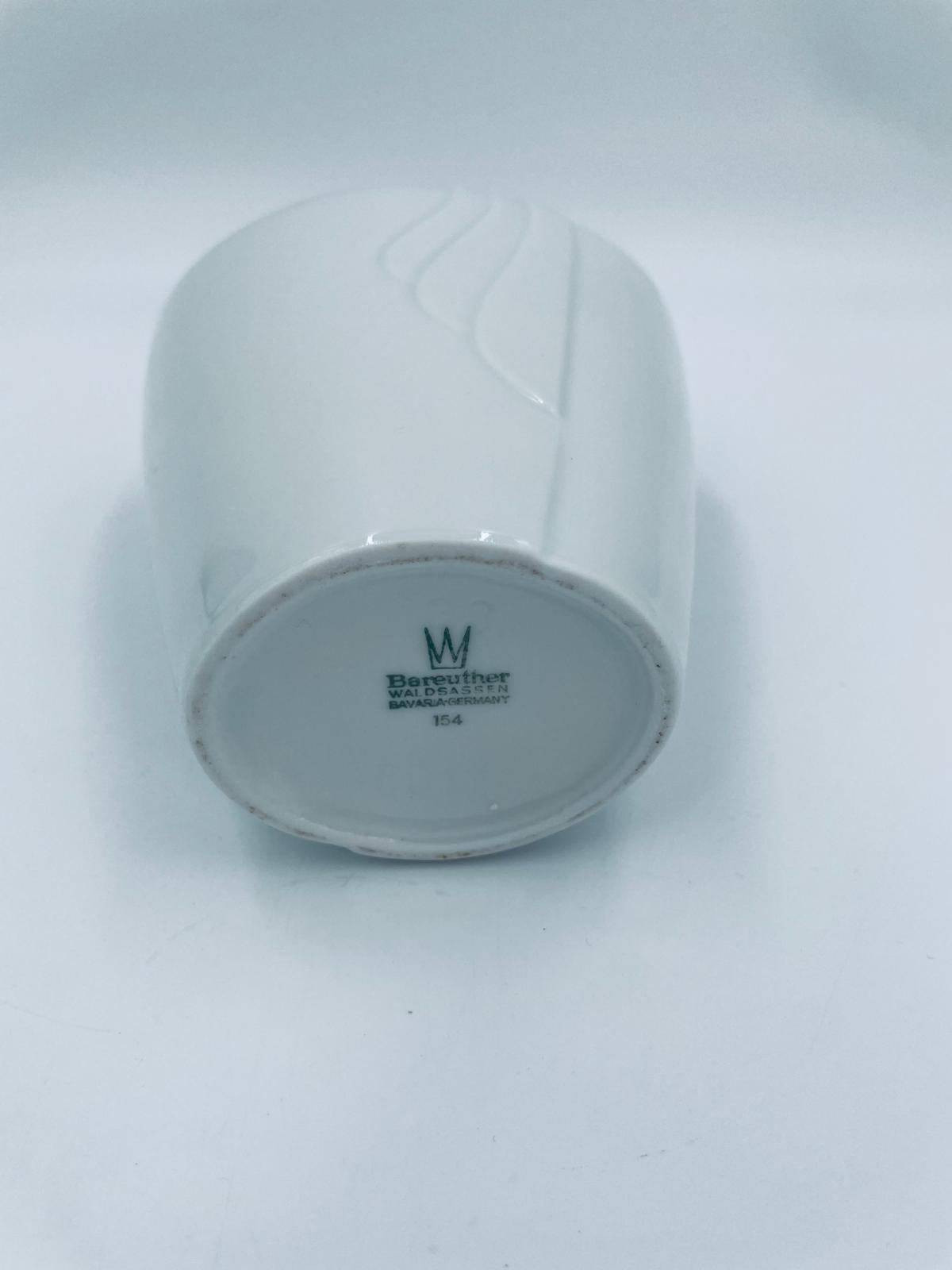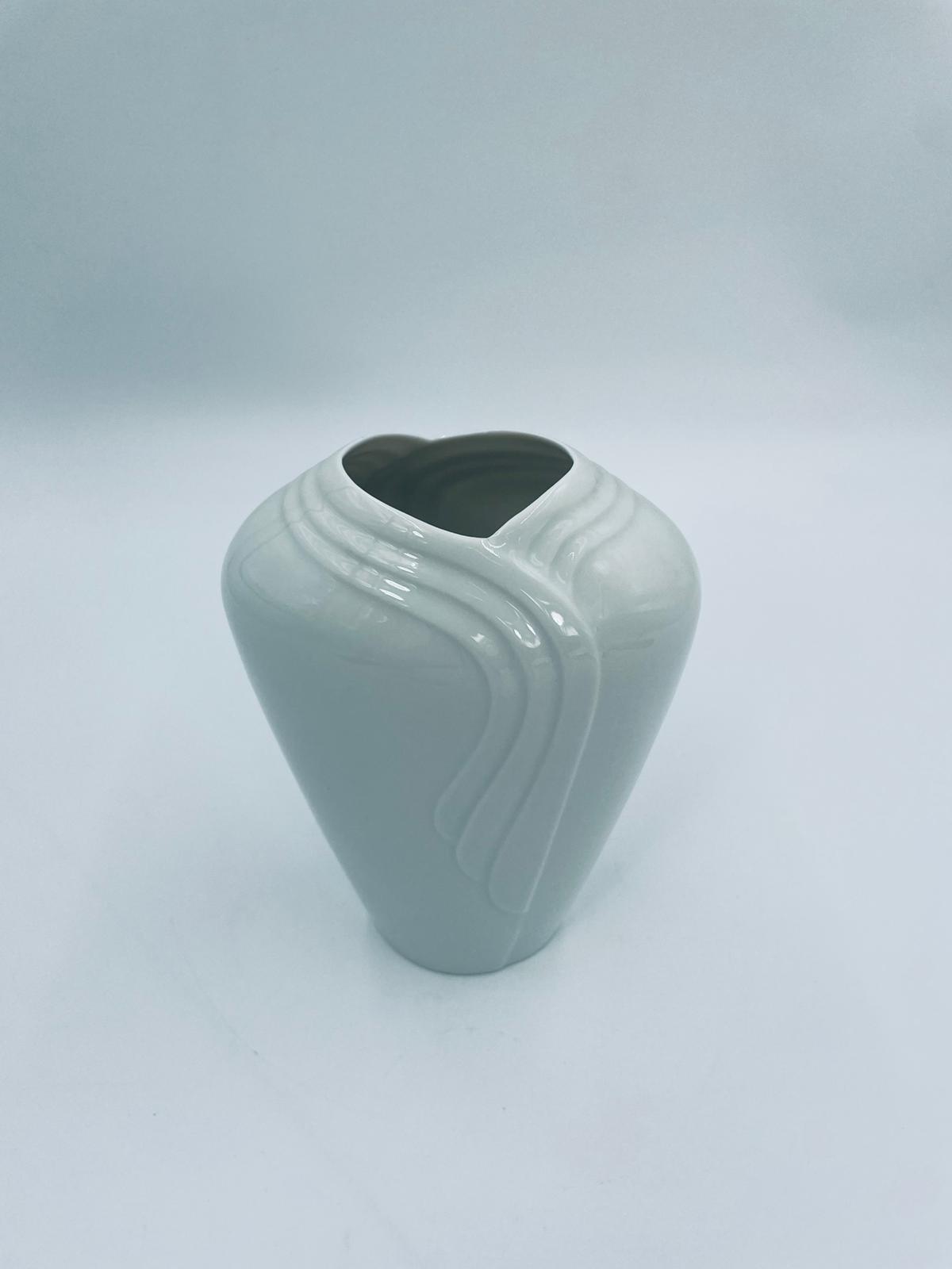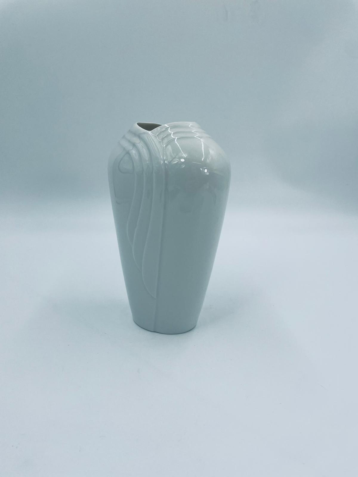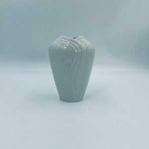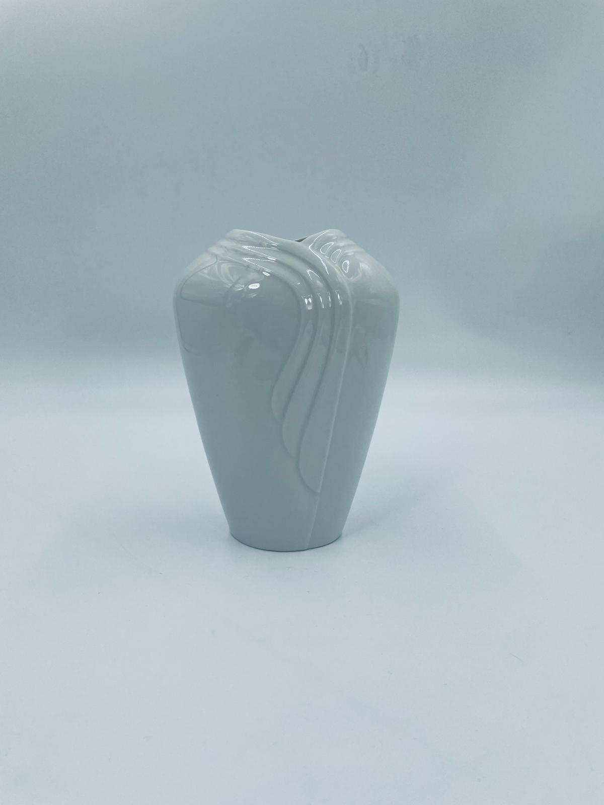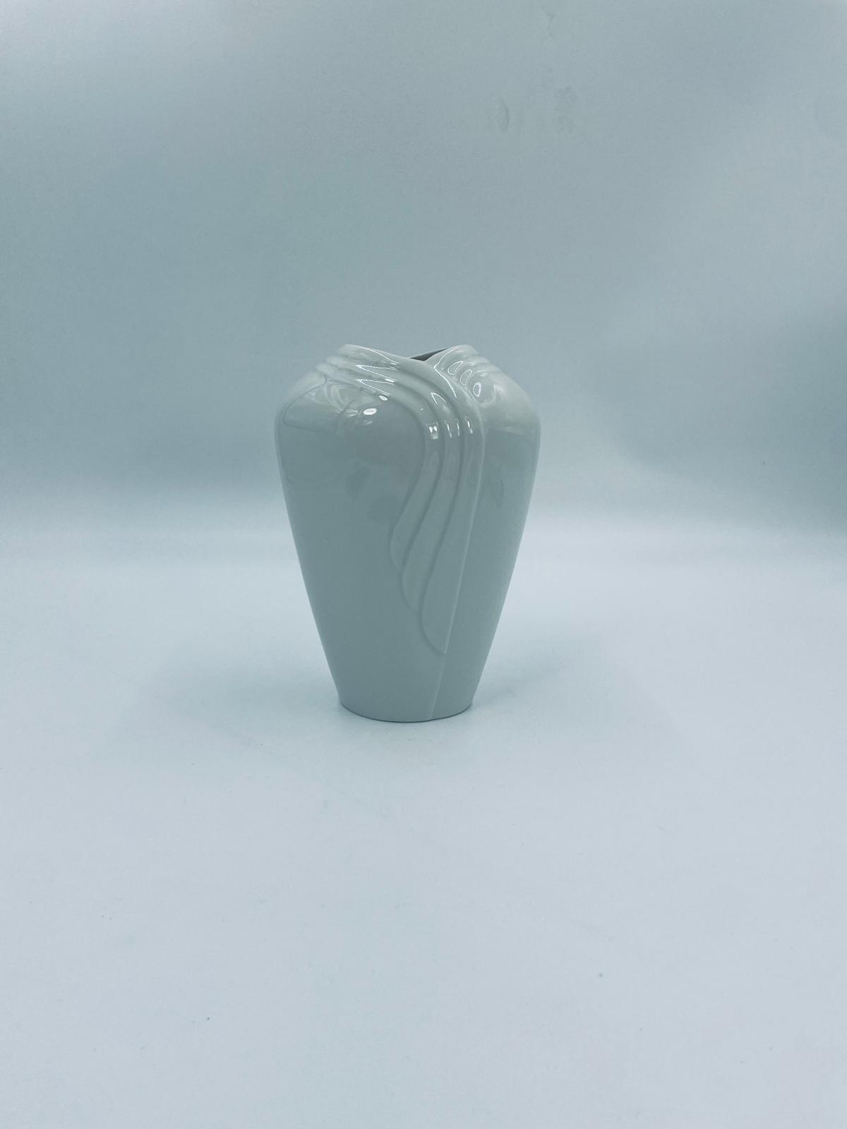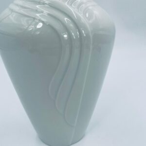 Wazon dekoracyjny wytwórni Bareuther Waldsassen, wykonany z wysokiej jakości białej porcelany w latach 60 i 70tych. Wazon charakteryzuje się nowoczesnym op-artowym designem z reliefowym wzorem fal.