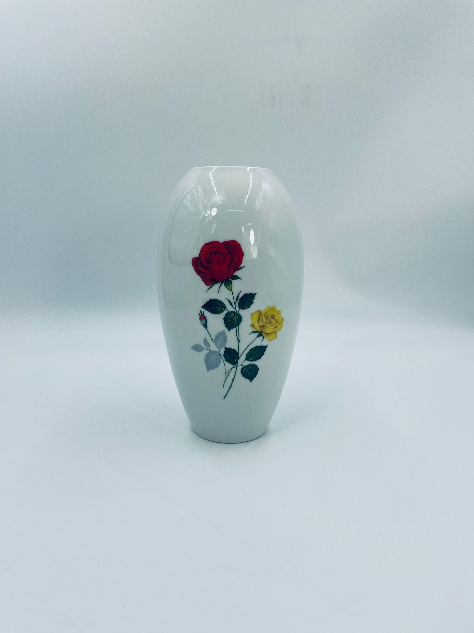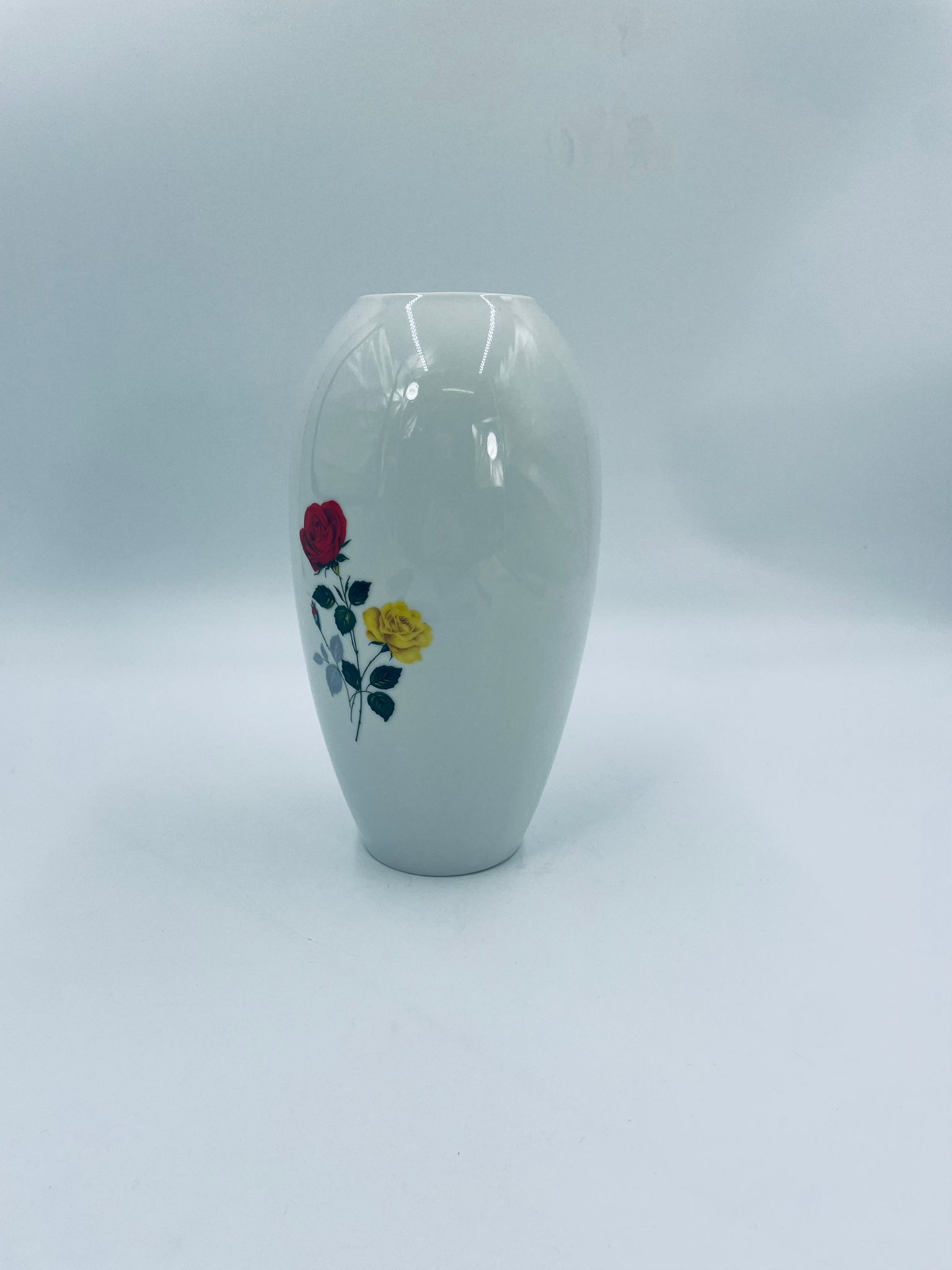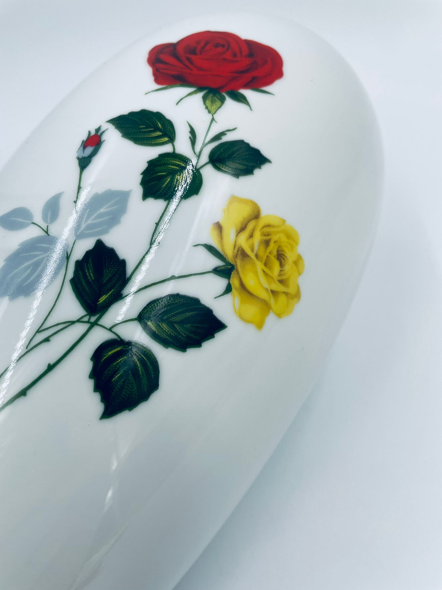 Wazon dekoracyjny wytwórni Creidlitz Bavaria, datowany na połowę XXwieku, wykonany z wysokiej jakości białej, szkliwionej porcelany. Wazon o owalnym kształcie z dekoracją róż po obu stronach.