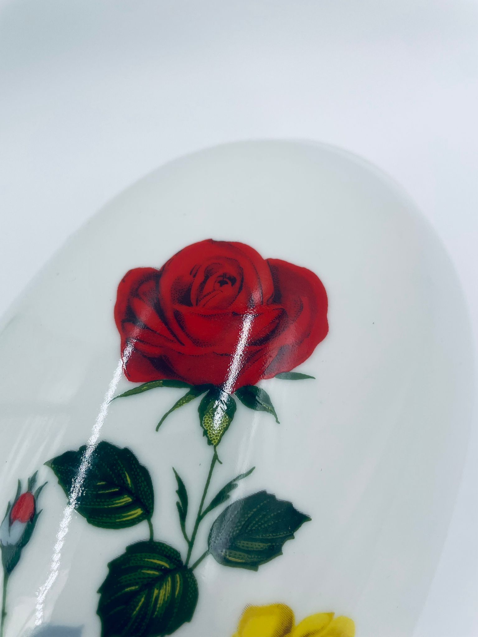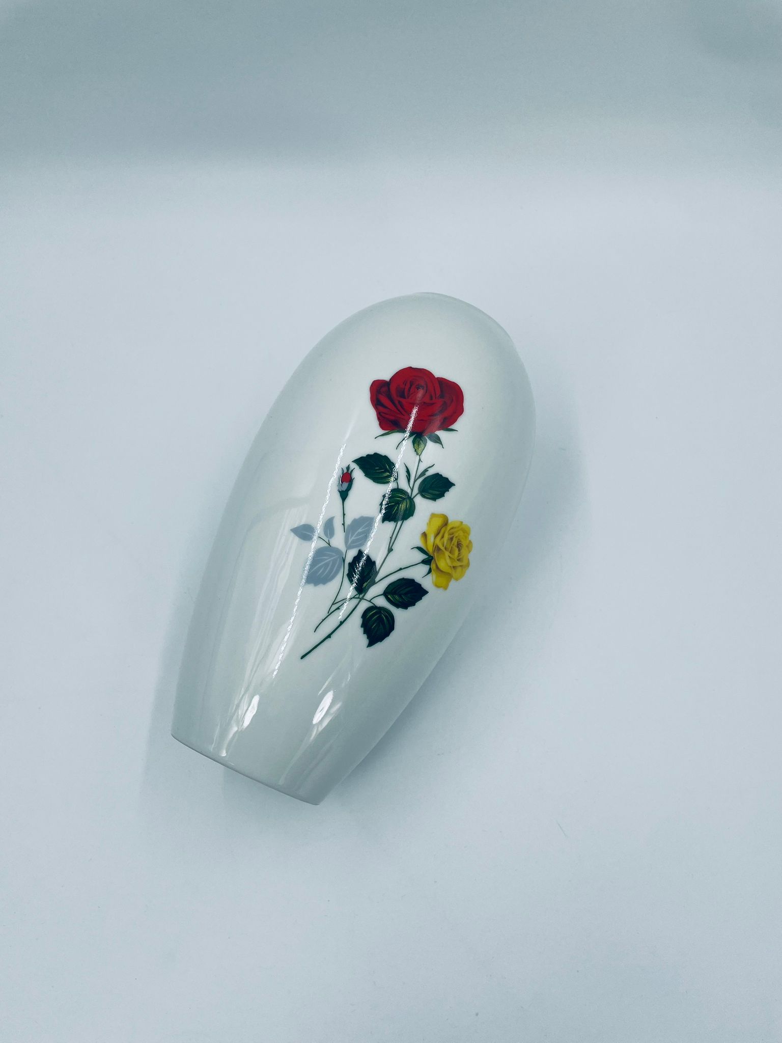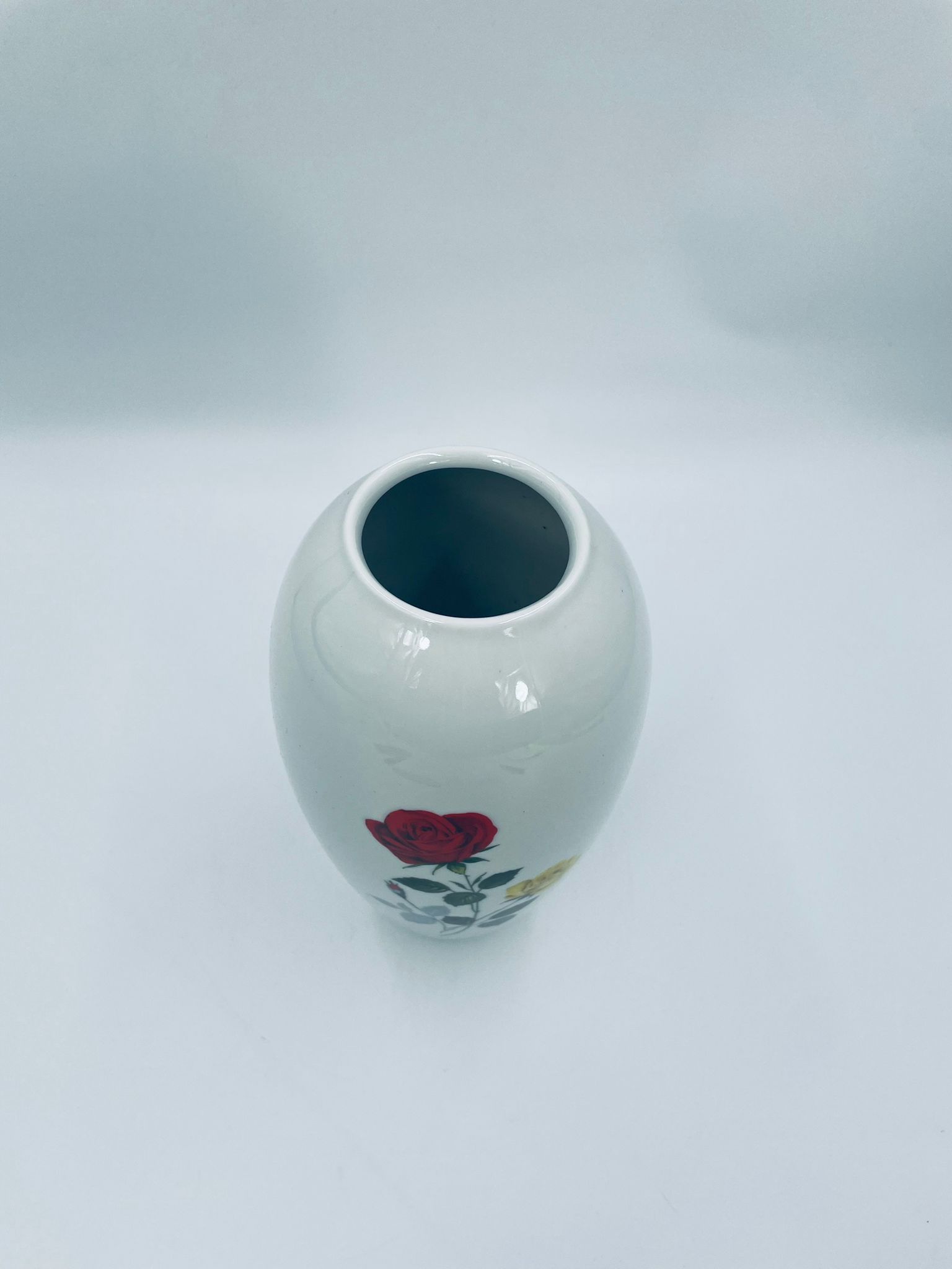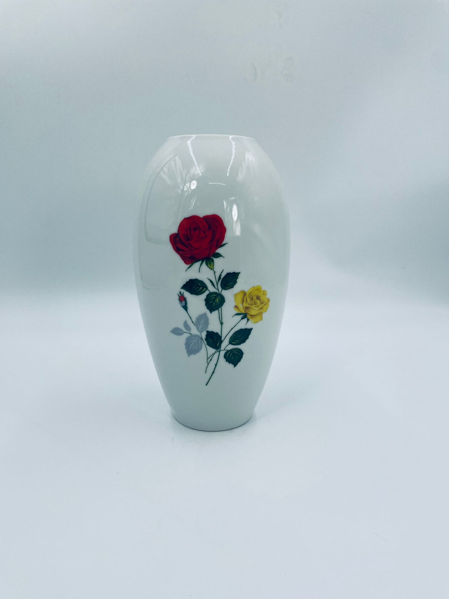 Wazon dekoracyjny wytwórni Creidlitz Bavaria, datowany na połowę XXwieku, wykonany z wysokiej jakości białej, szkliwionej porcelany. Wazon o owalnym kształcie z dekoracją róż po obu stronach.