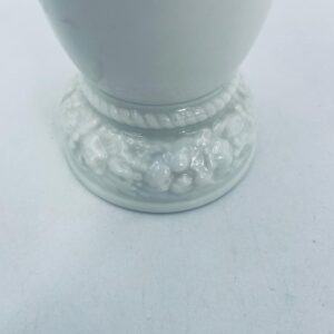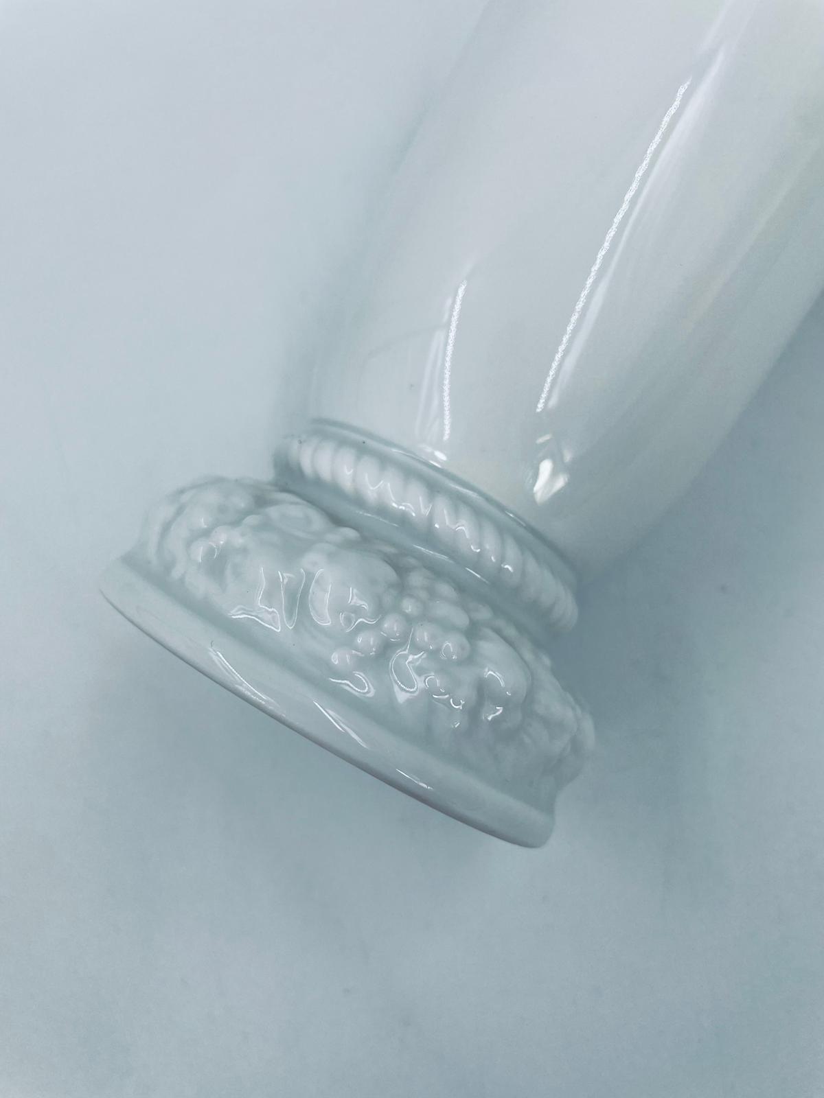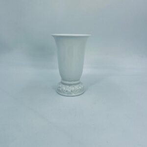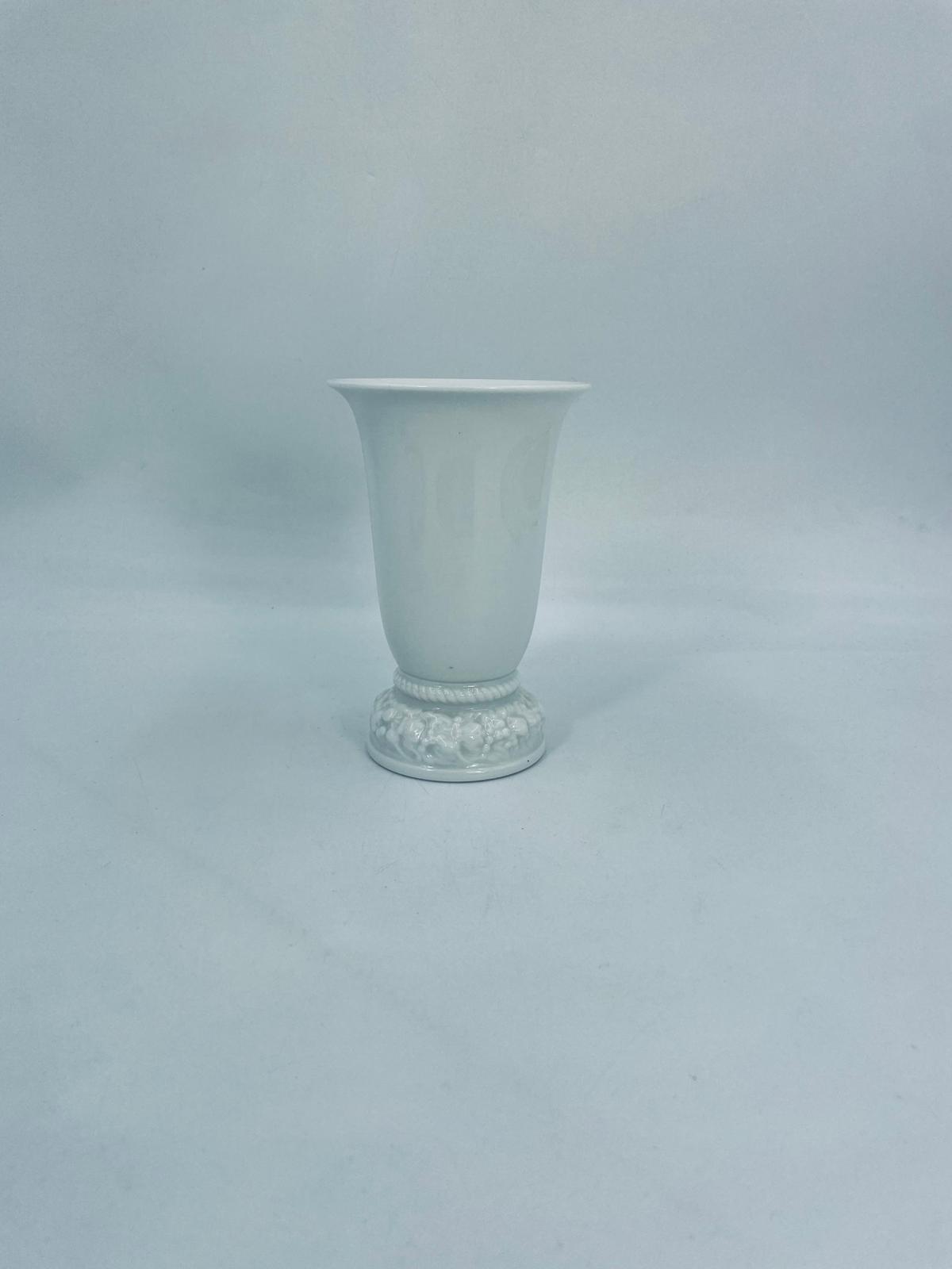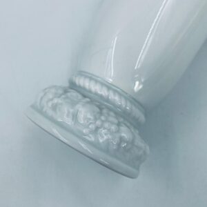 Wazon dekoracyjny renomowanej wytwórni Rosenthal, z kolekcji Biała Maria zaprojektowanym przez Philipa Rosenthala w 1916r, wykonany z najwyższej jakości białej porcelany. Wazon elegancki, klasyczny, zdobiony subtelnym wzorem owoców granatu i liści u podstawy oraz wzorem sznura. Posiada małe przebarwienie w środku.