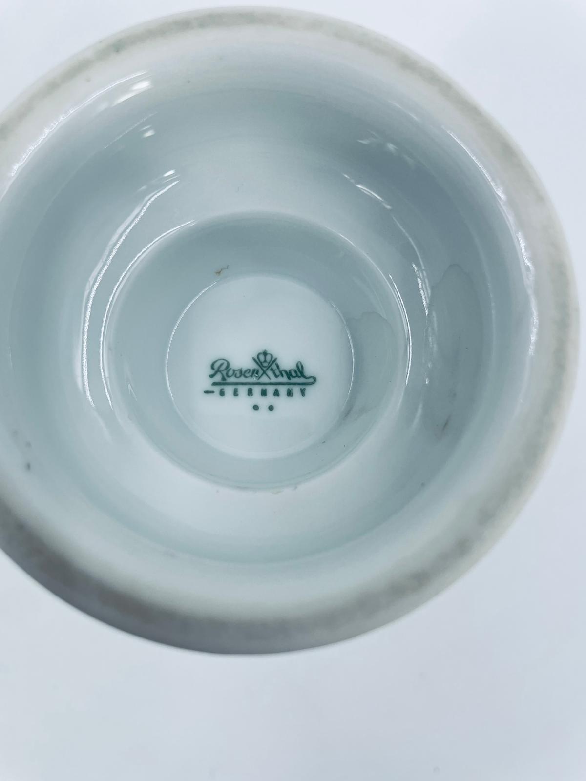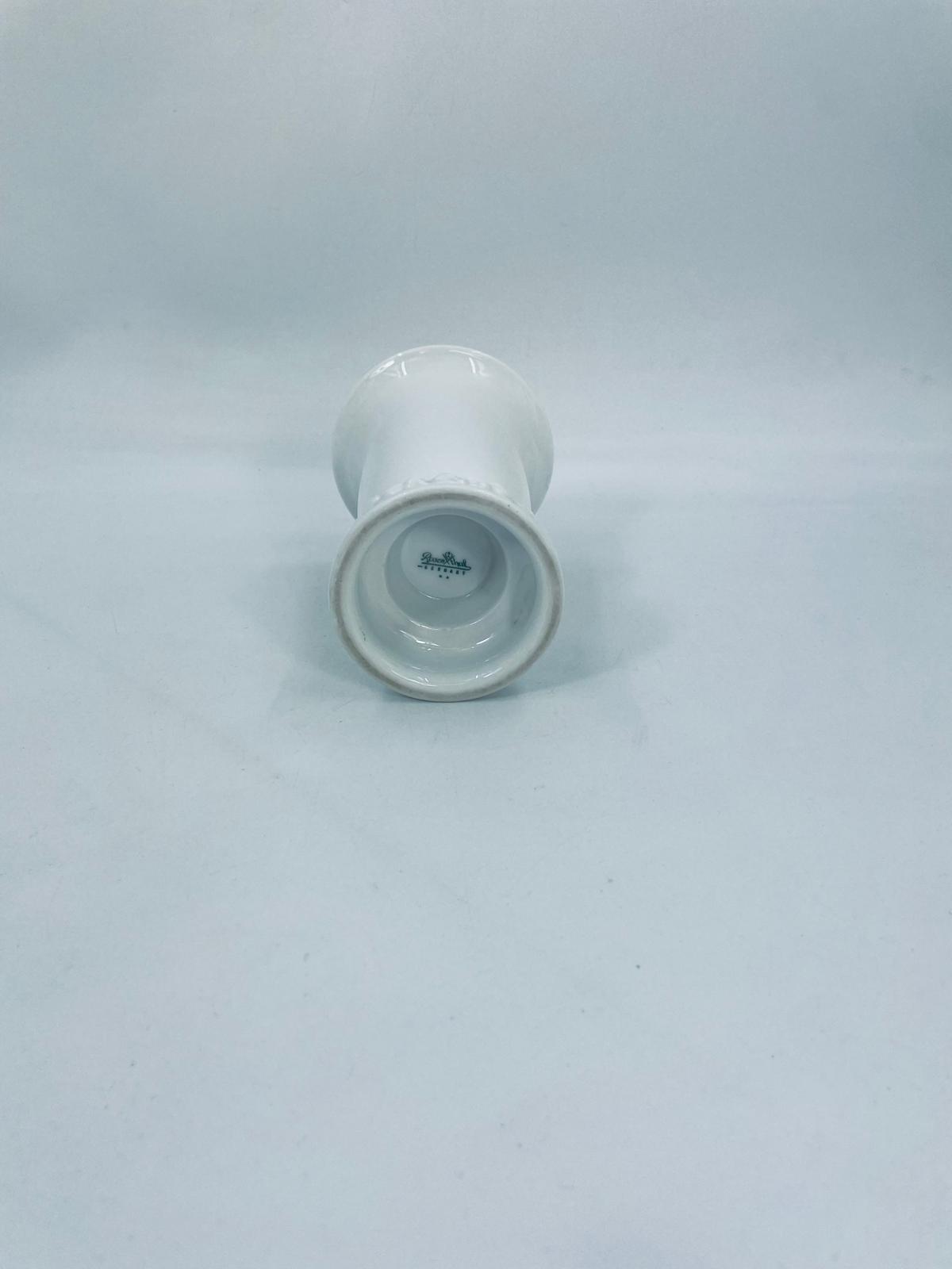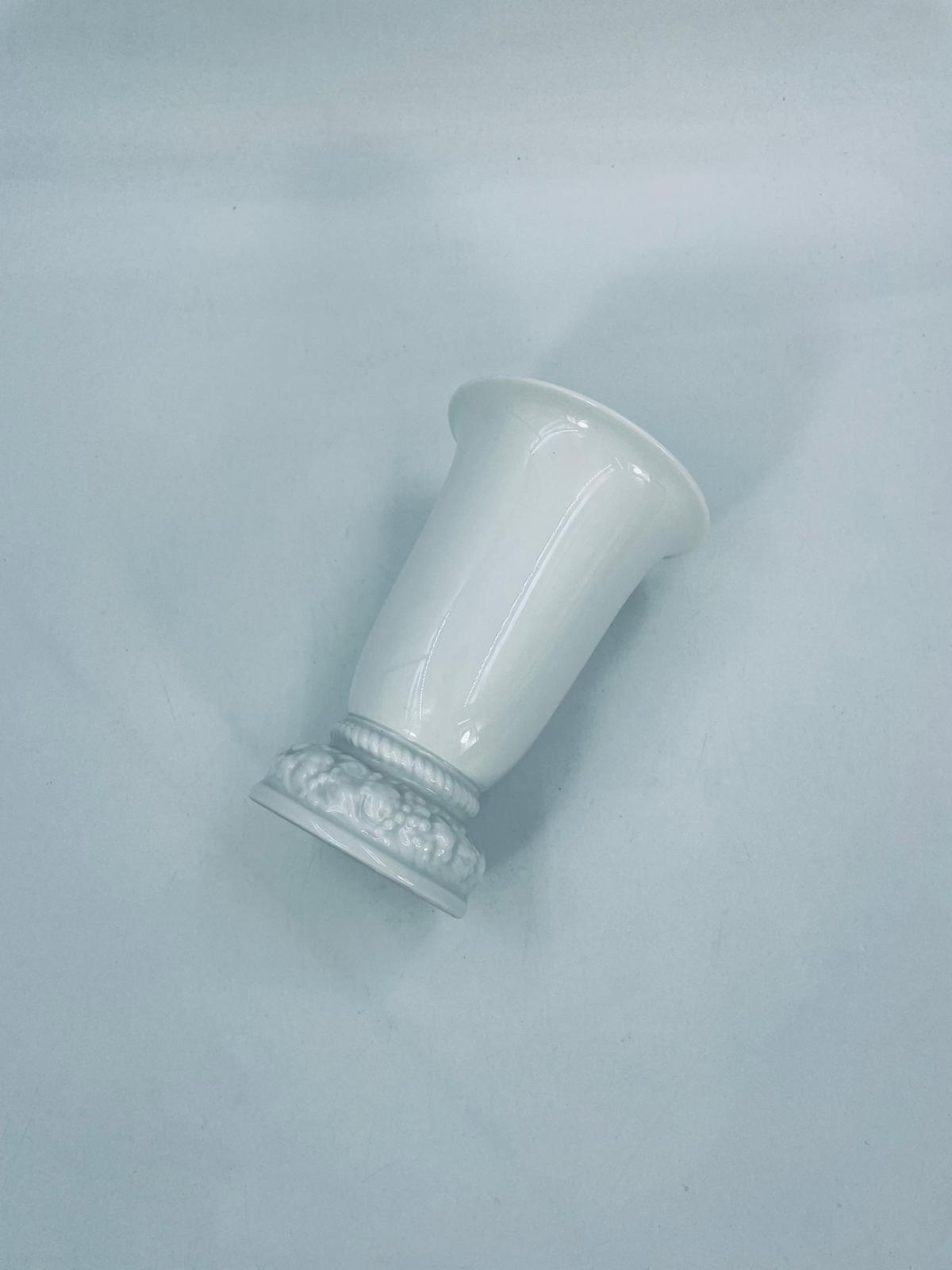 Wazon dekoracyjny renomowanej wytwórni Rosenthal, z kolekcji Biała Maria zaprojektowanym przez Philipa Rosenthala w 1916r, wykonany z najwyższej jakości białej porcelany. Wazon elegancki, klasyczny, zdobiony subtelnym wzorem owoców granatu i liści u podstawy oraz wzorem sznura. Posiada małe przebarwienie w środku.