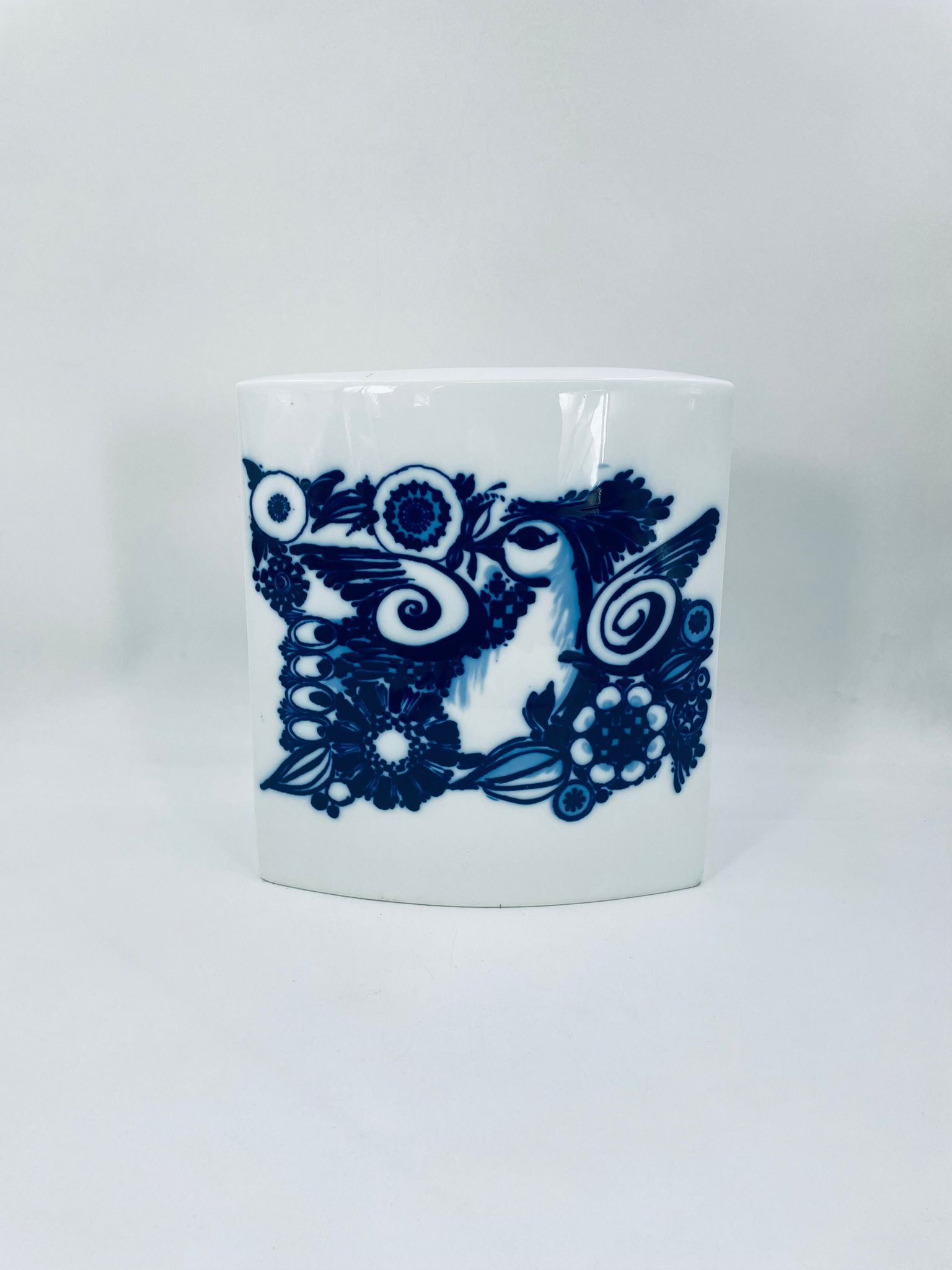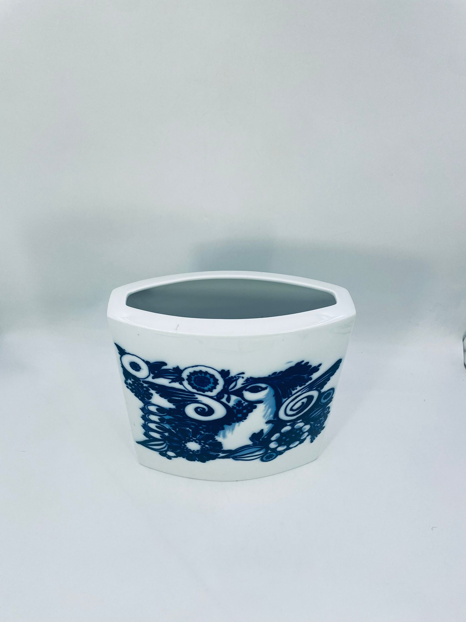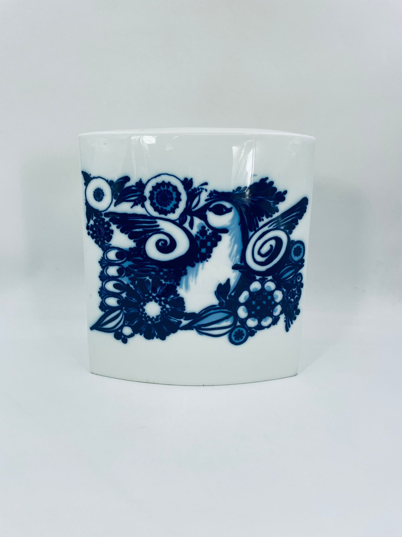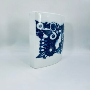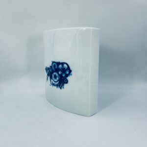 Wazon dekoracyjny renomowanej wytwórni Rosenthal Studio Line, zaprojektowany przez duńskiego artystę Bjorna Wiinblada, wykonany z najwyższej jakości białej porcelany. Wazon dekorowany stylizowanym motywem ptaka i kwiatów w kobaltowym kolorze.