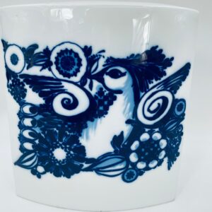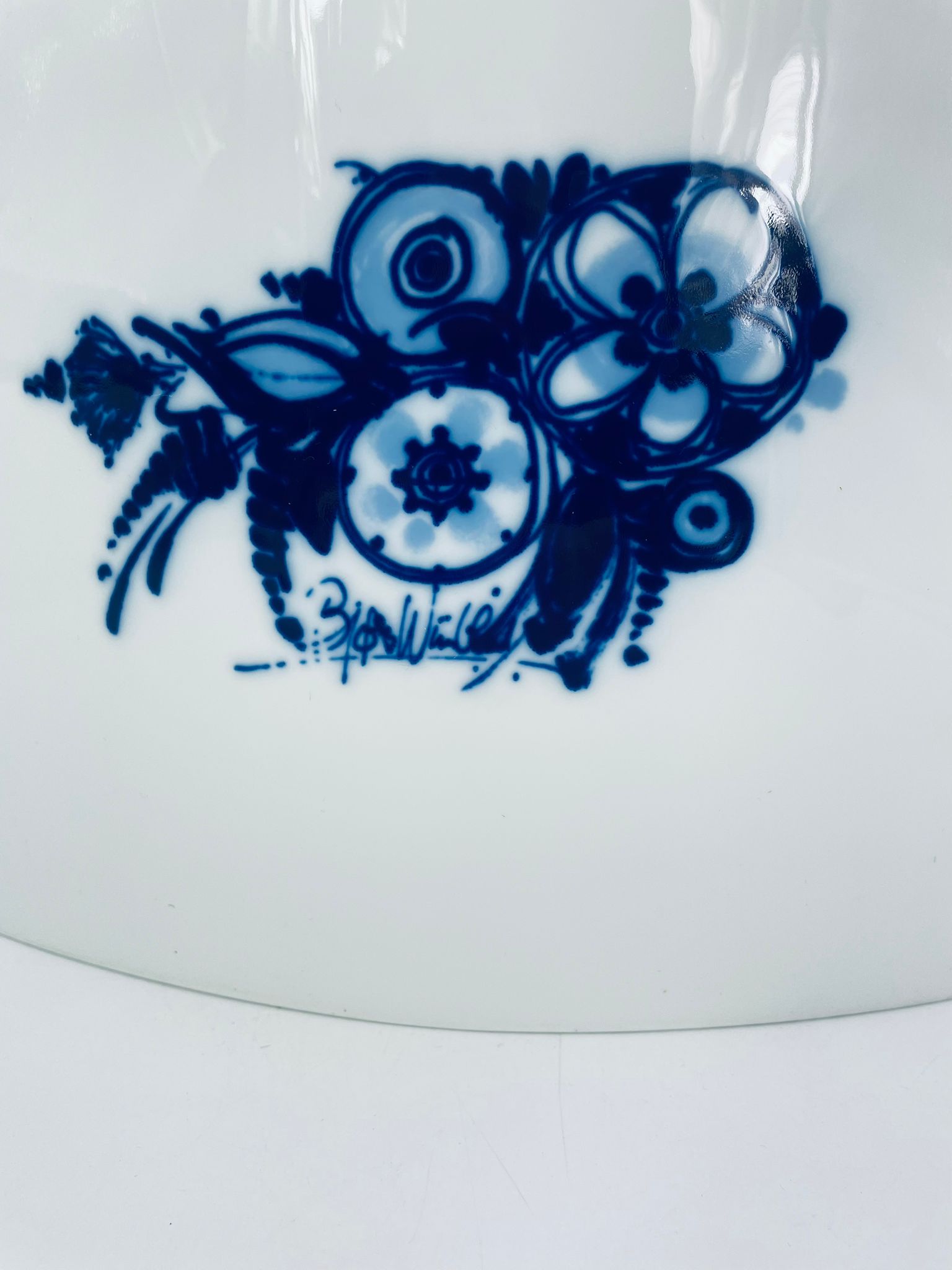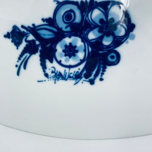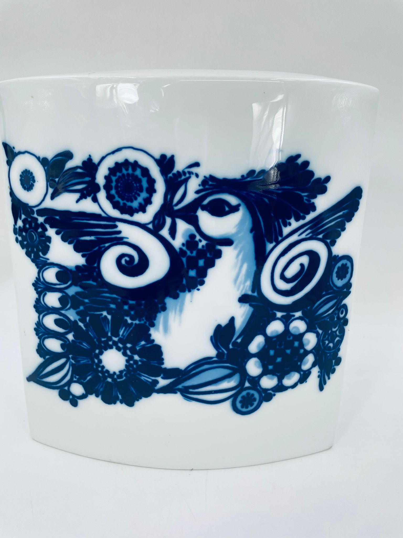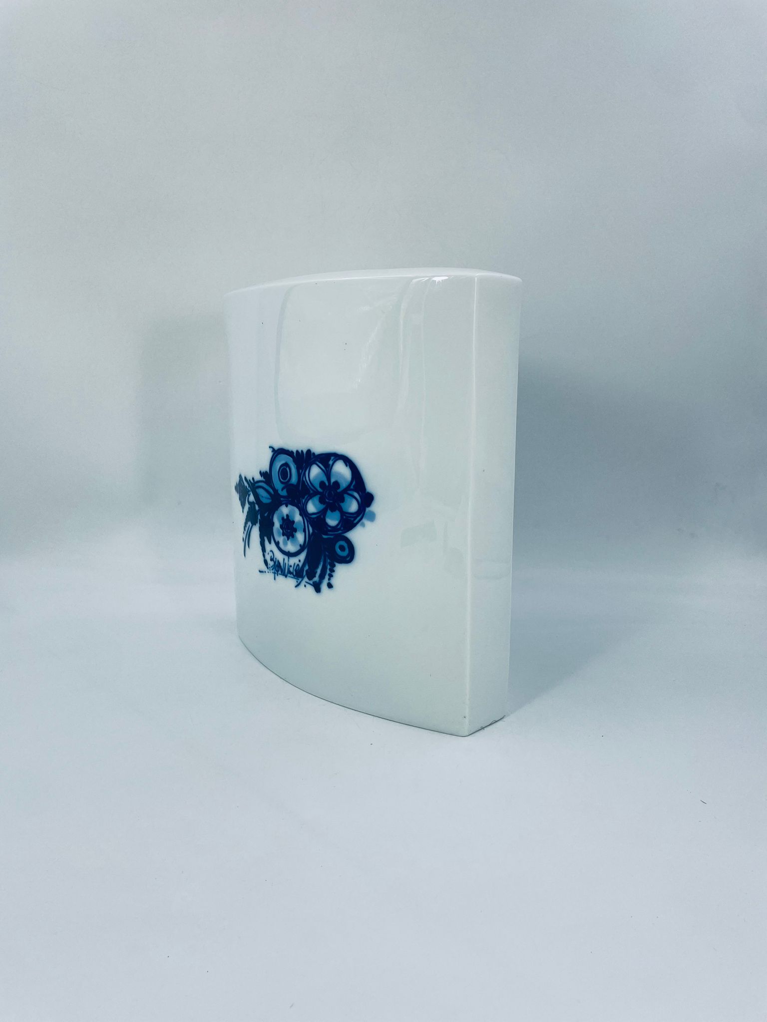 Wazon dekoracyjny renomowanej wytwórni Rosenthal Studio Line, zaprojektowany przez duńskiego artystę Bjorna Wiinblada, wykonany z najwyższej jakości białej porcelany. Wazon dekorowany stylizowanym motywem ptaka i kwiatów w kobaltowym kolorze.