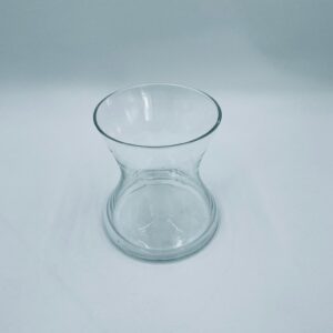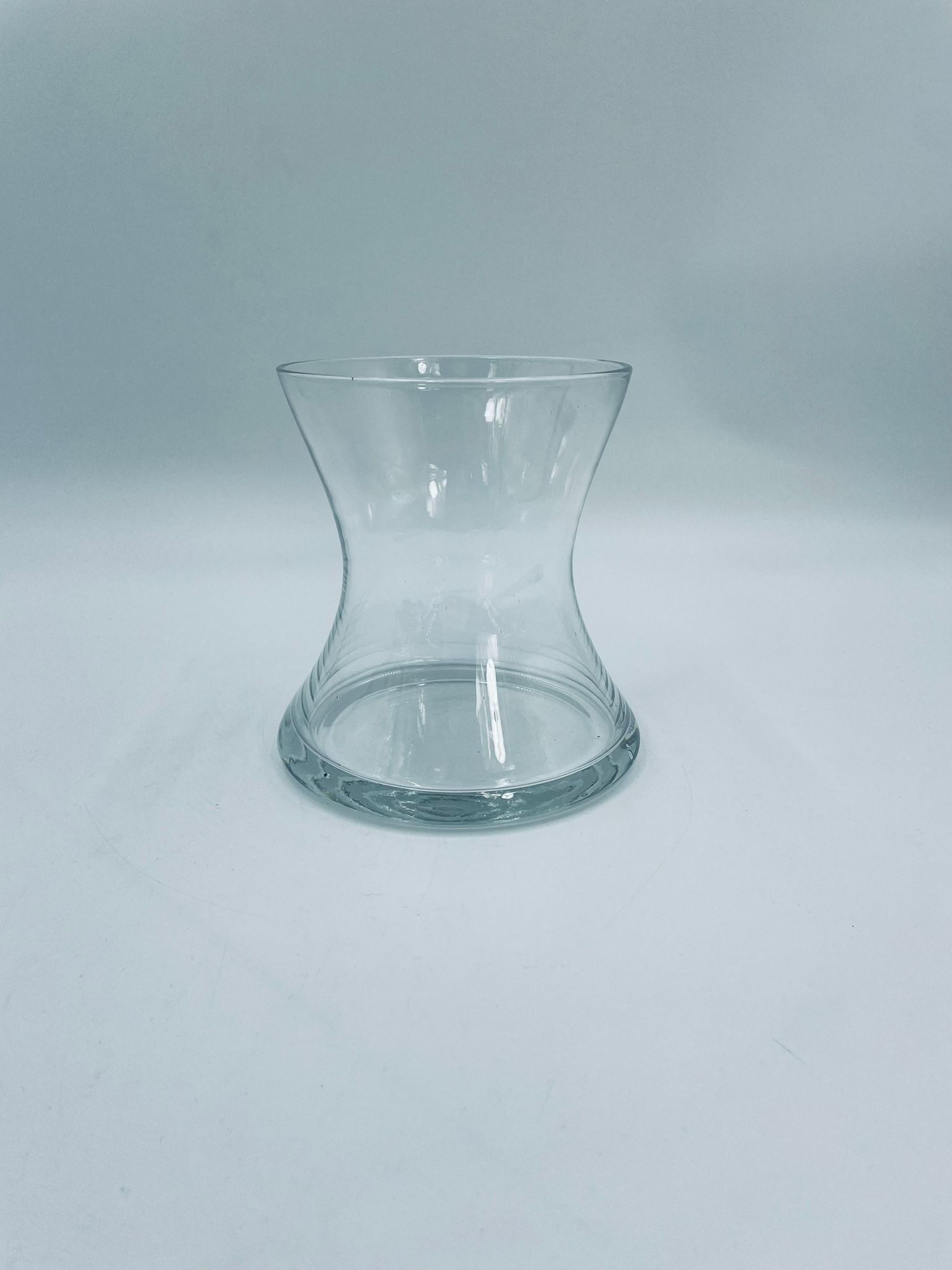 Wazon dekoracyjny w stylu Vintage, wykonany z wysokiej jakości szkła. Wazon przeźroczysty, charakteryzuje się ergonomicznym kształtem z węższym środkiem i rozszerzoną górną częścią oraz szerszą, stabilną podstawą.
