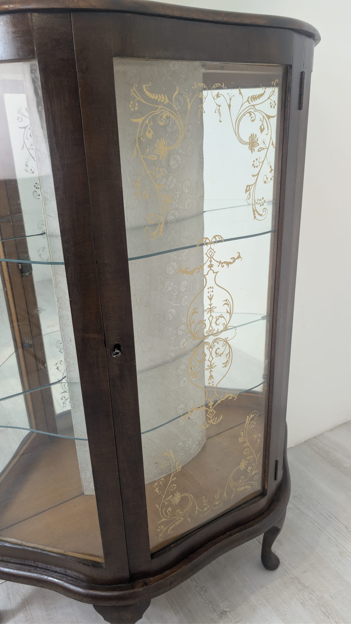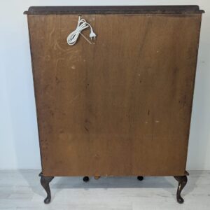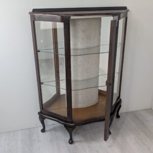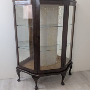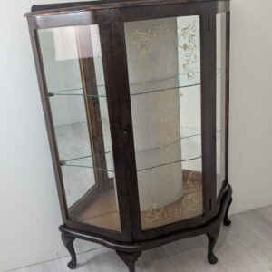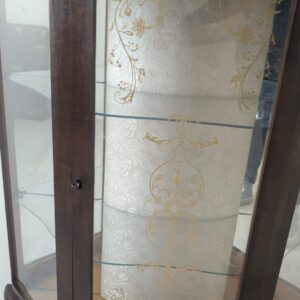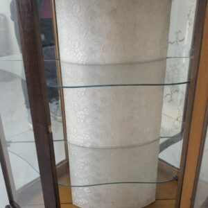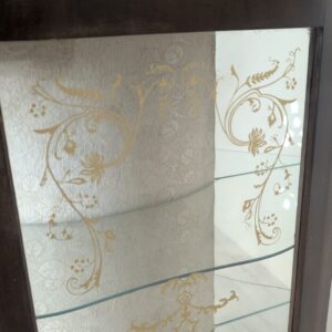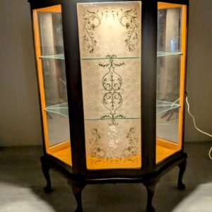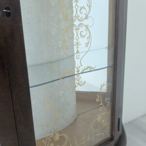 Stylowa witryna w kolorze palisandru, fornirowany płytą z drewna rodem z lat 70/80- tych. Posiada piękne, dekoracyjne wzory na frontach, które nadają mu elegancki wygląd. Doskonały do nowoczesnego lub klasycznego wnętrza.