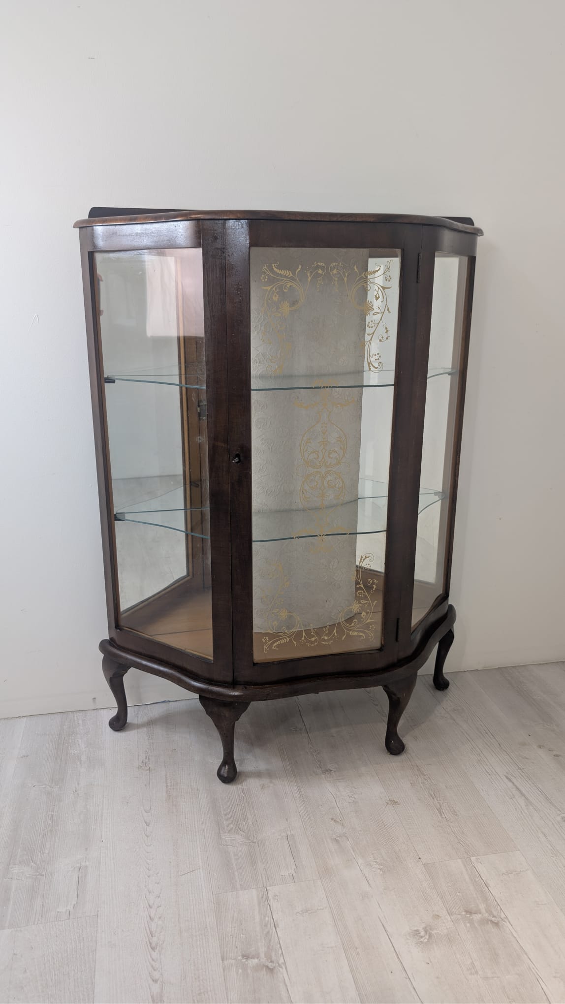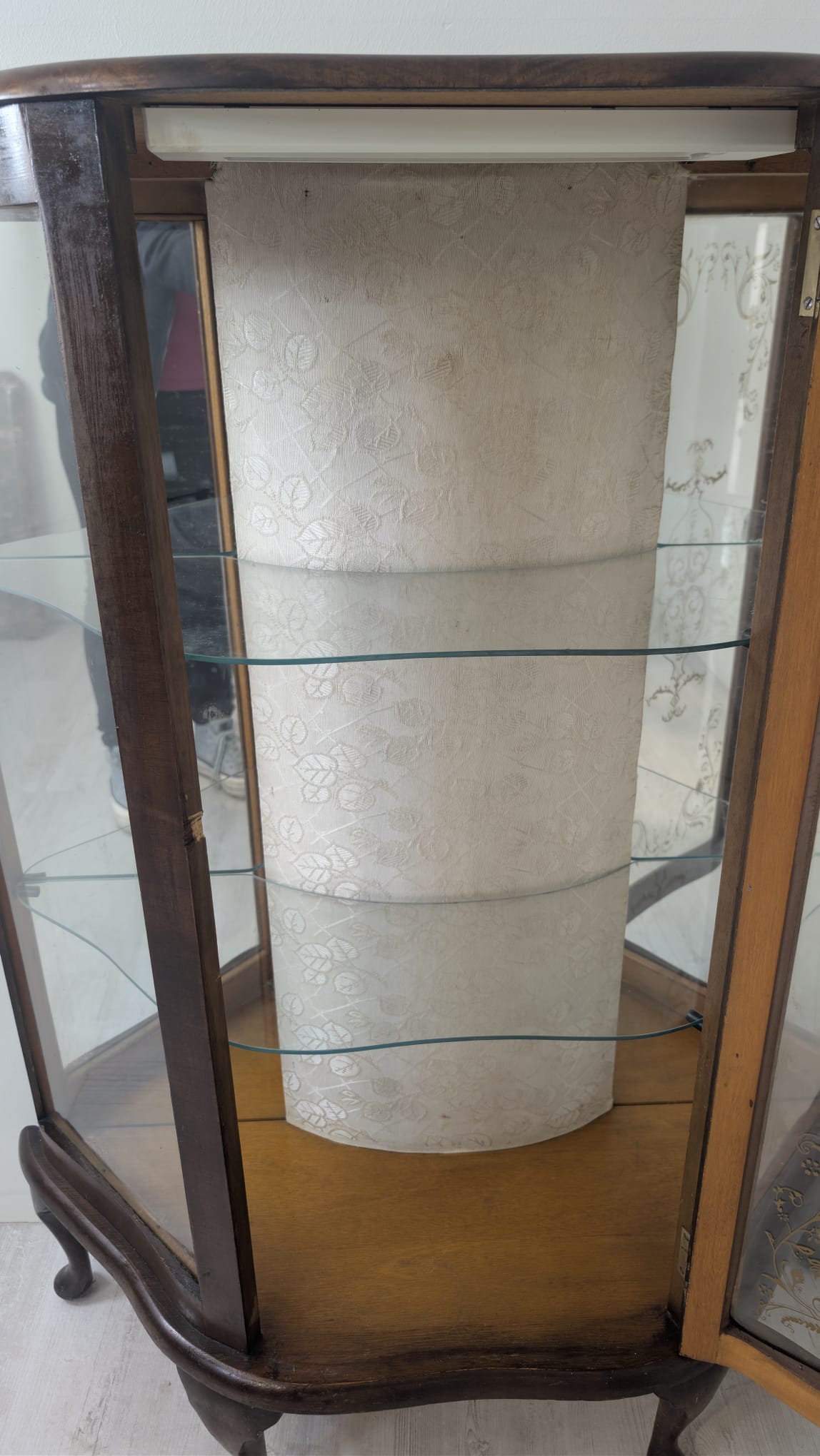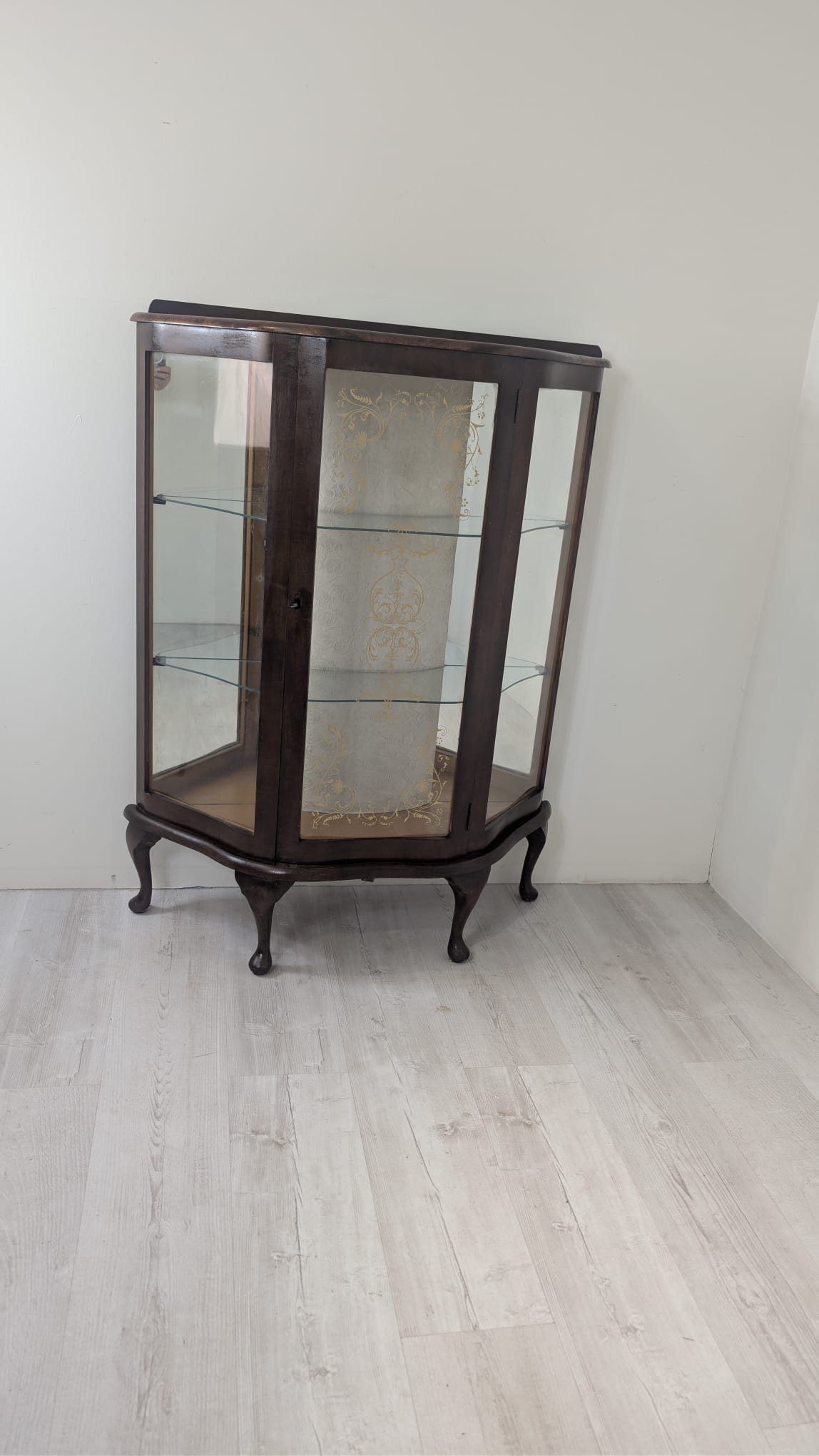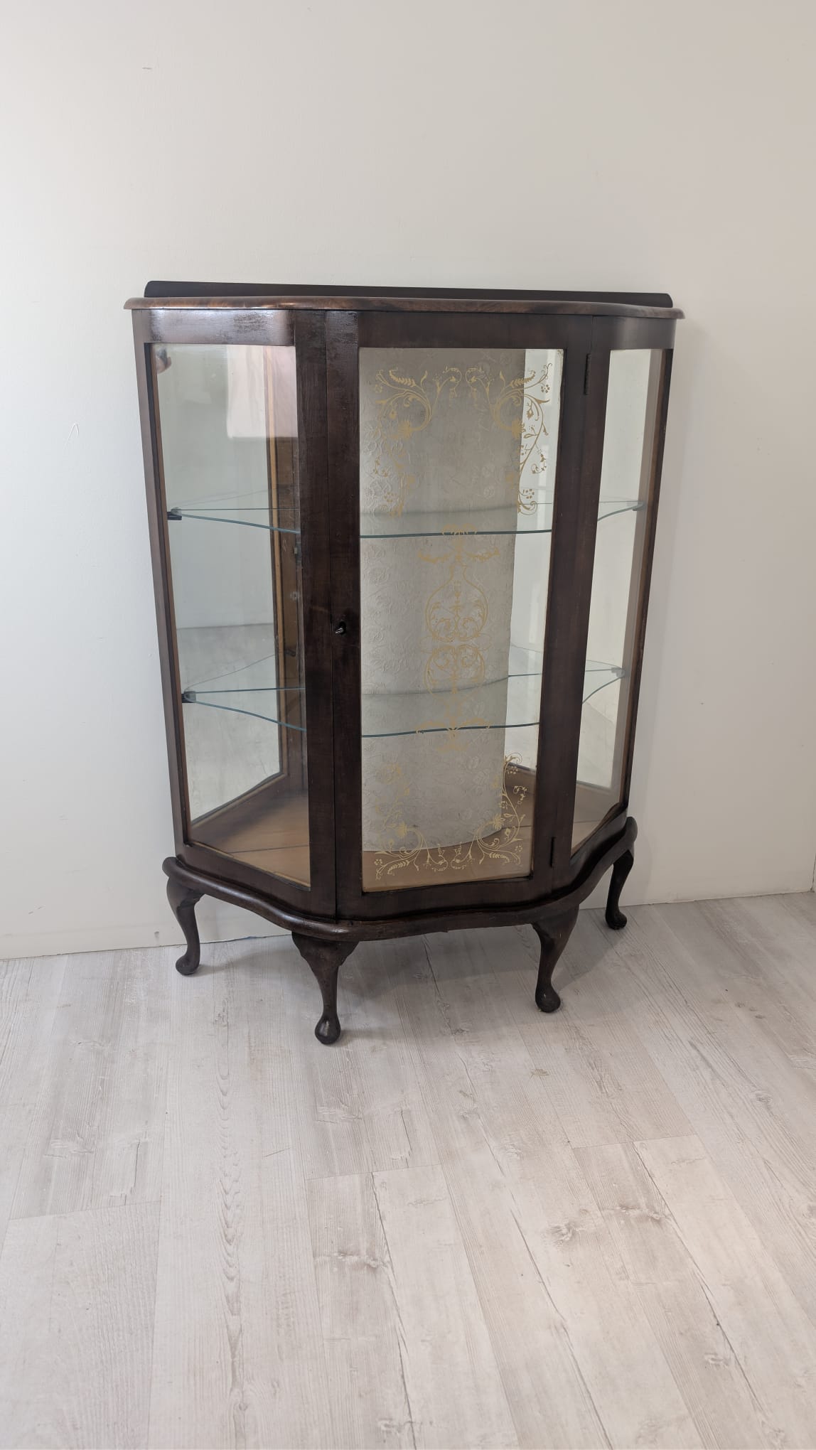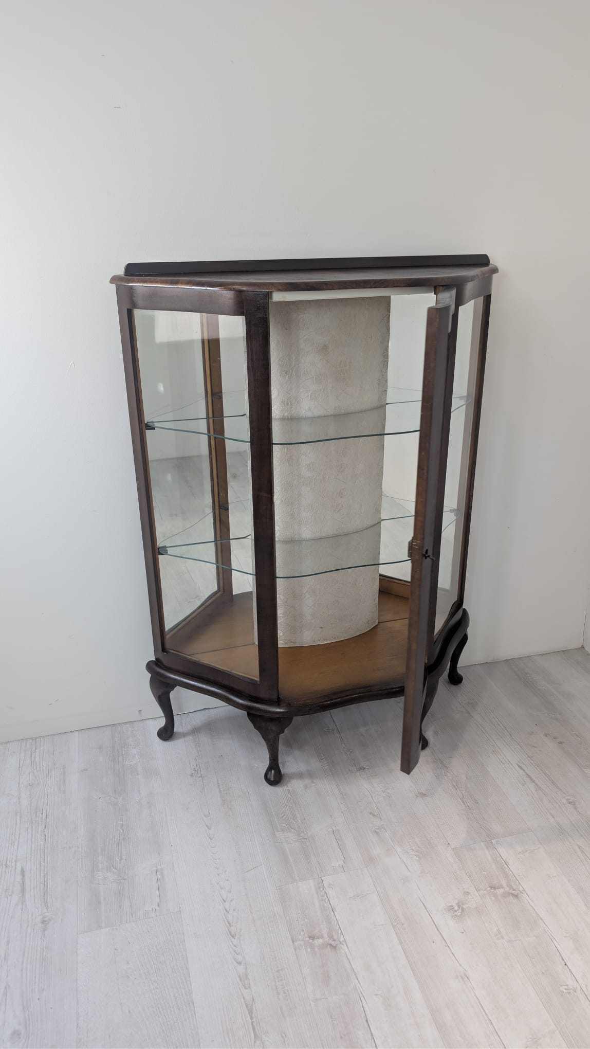 Witryna podświetlana nadająca blask w pomieszczeniu oraz tylna ściana wyłożona jest lustrem.