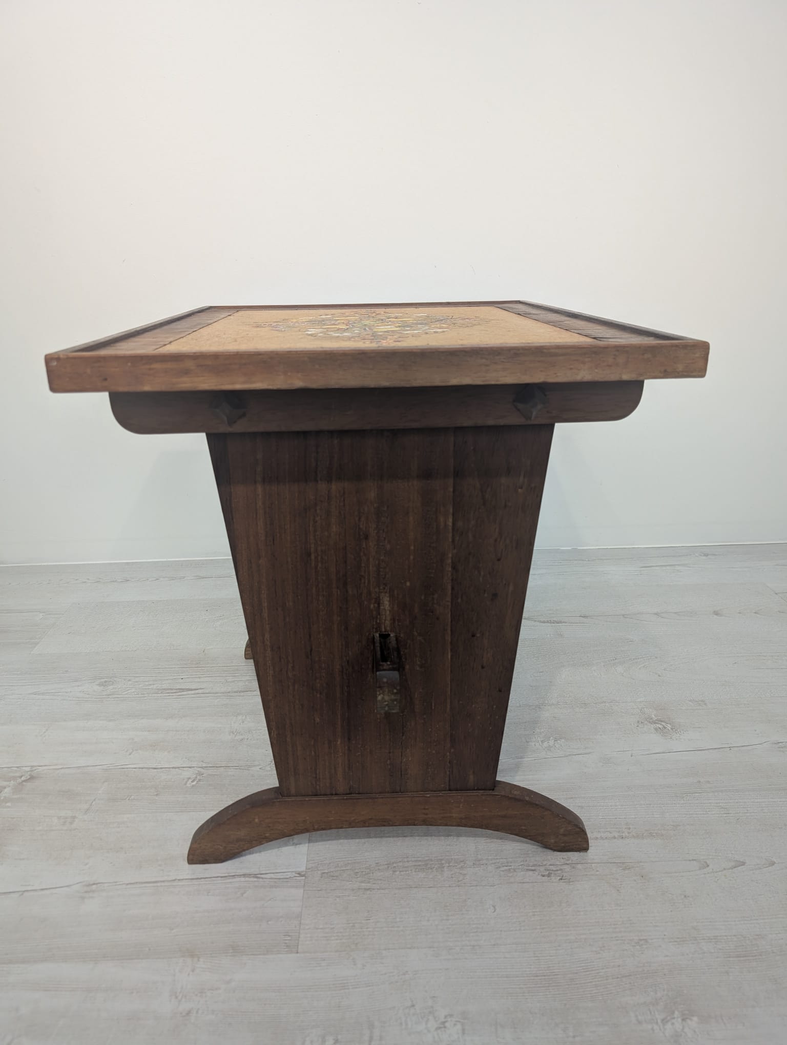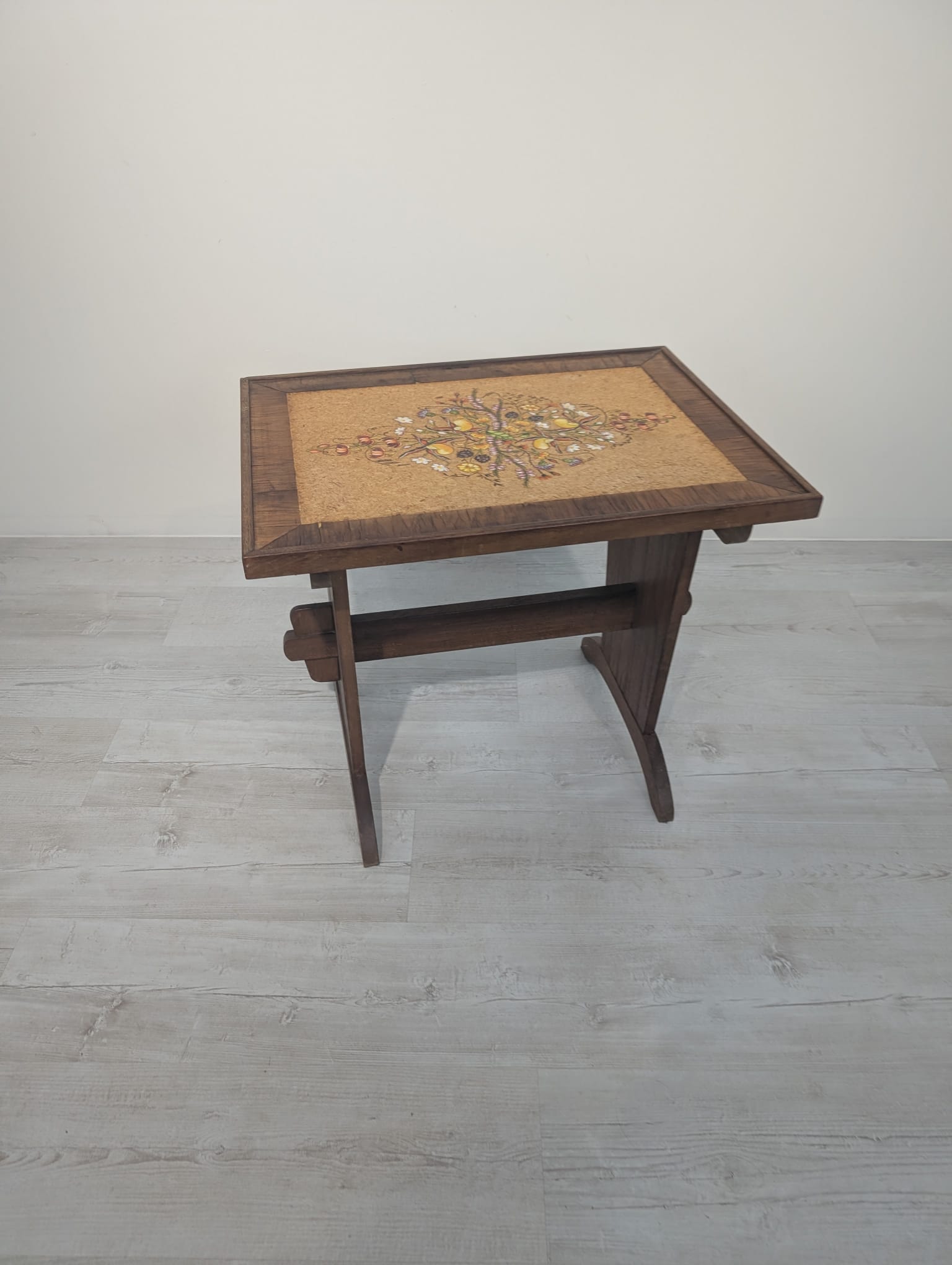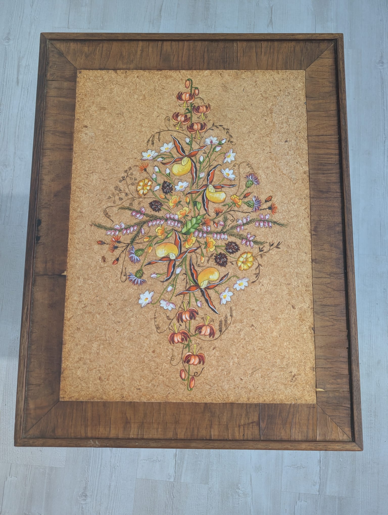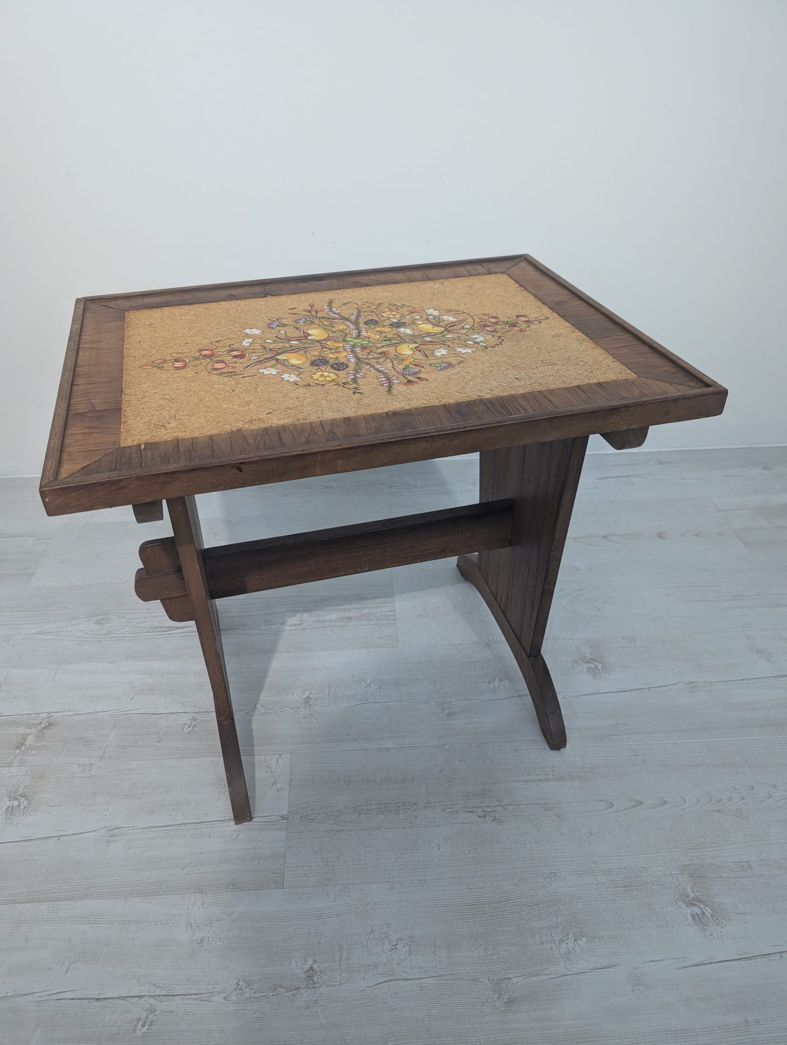 A wooden coffee table with a hand-painted design. The furniture is in good condition and could make an interesting addition to the interior.