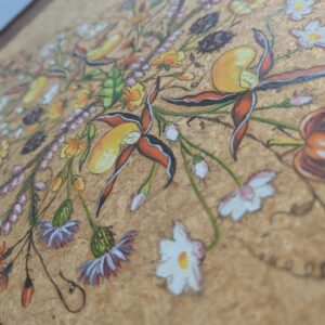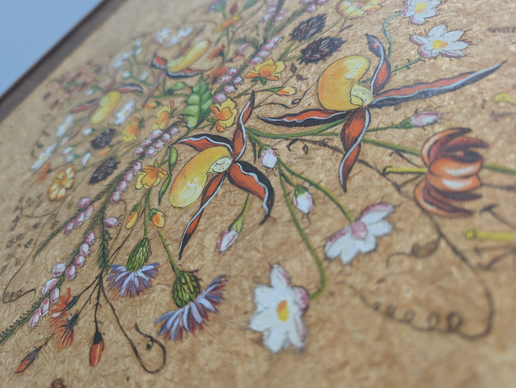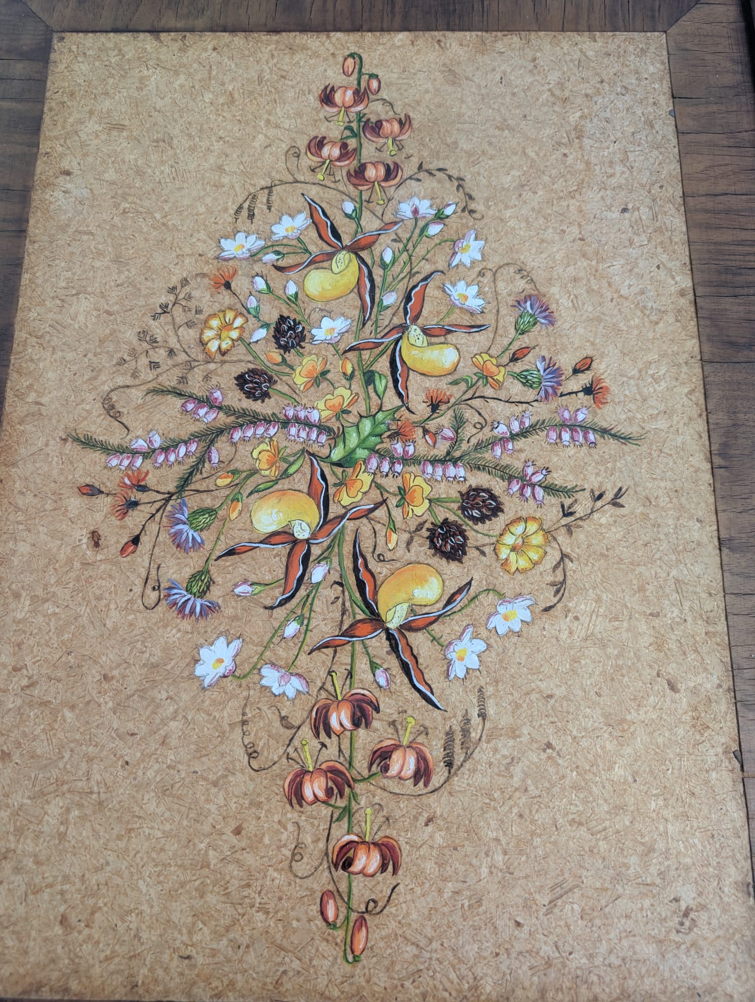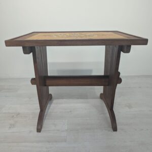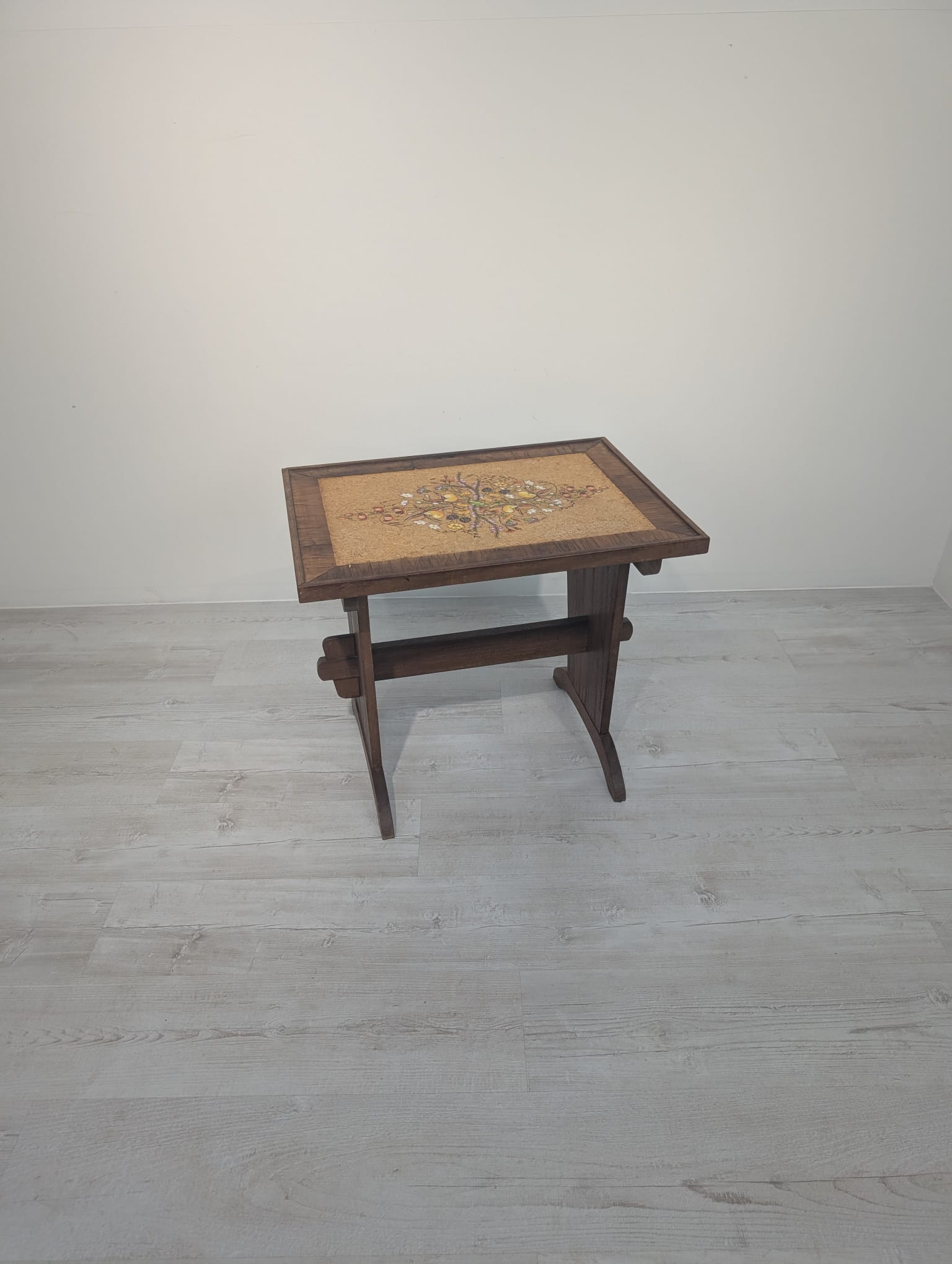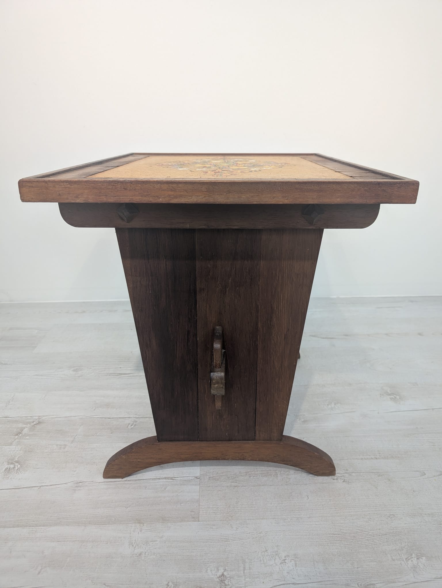 A wooden coffee table with a hand-painted design. The furniture is in good condition and could make an interesting addition to the interior.