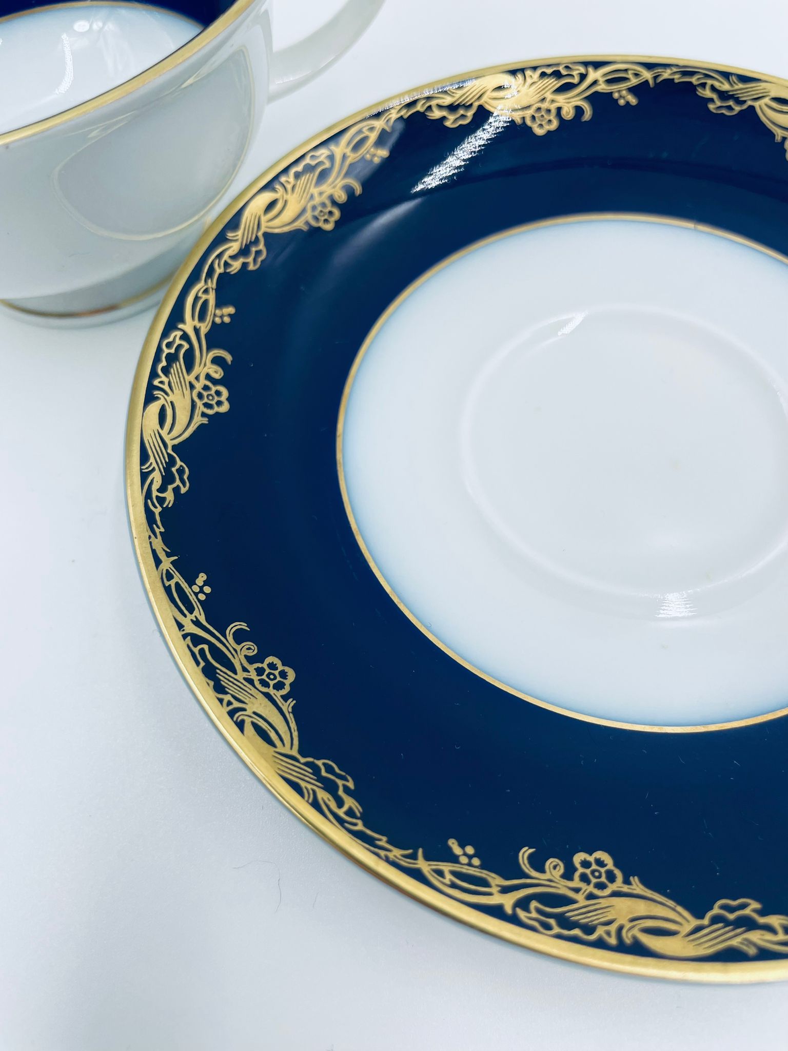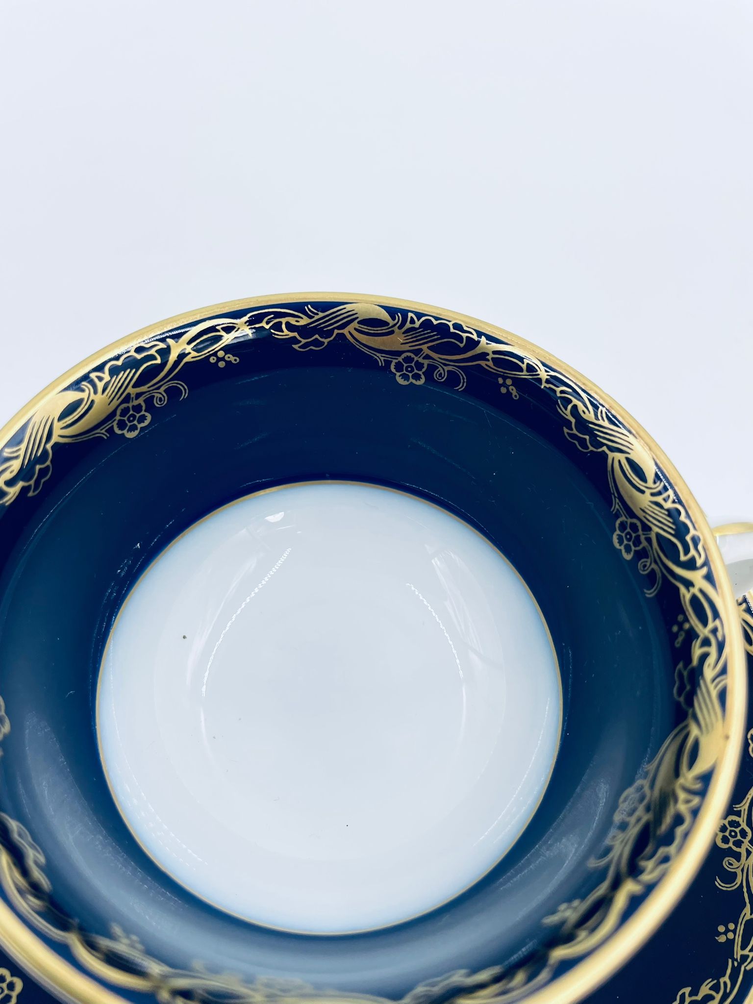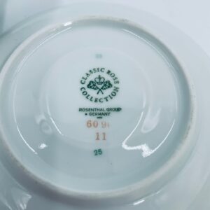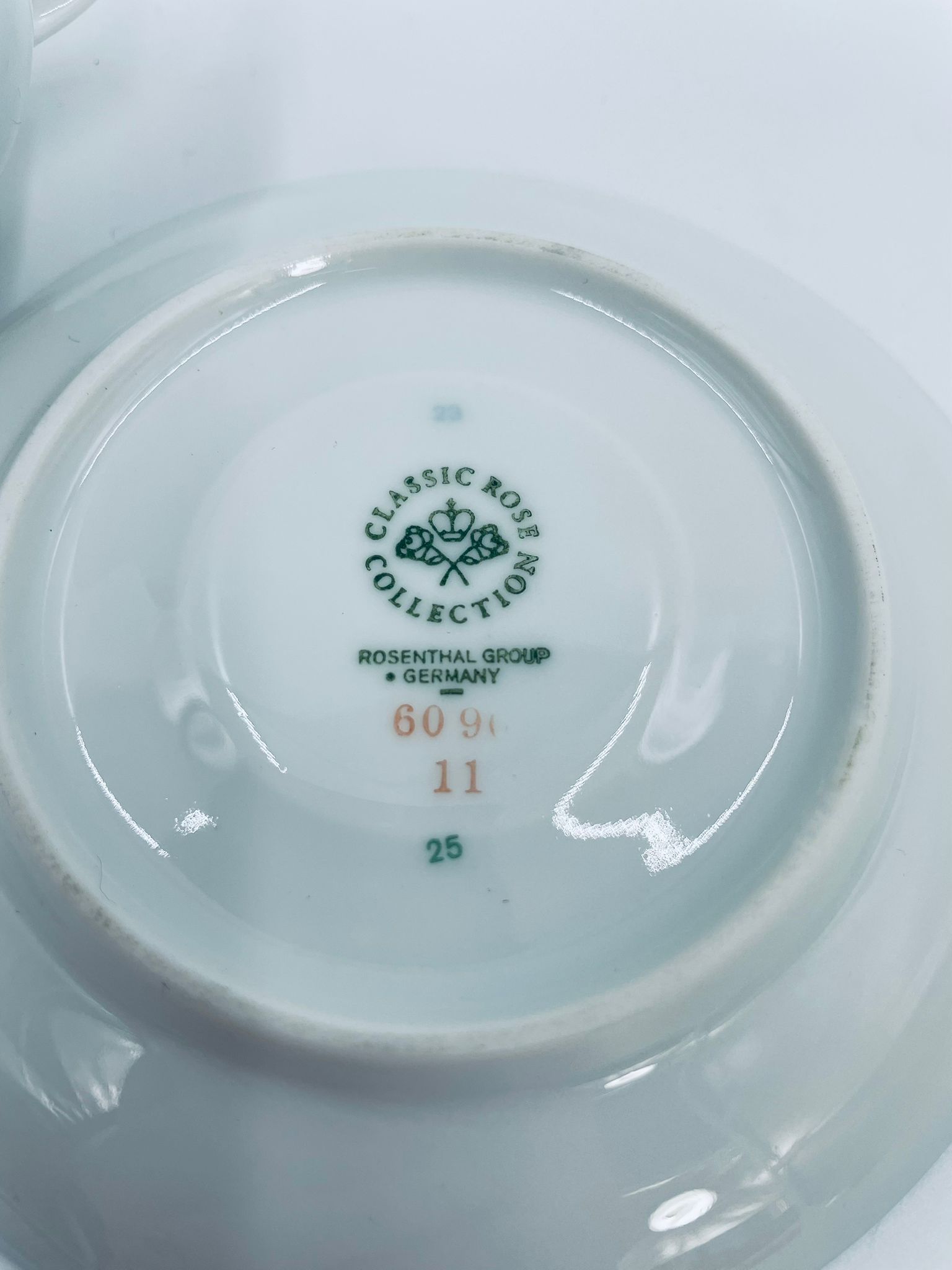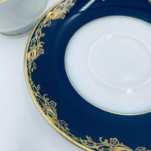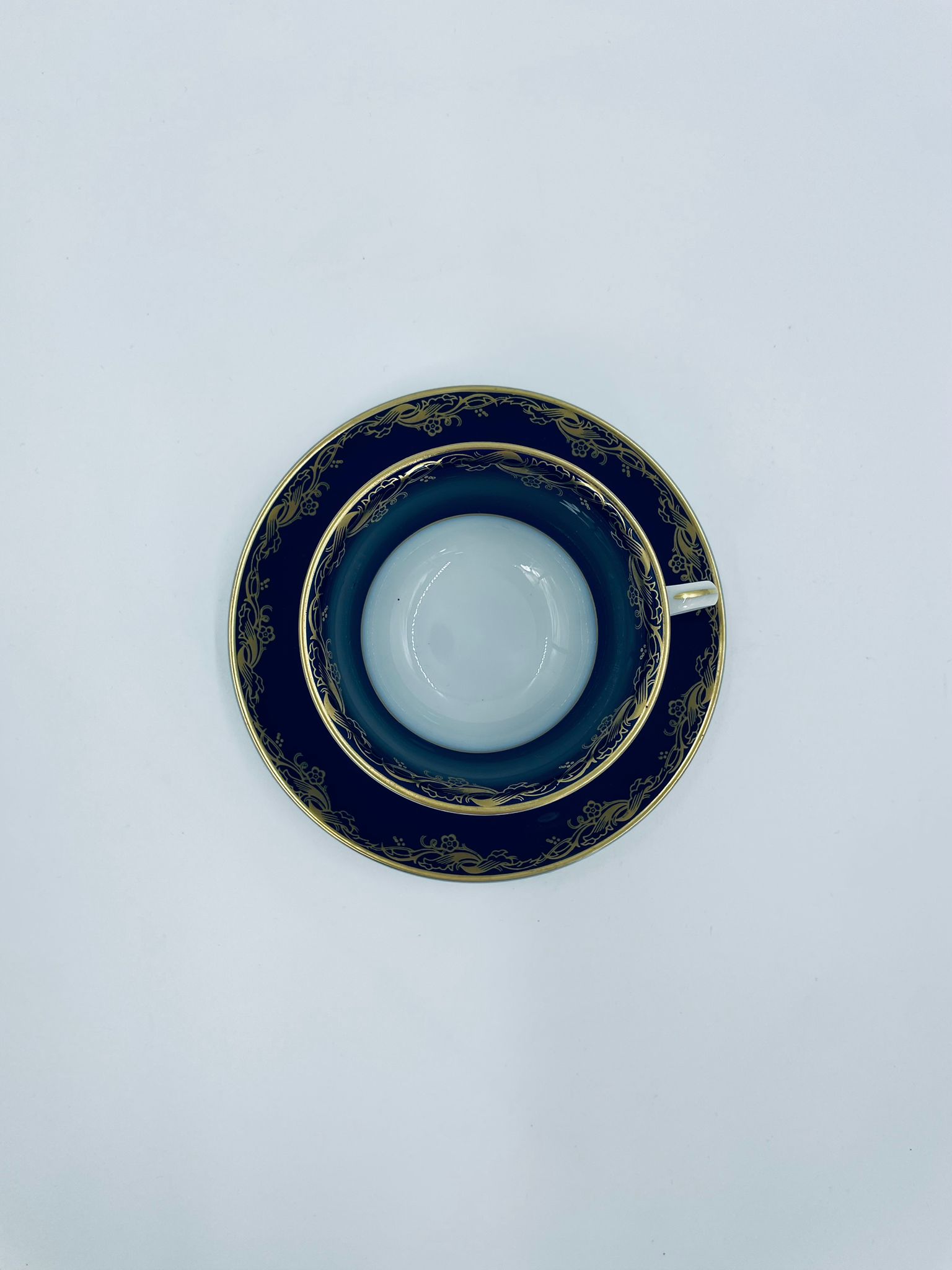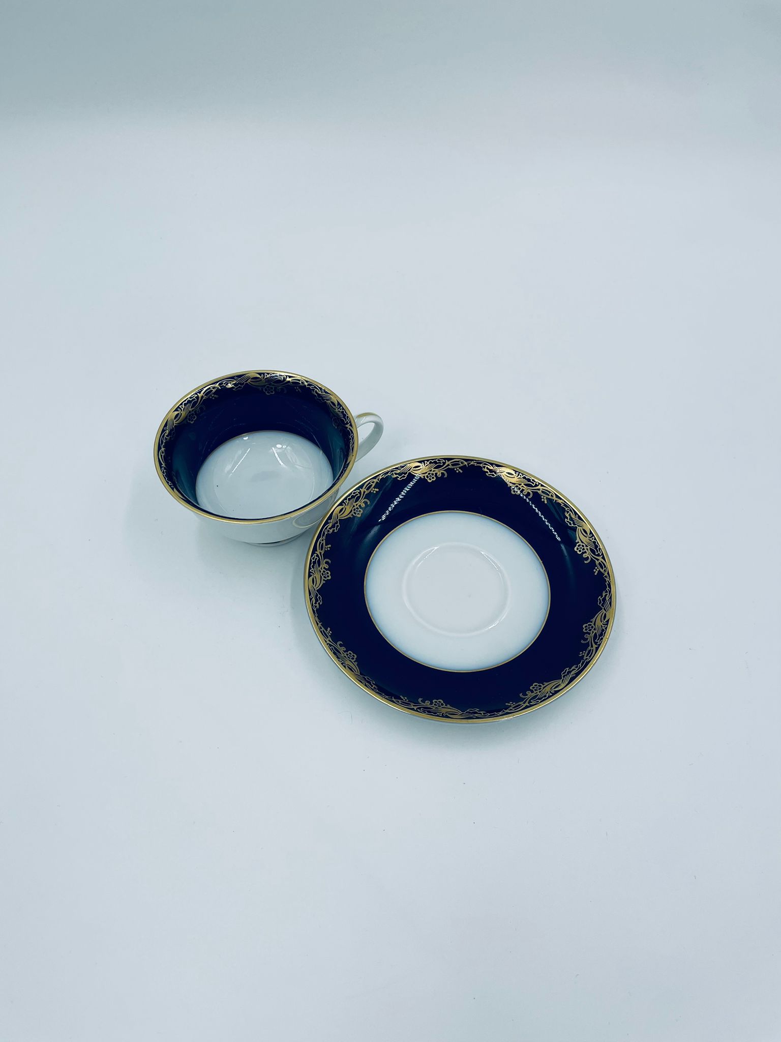 Antyczna filiżanka kolekcjonerska w zestawie duo, renomowanej wytwórni Rosenthal Classic Rose Collection , wykonana z najwyższej jakości białej porcelany. Zestaw ozdobiony szerokim, kobaltowym pasem ze złoconym ornamentem, wykończony złoceniem na krawędziach.