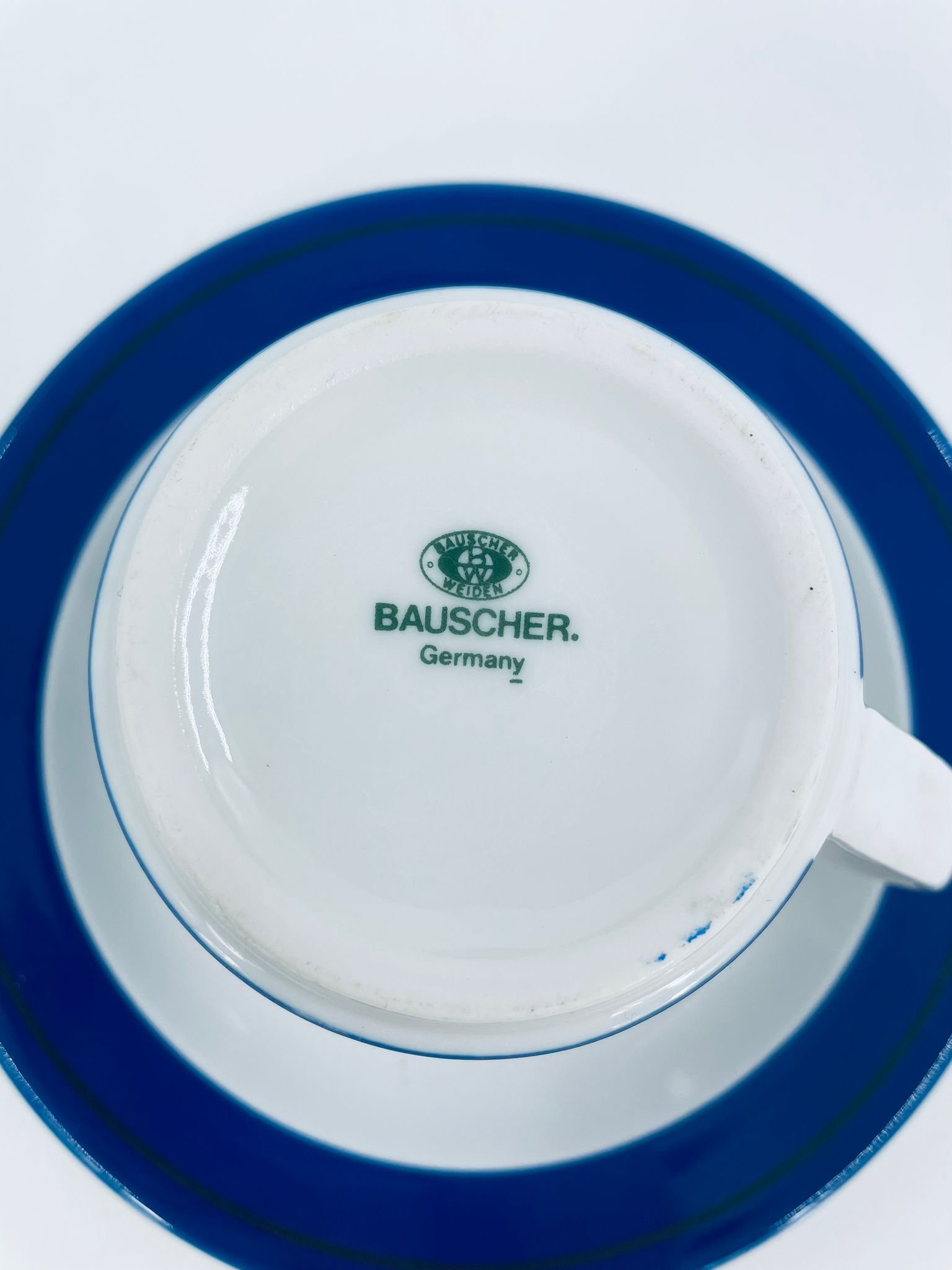 Filiżanka kolekcjonerska w zestawie duo wytwórni Bauscher Weiden, wykonana z wysokiej jakości białej porcelany. Zestaw charakteryzuje się głęboko granatowym kolorem z czarna obwódką.