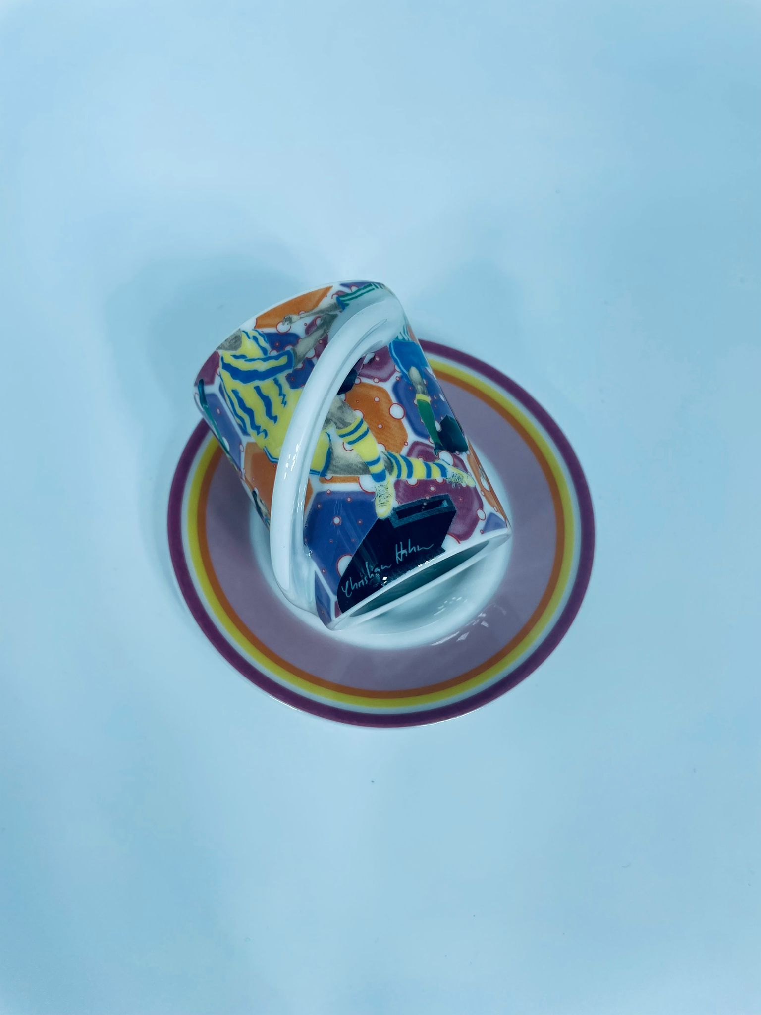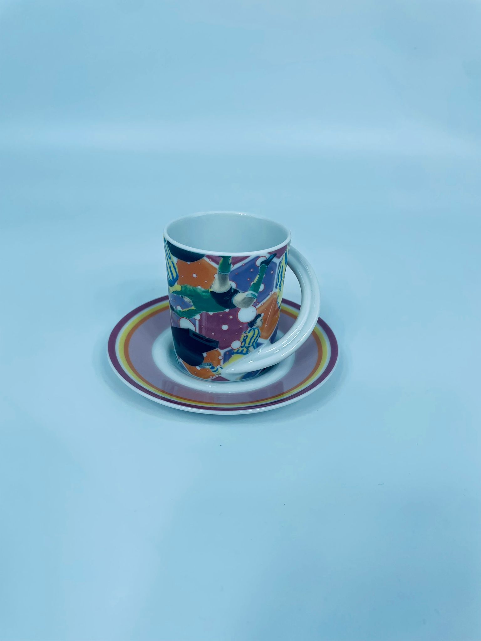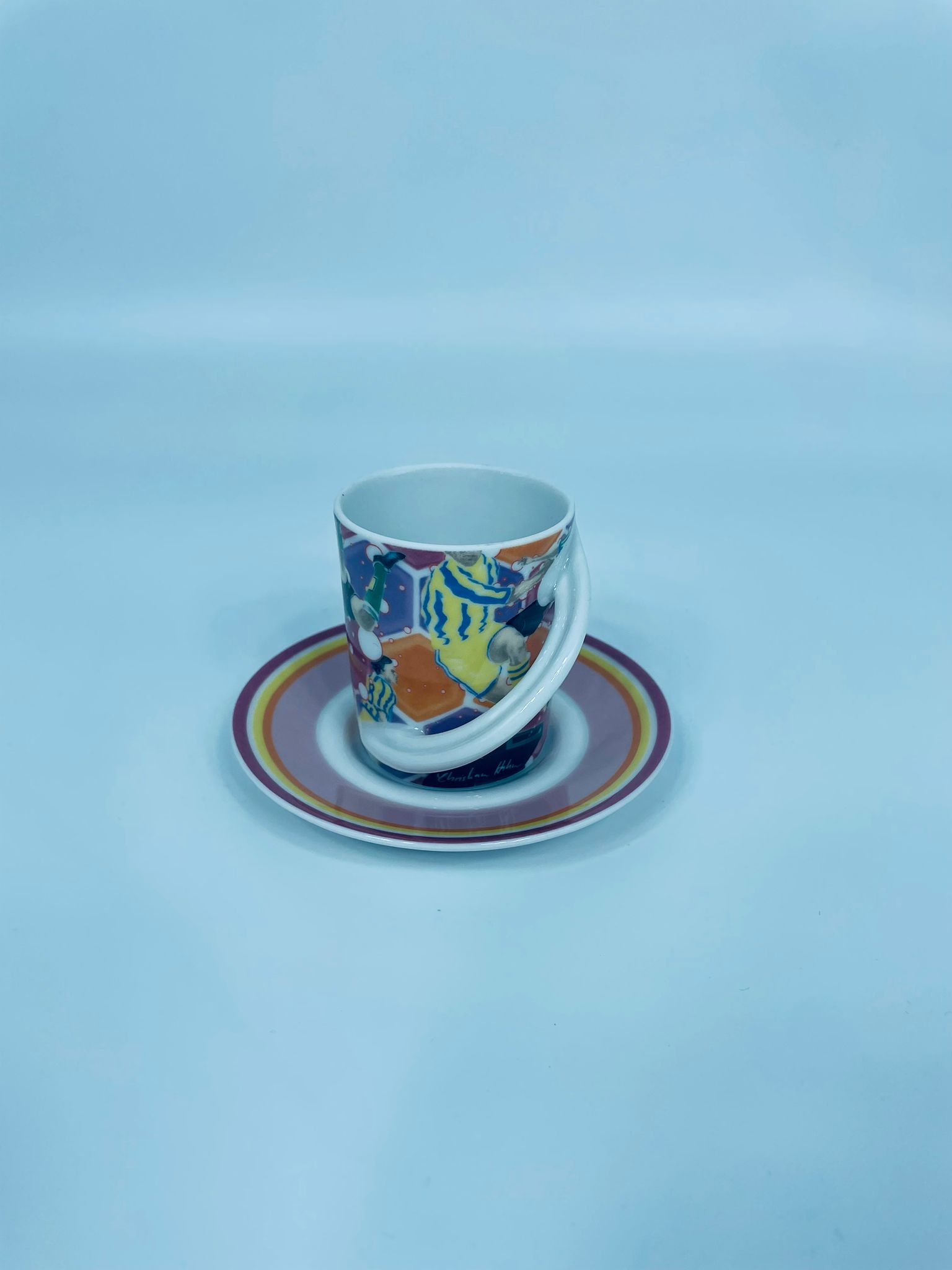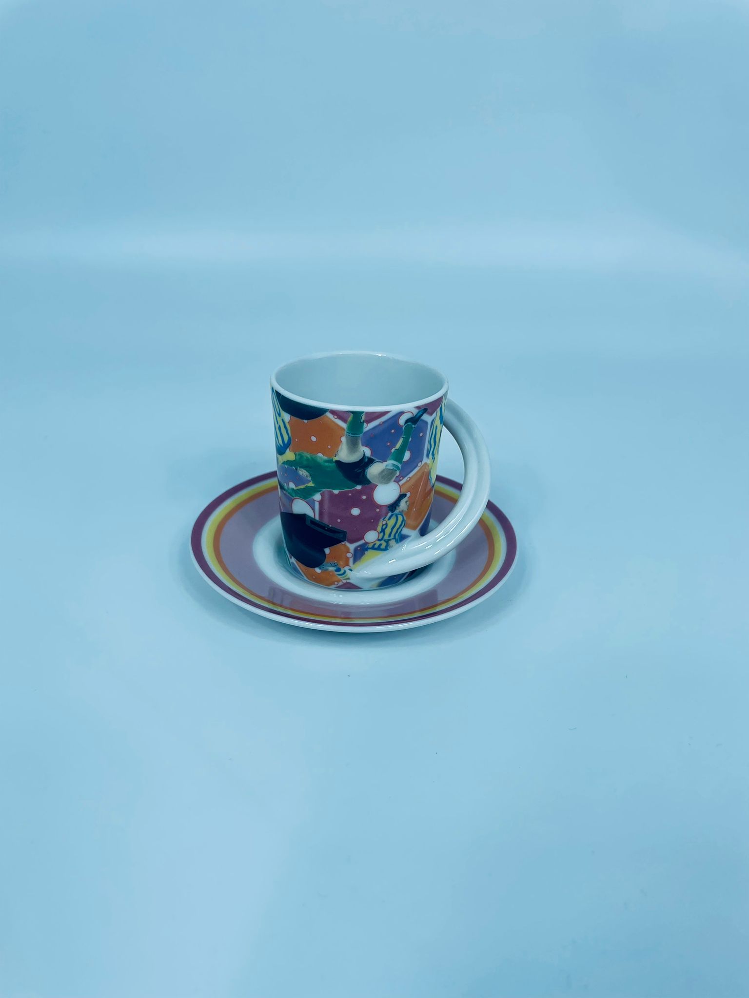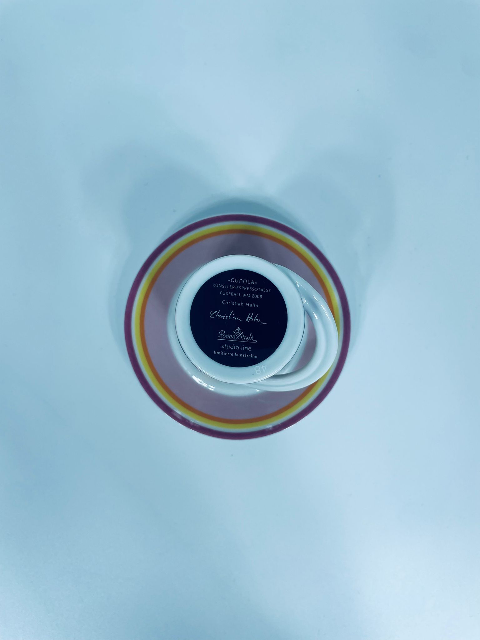 Filiżanka kolekcjonerska w zestawie duo renomowanej wytwórni Rosenthal, z serii Cupola, zaprojektowana przez Mario Belliniego, wykonana z najwyższej jakości białej porcelany. Zestaw z limitowanej edycji, wydanej z okazji Mistrzostw świata w piłce nożnej 2006r, charakteryzujący się nowoczesnym designem, we wzory piłkarzy, filiżanka z dekoracyjnym, łukowatym uchwytem.