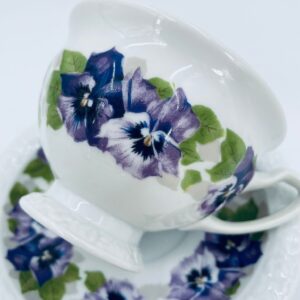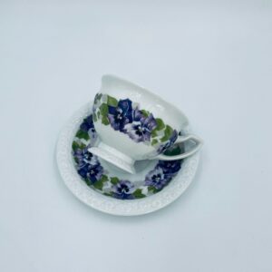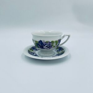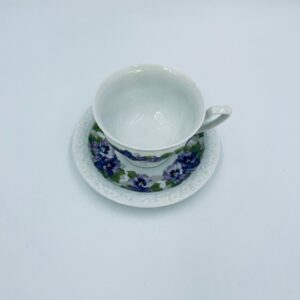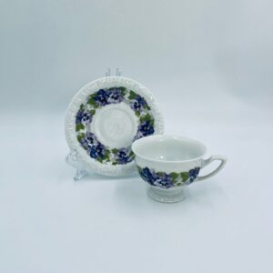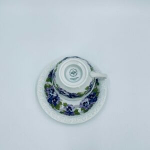 Filiżanka kolekcjonerska w zestawie duo, renomowanej wytwórni Rosenthal z kolekcji Maria, zaprojektowanej przez Philippa Rosenthala w 1916r. Zestaw charakteryzuje się ozdobnym wzorem fioletowych fiołków z zielonymi listkami oraz reliefowym wykończeniem rantów.