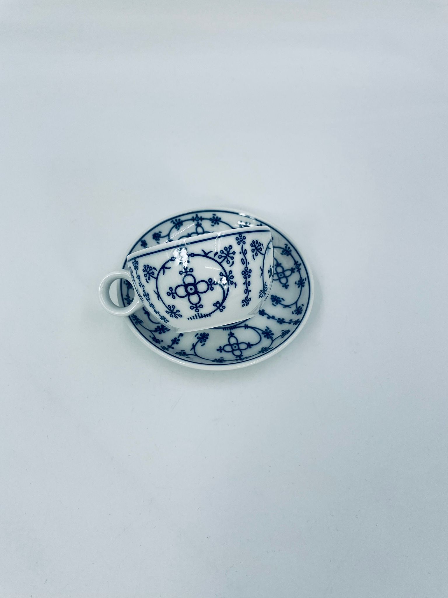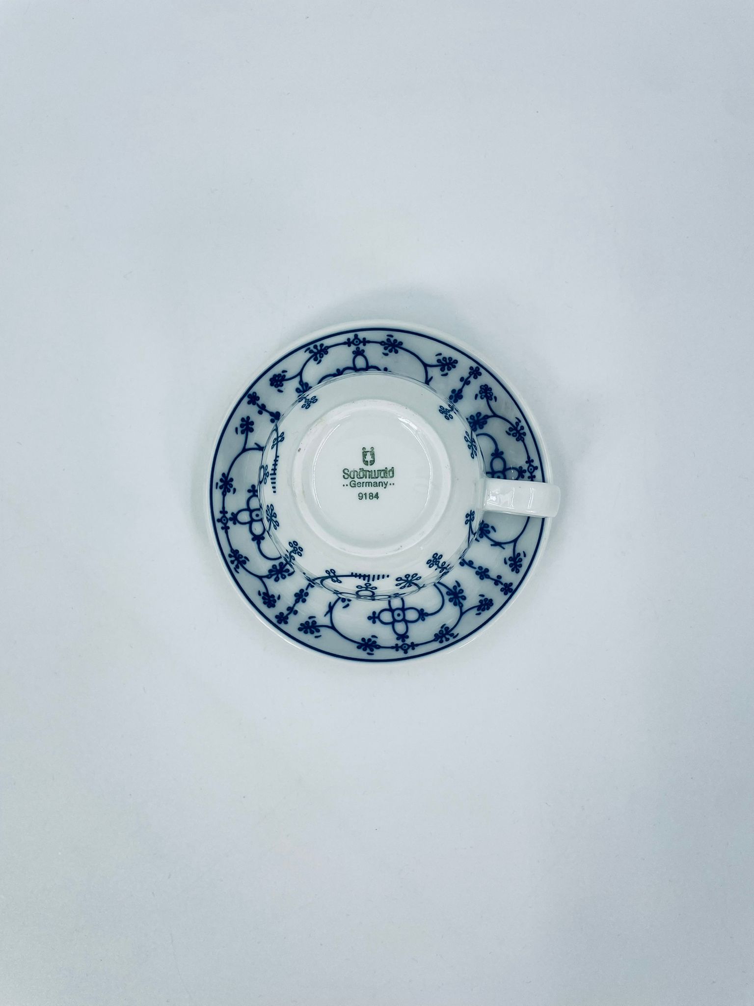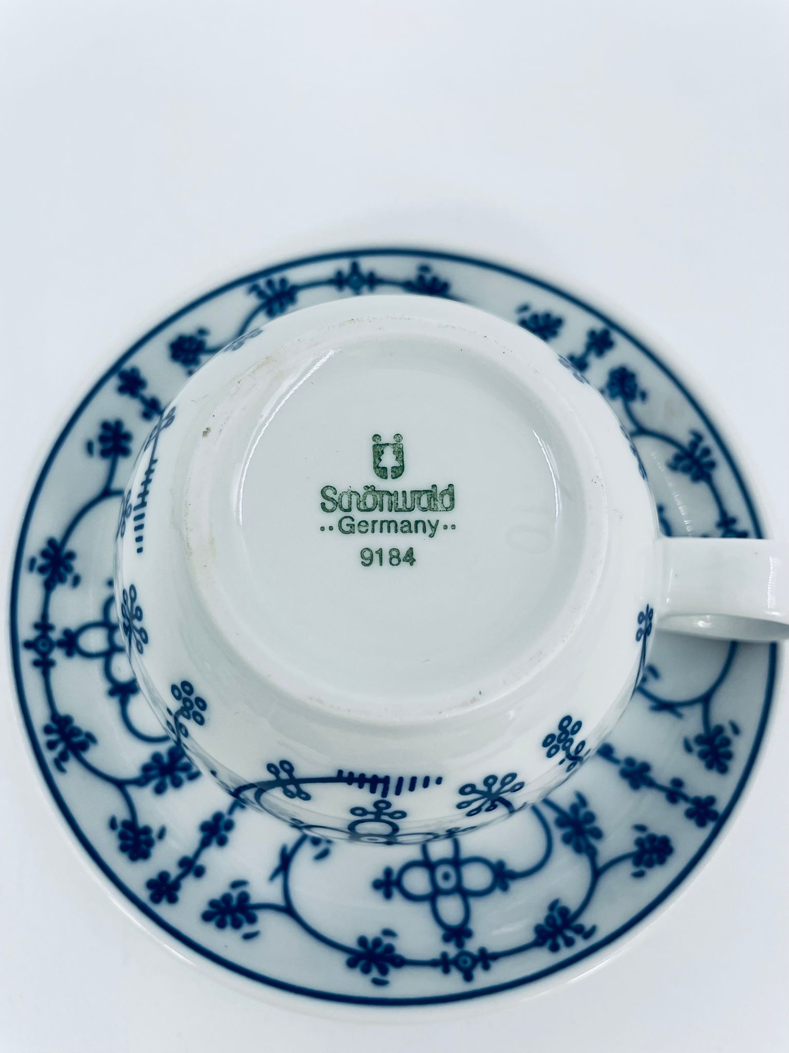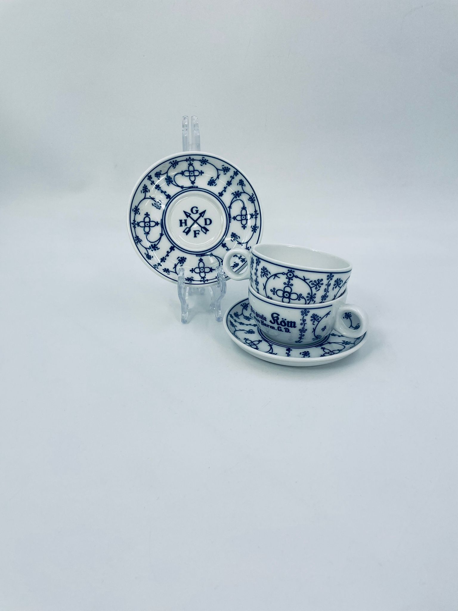 Filiżanka kolekcjonerska w zestawie duo wytwórni Schönwald , wykonana z wysokiej jakości białej porcelany. Zestaw charakteryzuje się kobaltowym wzorem roślinnym.