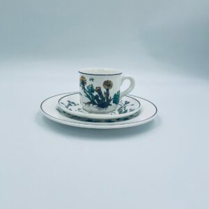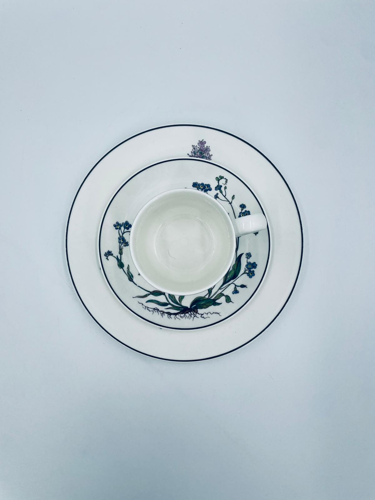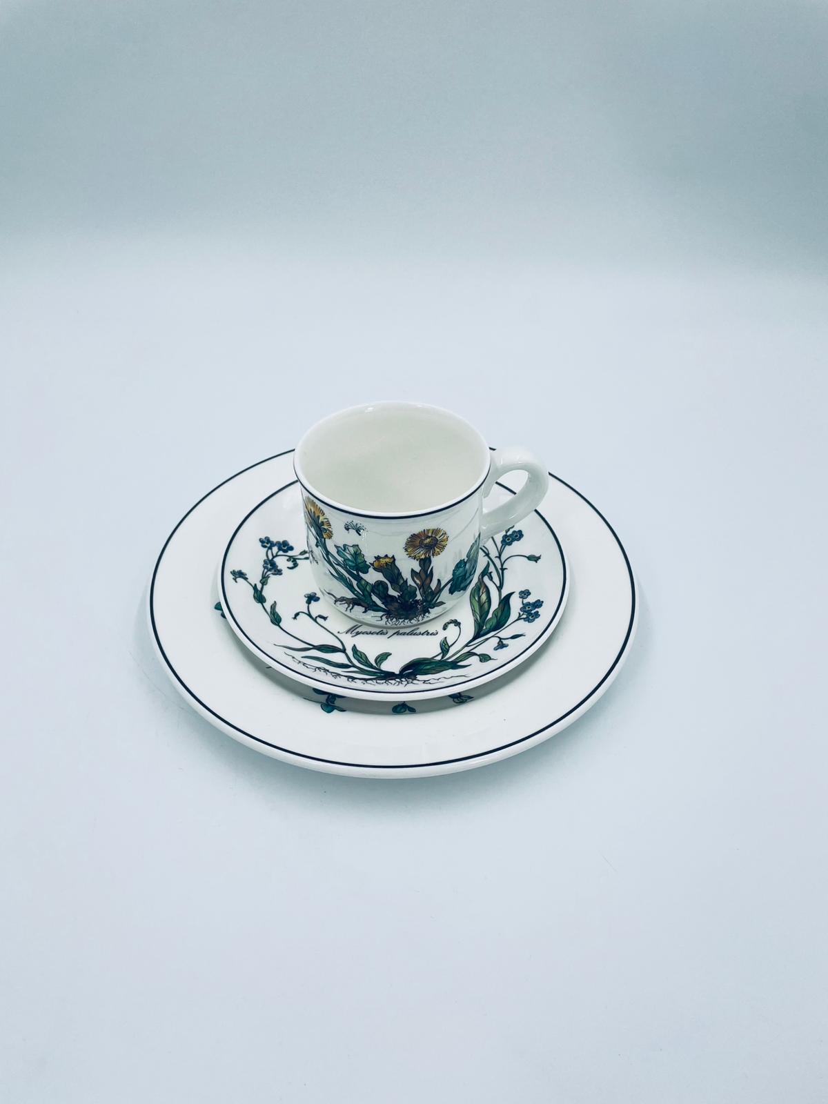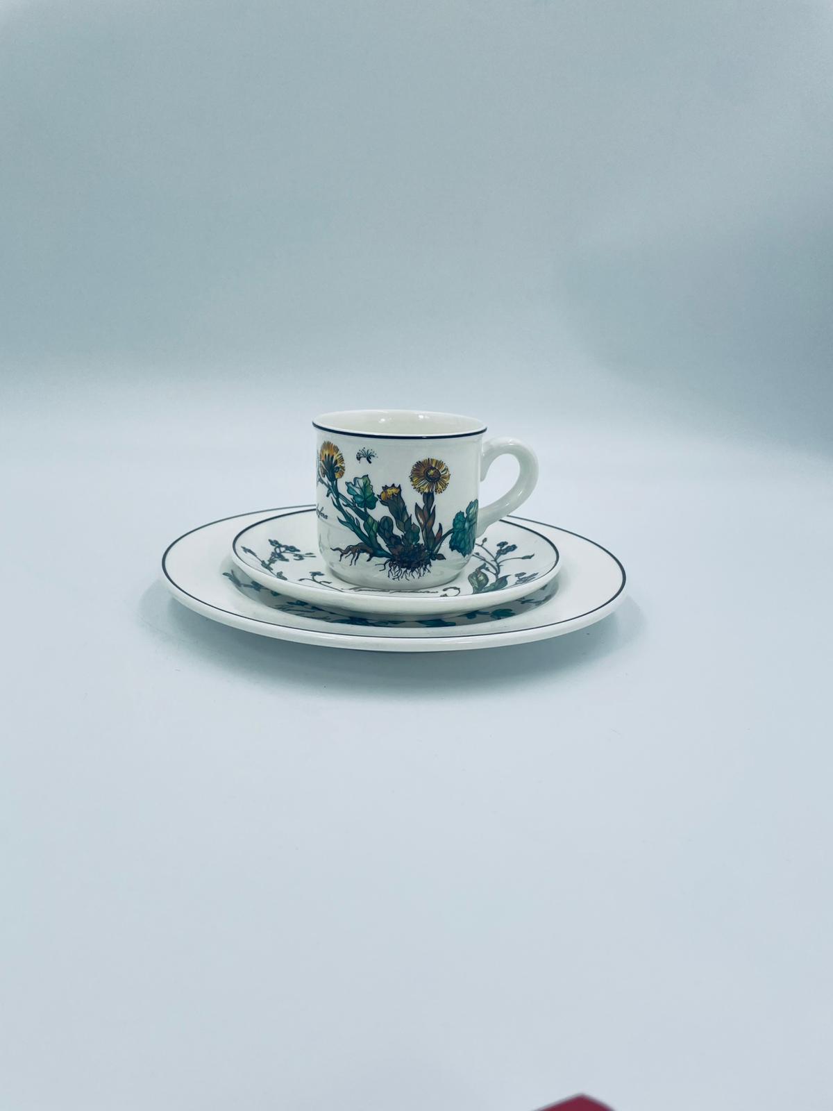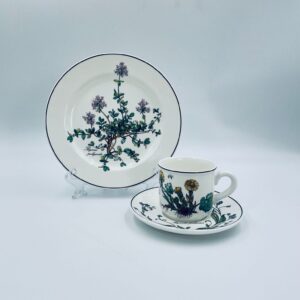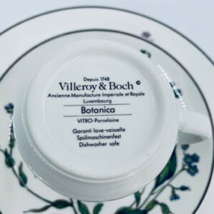 Filiżanka kolekcjonerska w zestawie trio, wytwórni Villeroy & Boch z kolekcji Botanika produkowanej w latach 1976/1983-2008 w Luxemburgu, wykonana z wysokiej jakości białej, lśniącej porcelany. Zestaw charakteryzuje się uroczym zdobieniem przedstawiającym kwiaty i zioła.