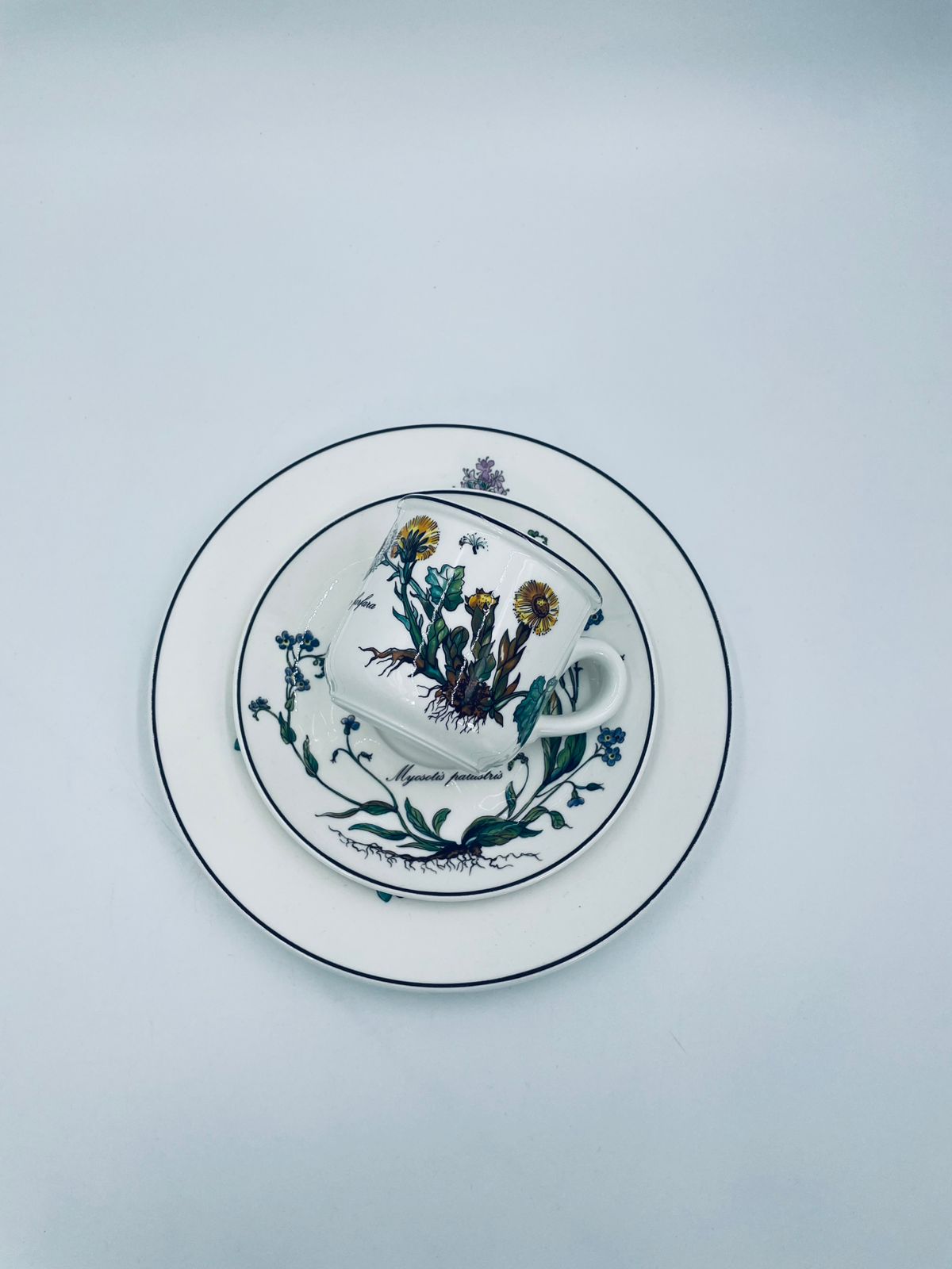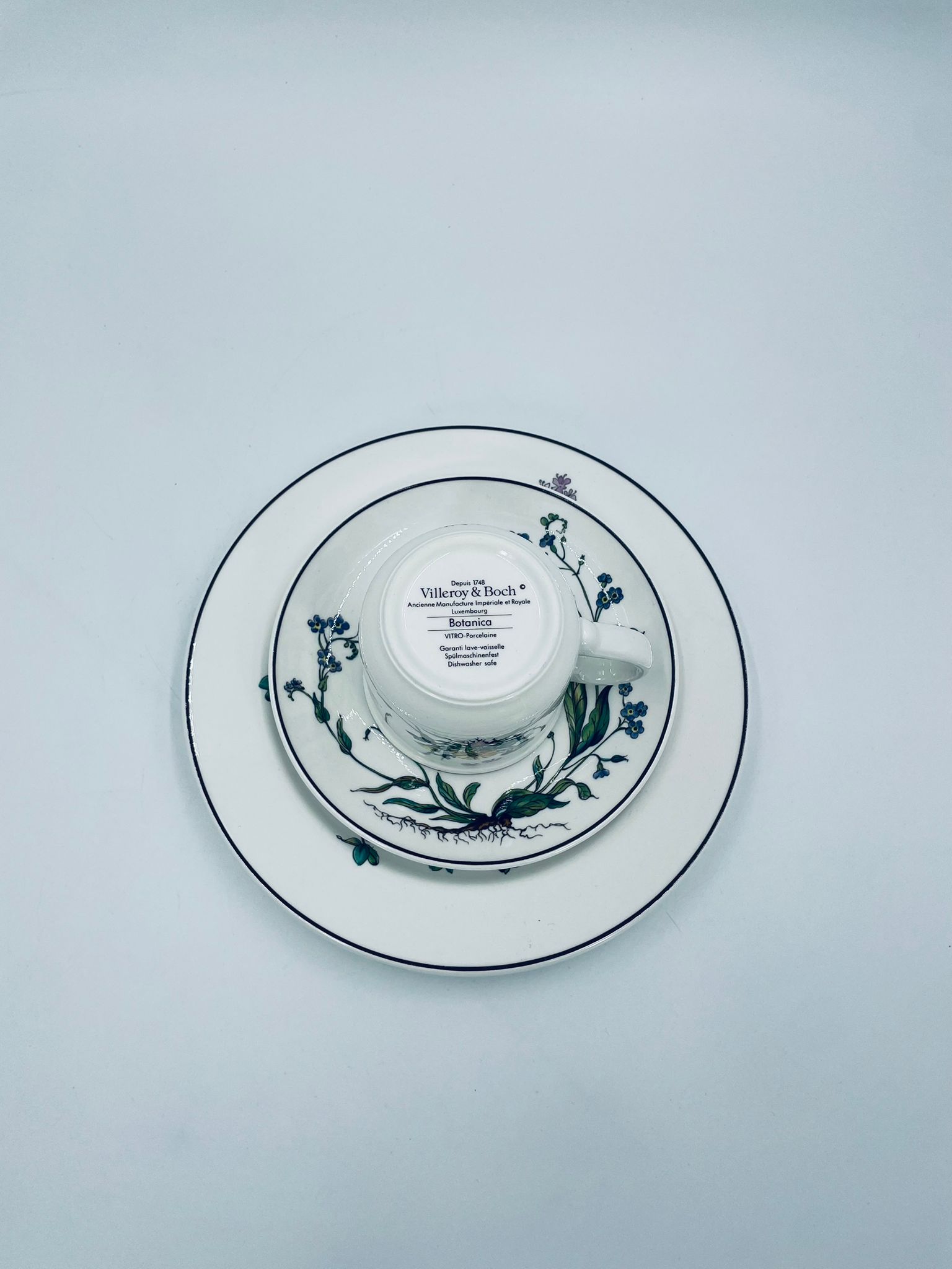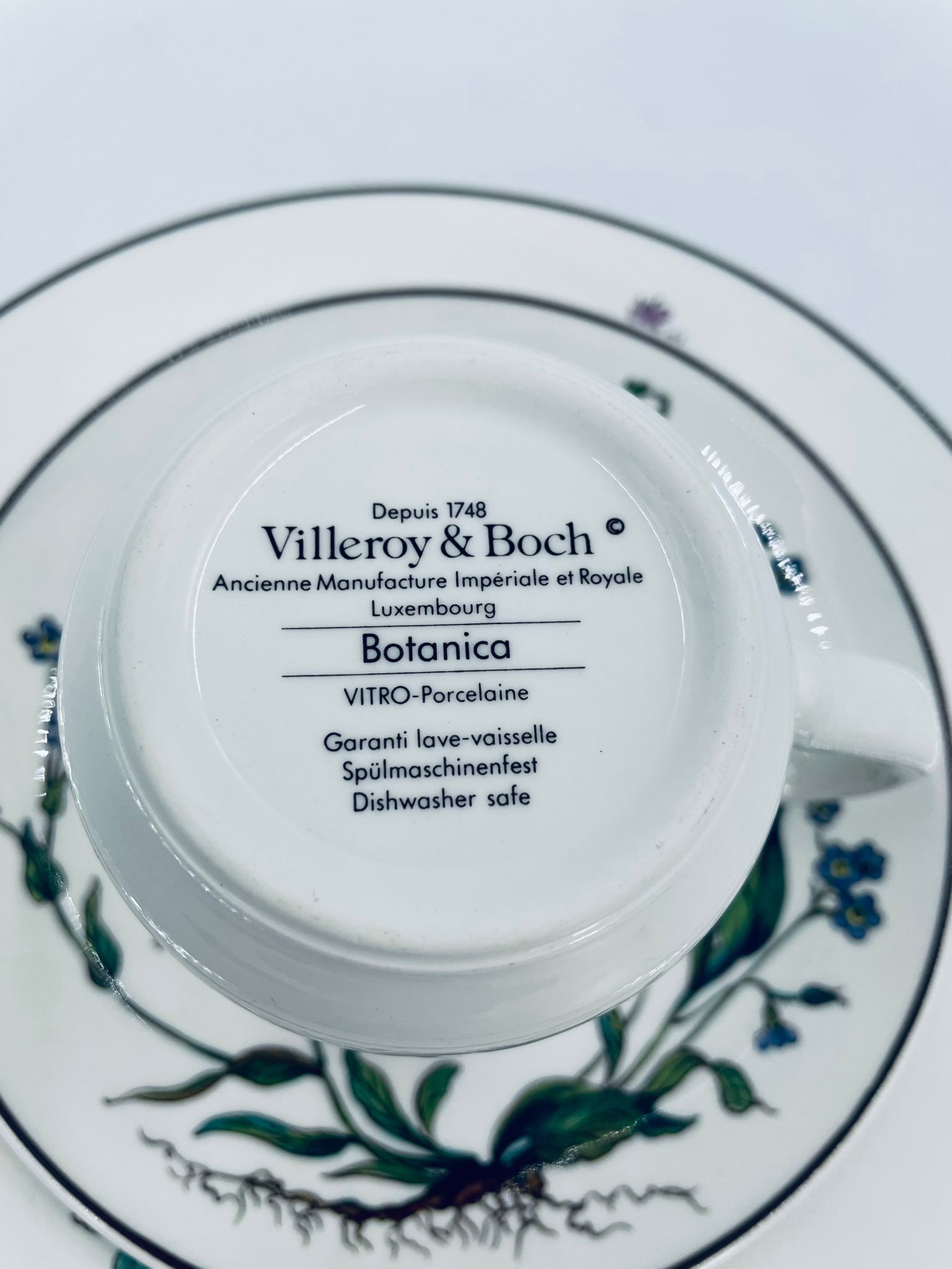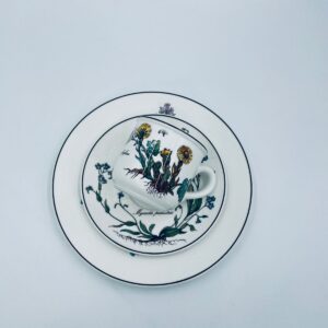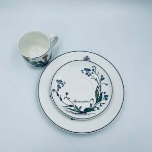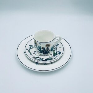 Filiżanka kolekcjonerska w zestawie trio, wytwórni Villeroy & Boch z kolekcji Botanika produkowanej w latach 1976/1983-2008 w Luxemburgu, wykonana z wysokiej jakości białej, lśniącej porcelany. Zestaw charakteryzuje się uroczym zdobieniem przedstawiającym kwiaty i zioła.