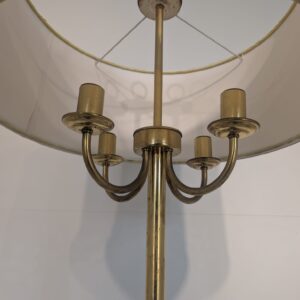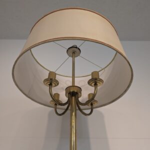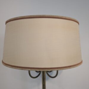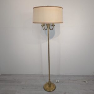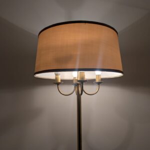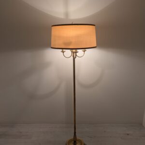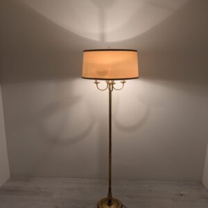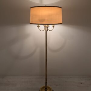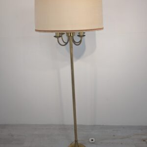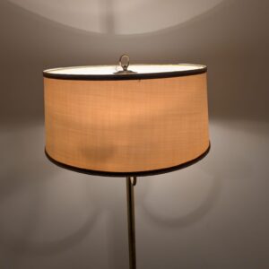Stylowy lampa podłogowa w stylu mid-century modern. Wykonana z mosiądzu, z eleganckim abażurem. Doskonale dopasuje się do wnętrz w stylu retro lub nowoczesnych. Lampa jest w dobrym stanie technicznym, gotowa do użytku