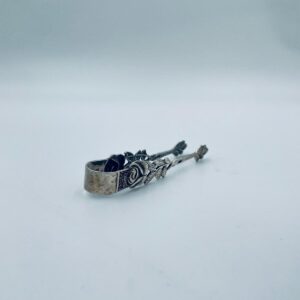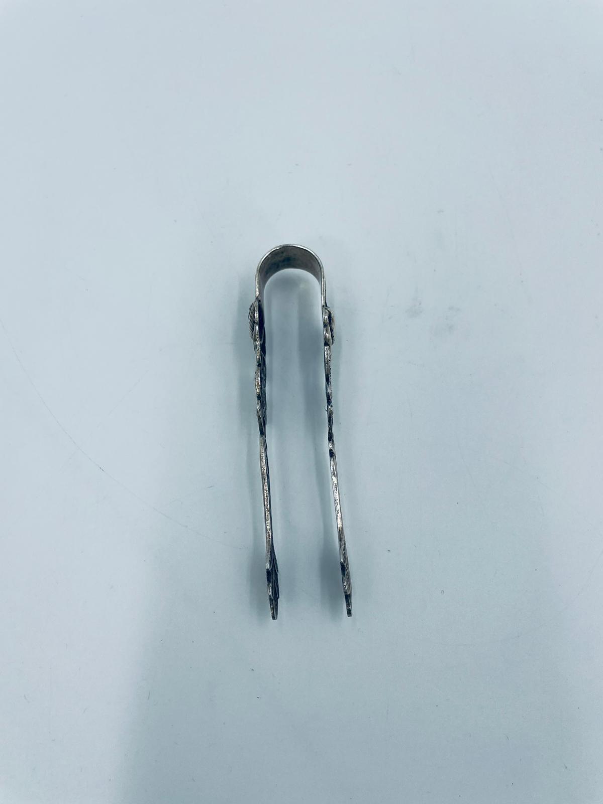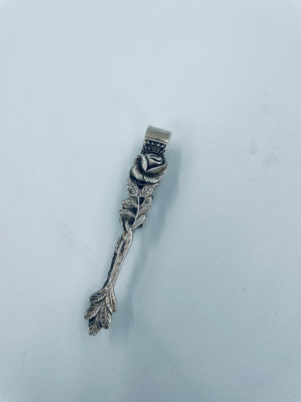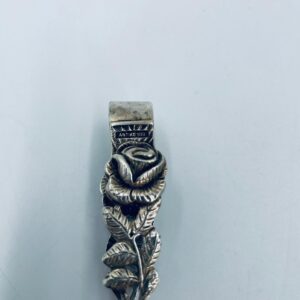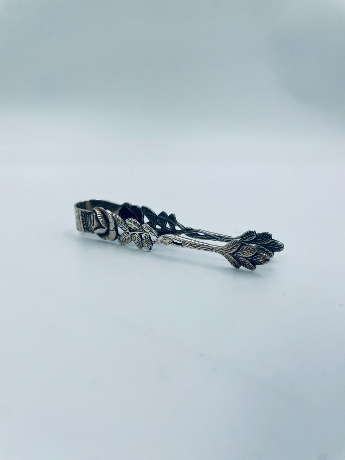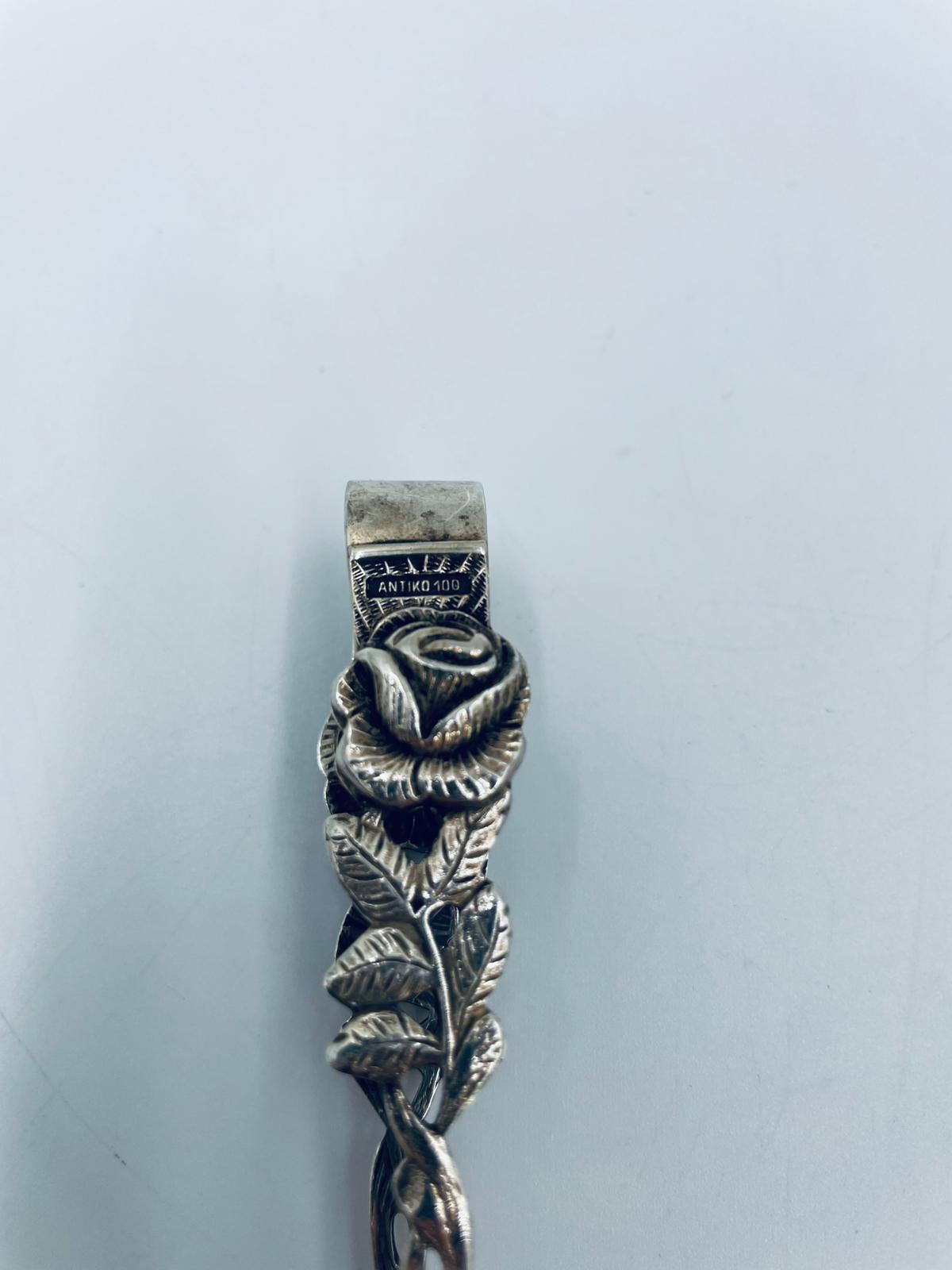 Antyczne szczypce do cukru wykonane przez niemiecka firmę Antiko, posrebrzane o próbie 100. Szczypce z motywem Róży z Hildenshein. Charakterystycznym elementem jest trzonek w formie gałązki z liśćmi, zakończony misternie wykonanym pąkiem róży.