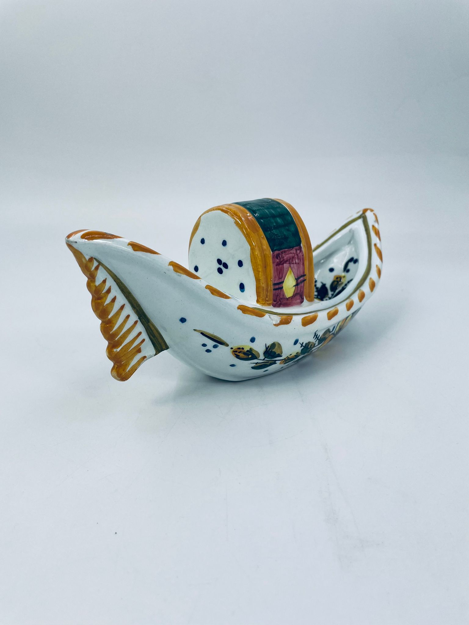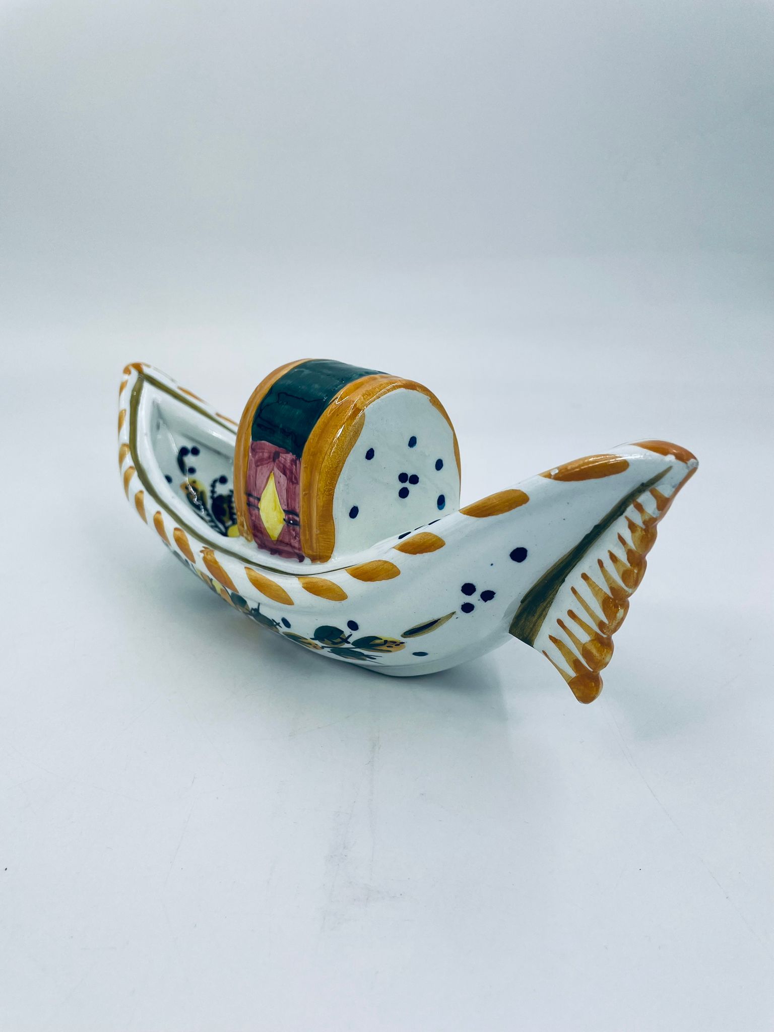 Ceramiczna Łódź garlaz, wykonana w Hiszpanii. Ręcznie malowana. Przedmiot jest delikatnie uszczerbiony.
