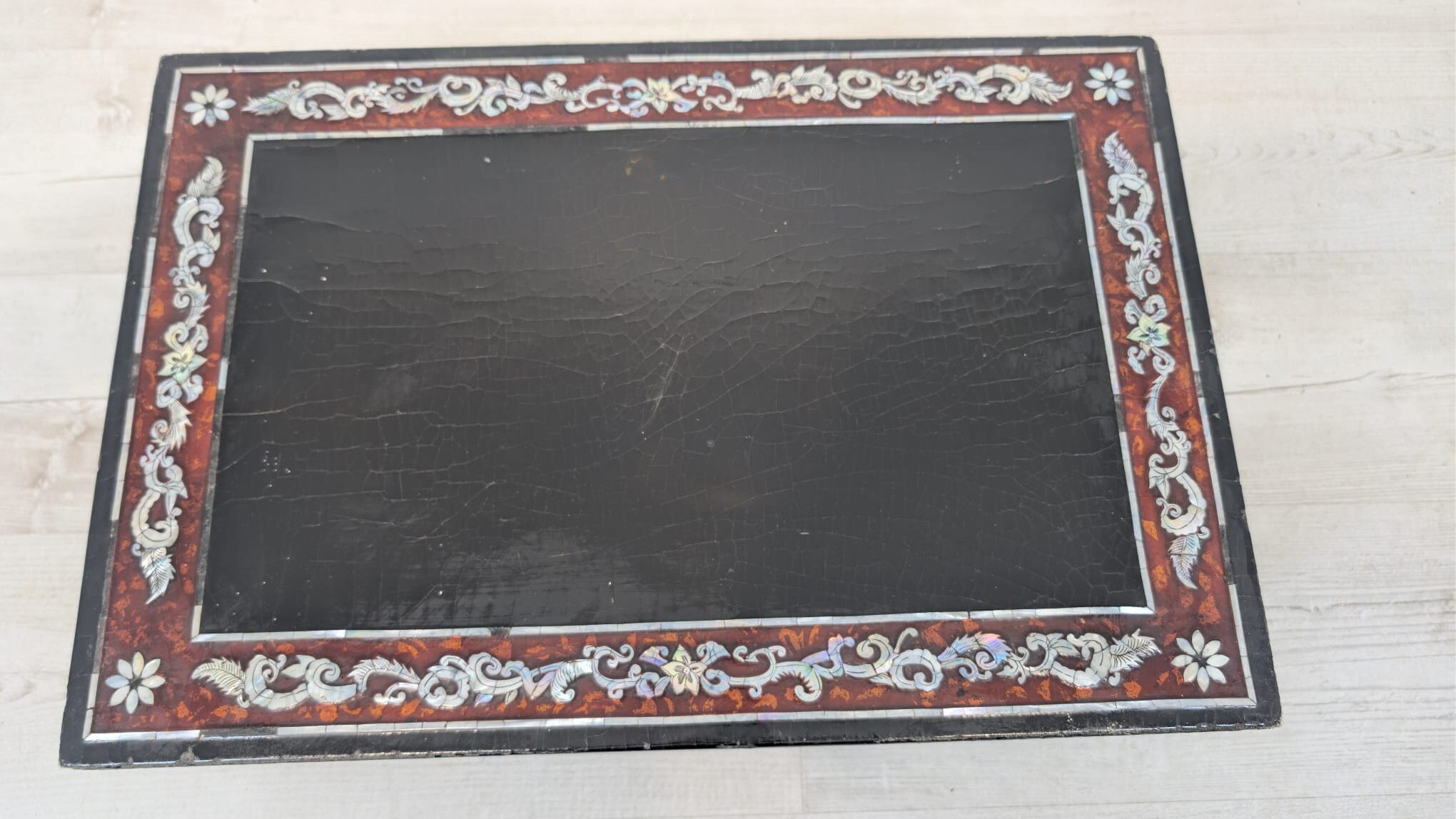 Chiński stolik kawowy niski inkrustowany masą perłową orientalny