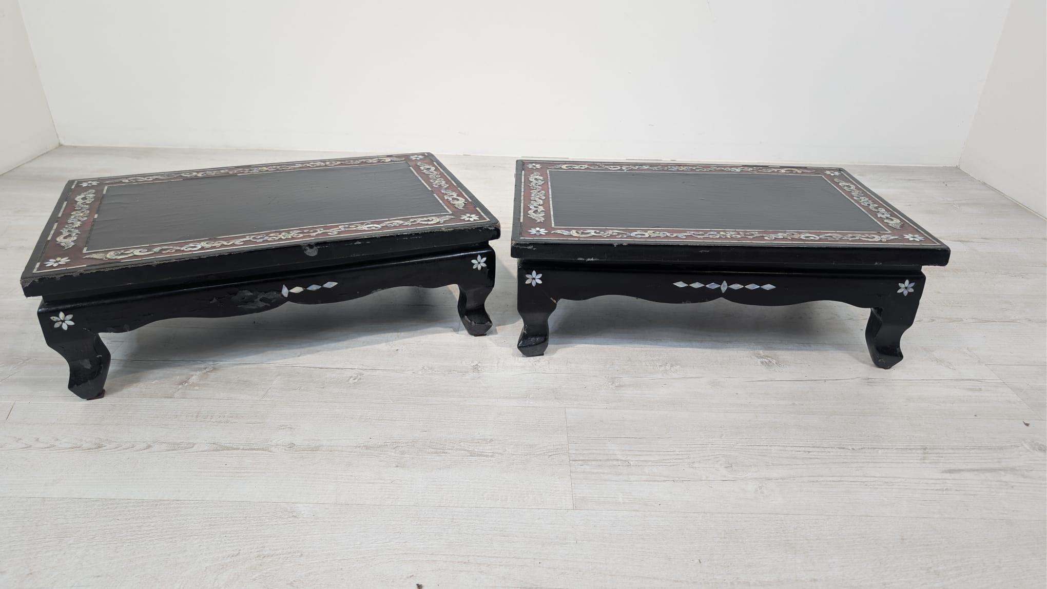 Stoliki posiadają odpryski oraz niewielkie ubytki pasy perłowej.