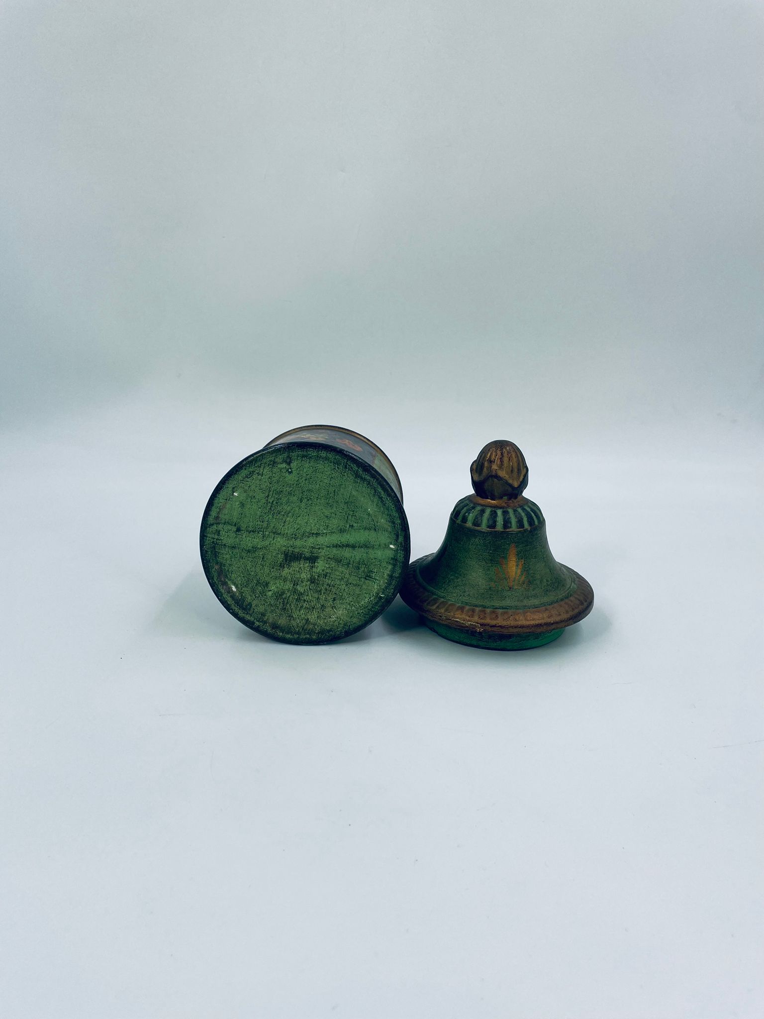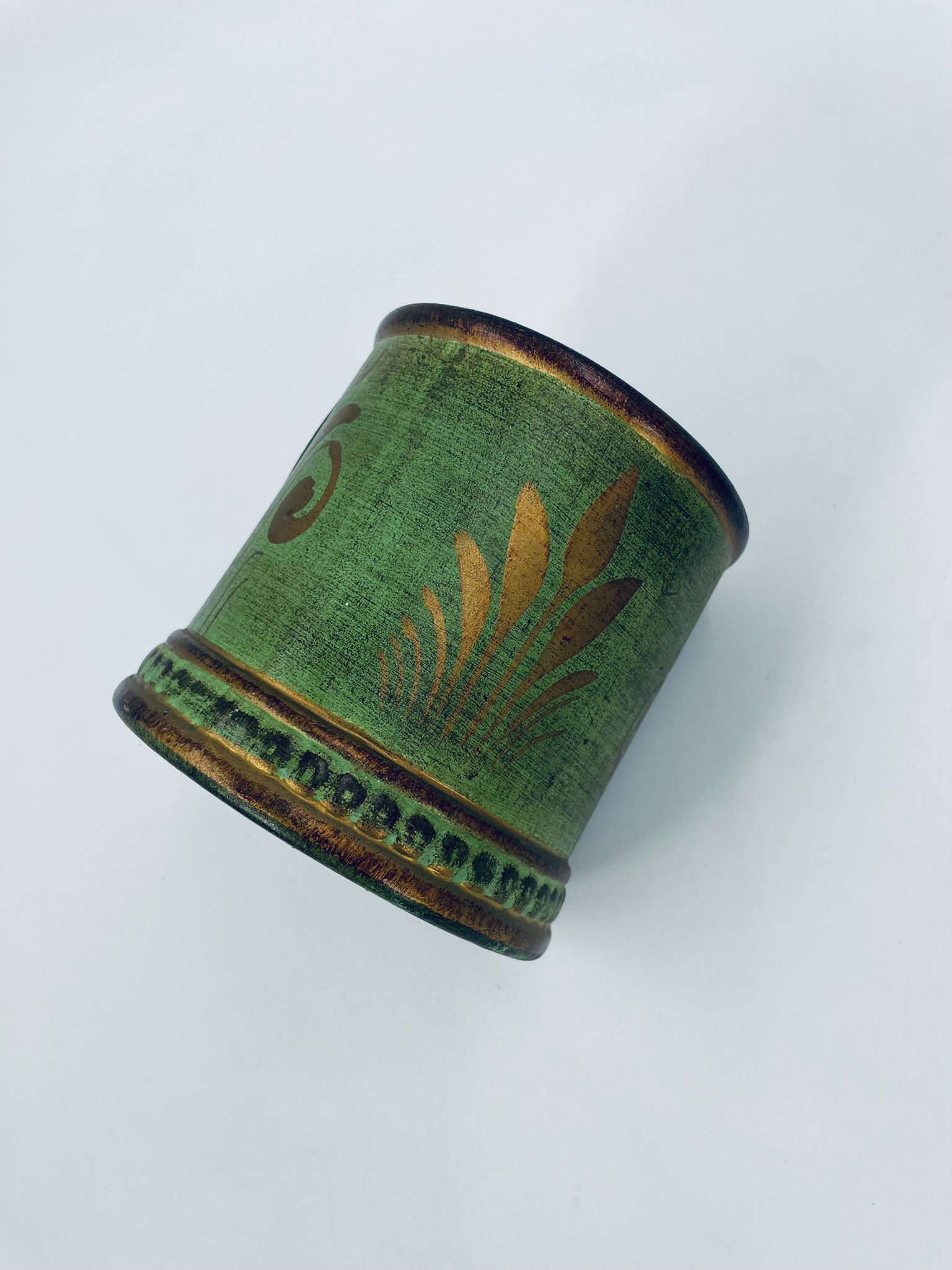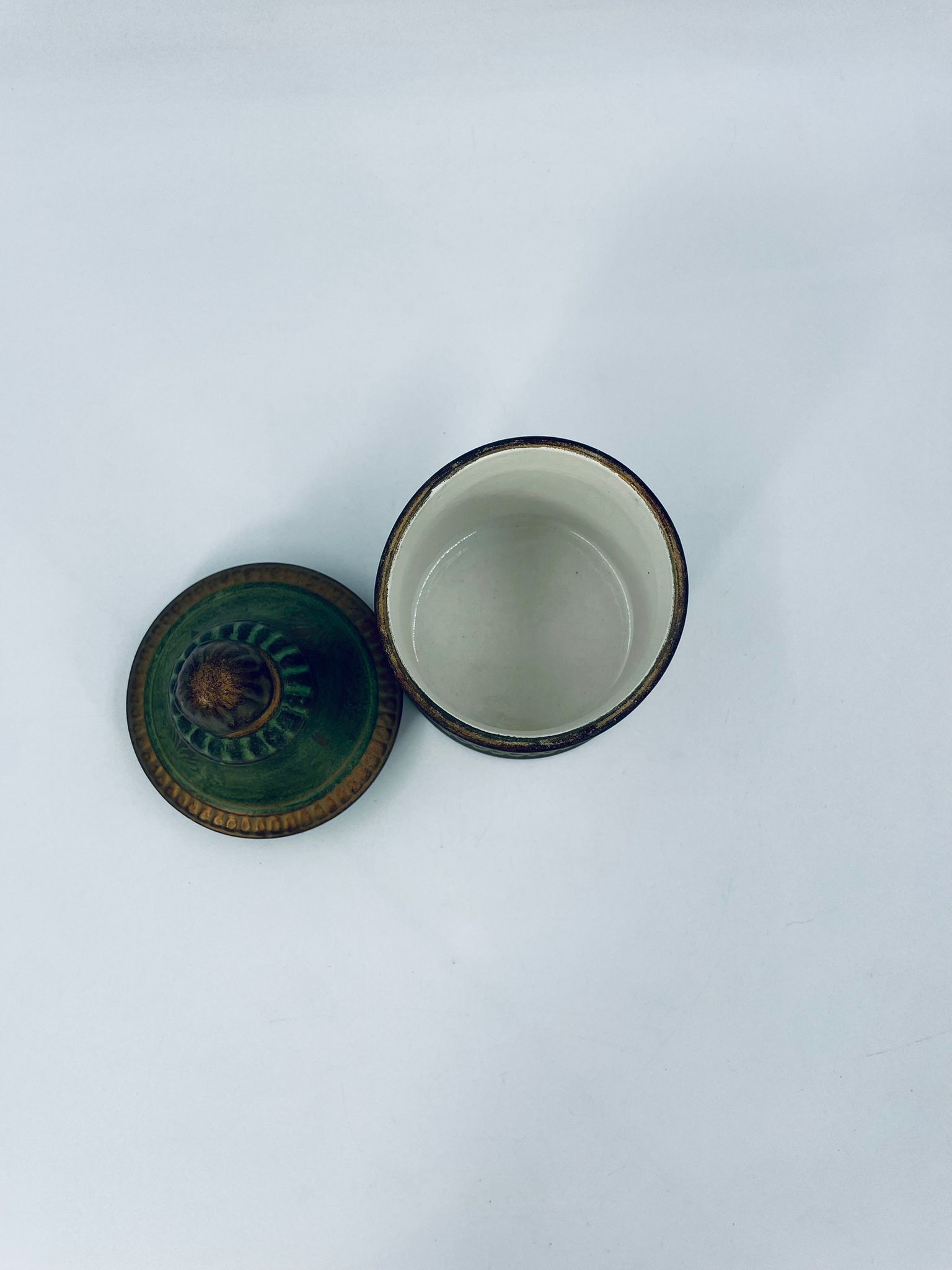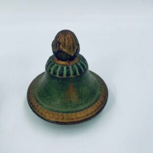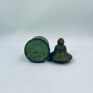 Cukiernica w stylu Vintage, wykonana z ceramiki. Cukiernica charakteryzuje się kolorem zielono- złotym, ręcznie malowanym wzorem kwiatowym oraz dekoracyjna pokrywa z uchwytem.