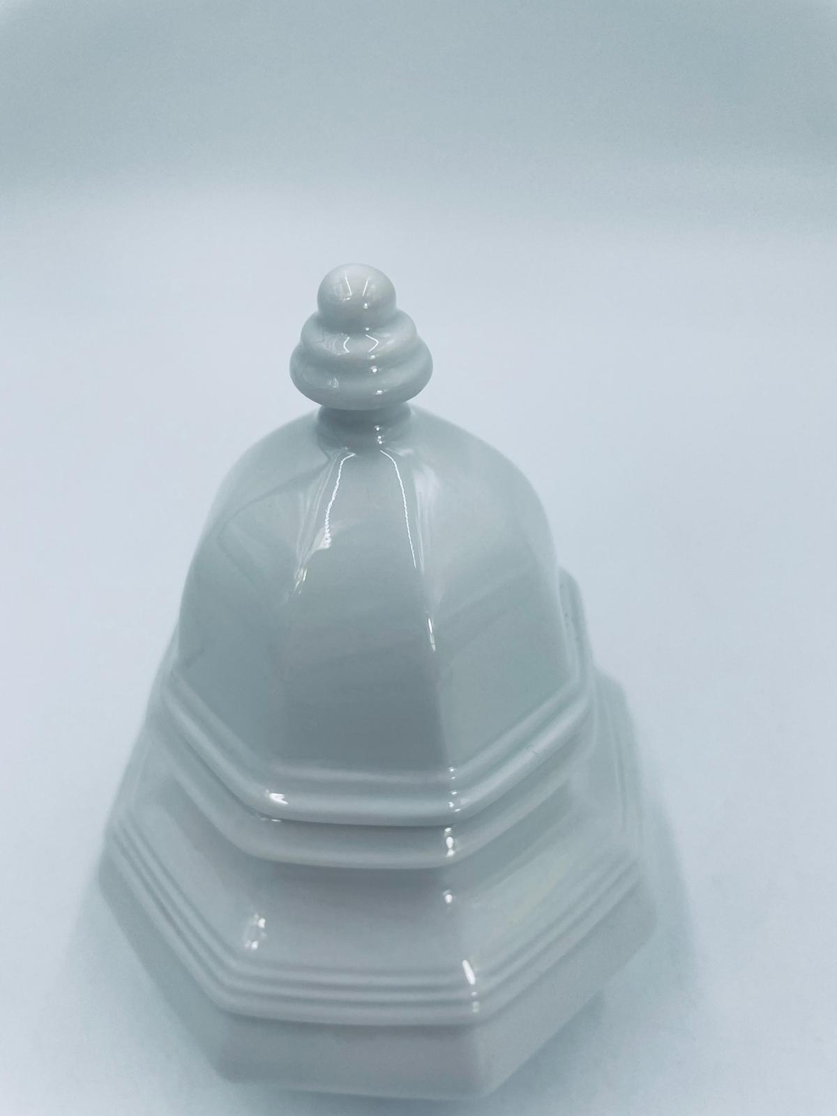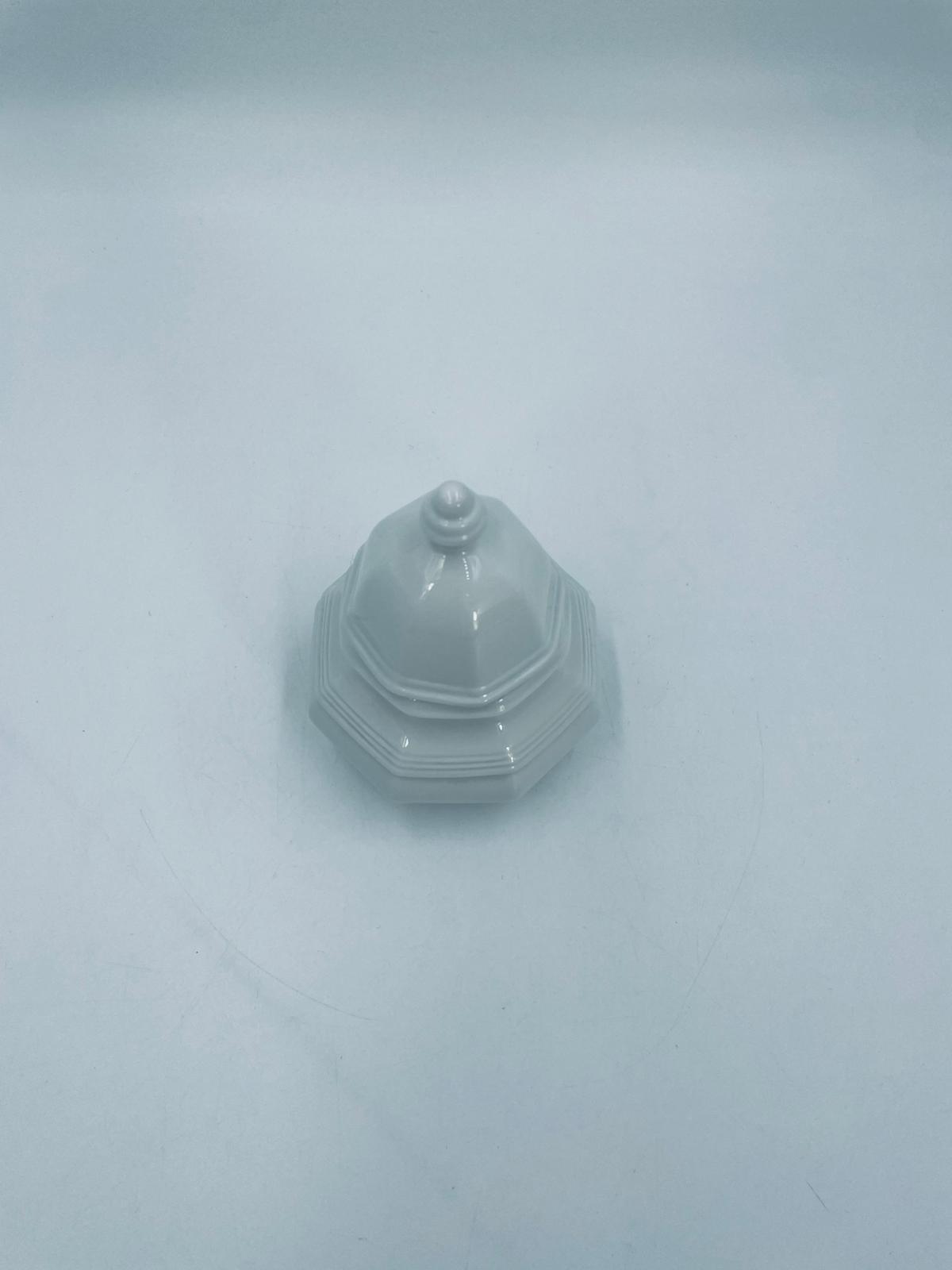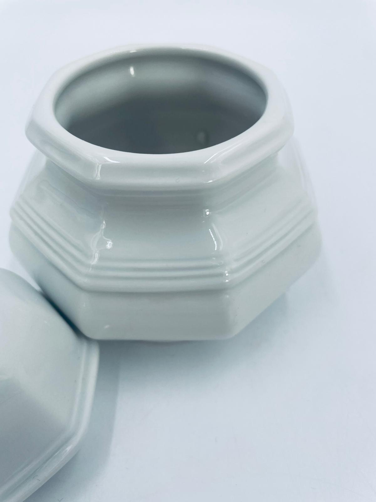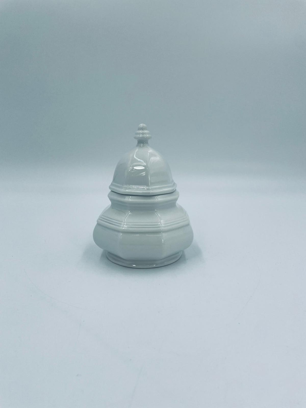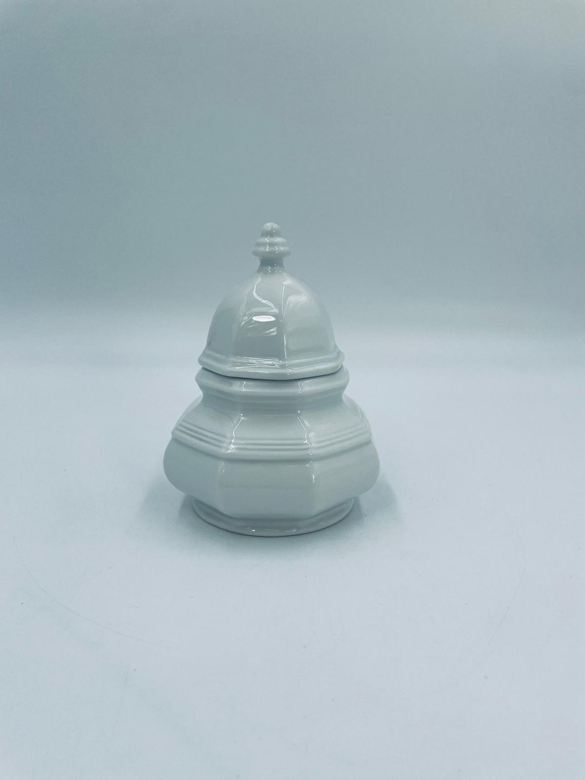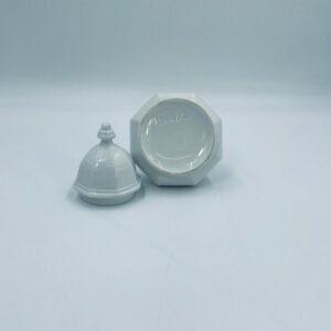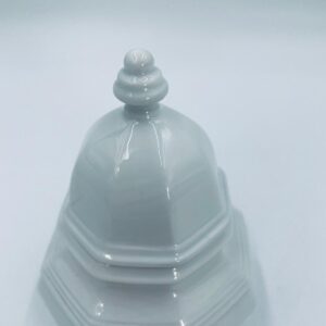 Cukiernica wytwórni Gallo, z serii Leonardo, wykonana z wysokiej jakości białej porcelany. Cukiernica klasyczna, charakteryzuje się elegancją oraz geometrycznym kształtem, posiada pokrywę z ozdobnym uchwytem.