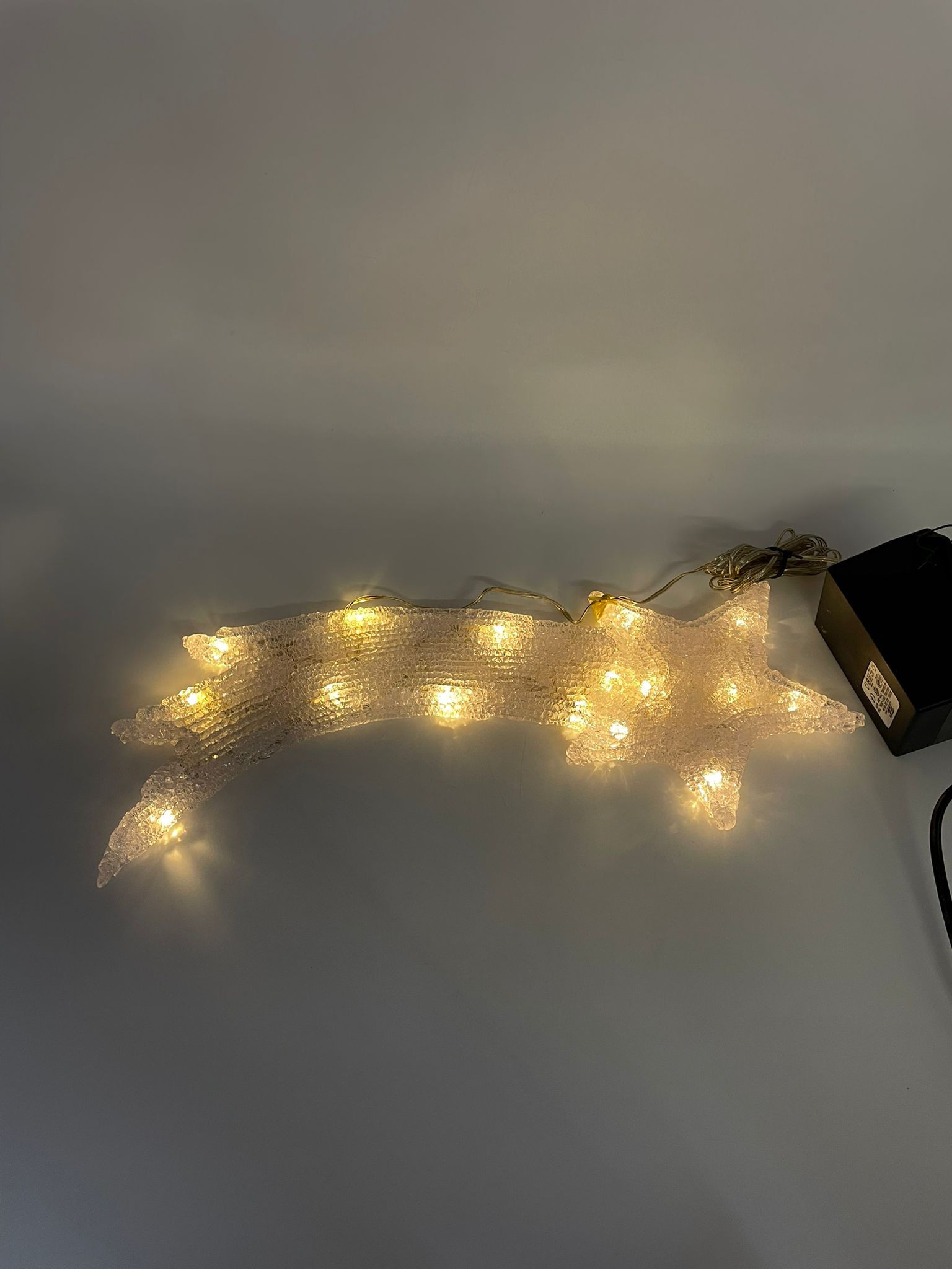 Dekoracja świąteczna w stylu Vintage. Dekoracja w kształcie spadającej gwiazdy z oświetlenie led, przeznaczona do uzytyku wewnątrz pomieszczenia. Brak zasilacza.