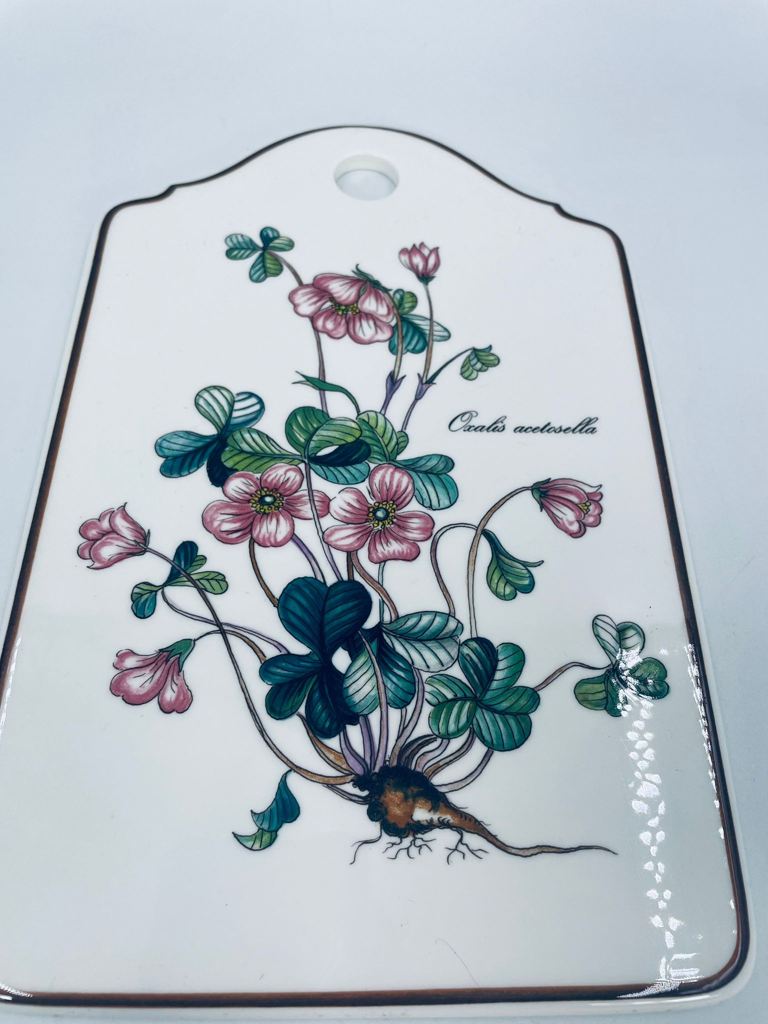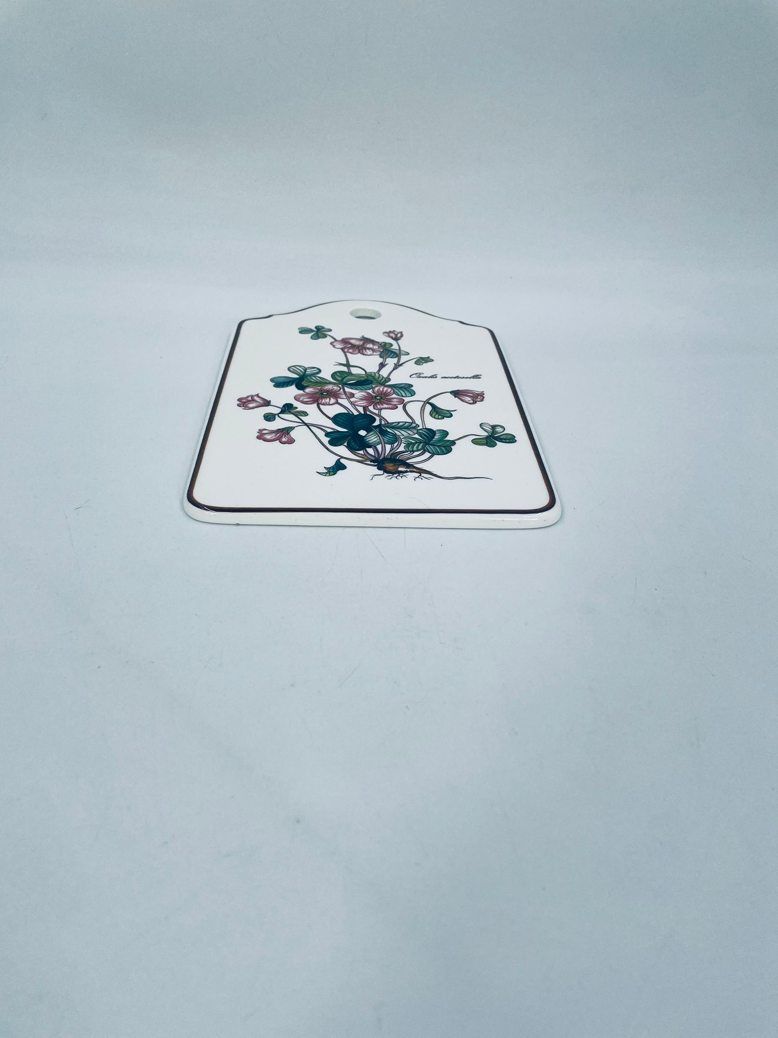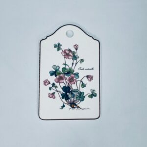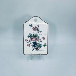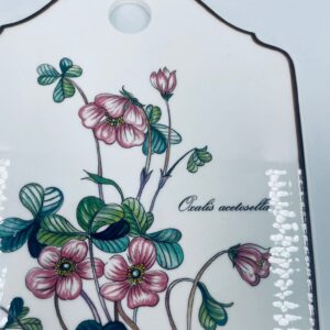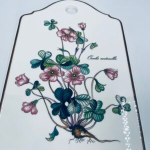 Deseczka dekoracyjna wytwórni Villeroy & Boch, z kolekcji botanica, wykonana z wysokiej jakości porcelany w kremowym kolorze. Deseczka z motywem roślinnym przedstawiającym szczawik zajeczy (oxalis acetosella).