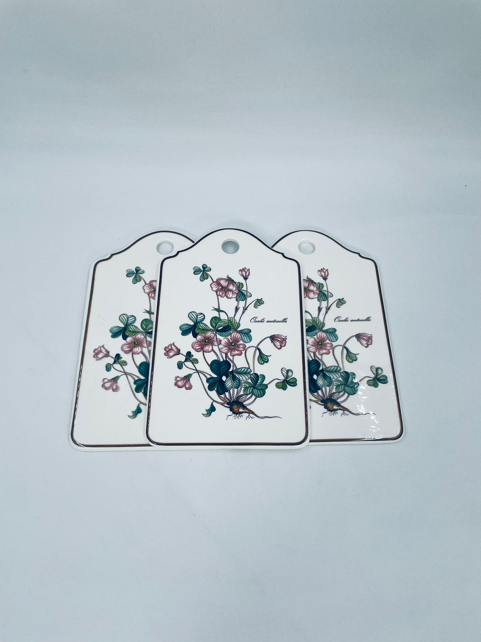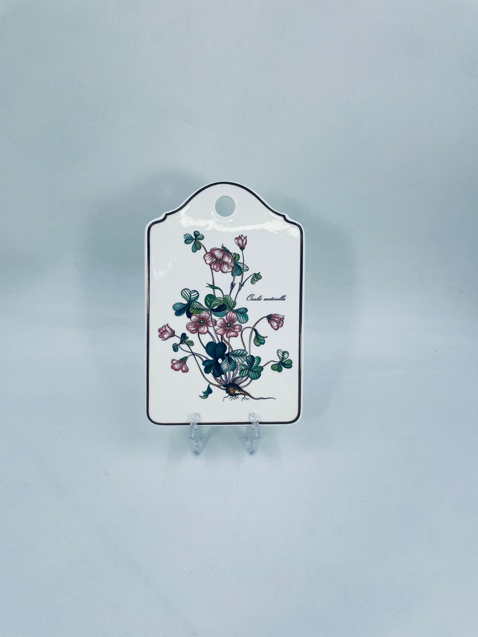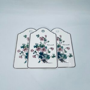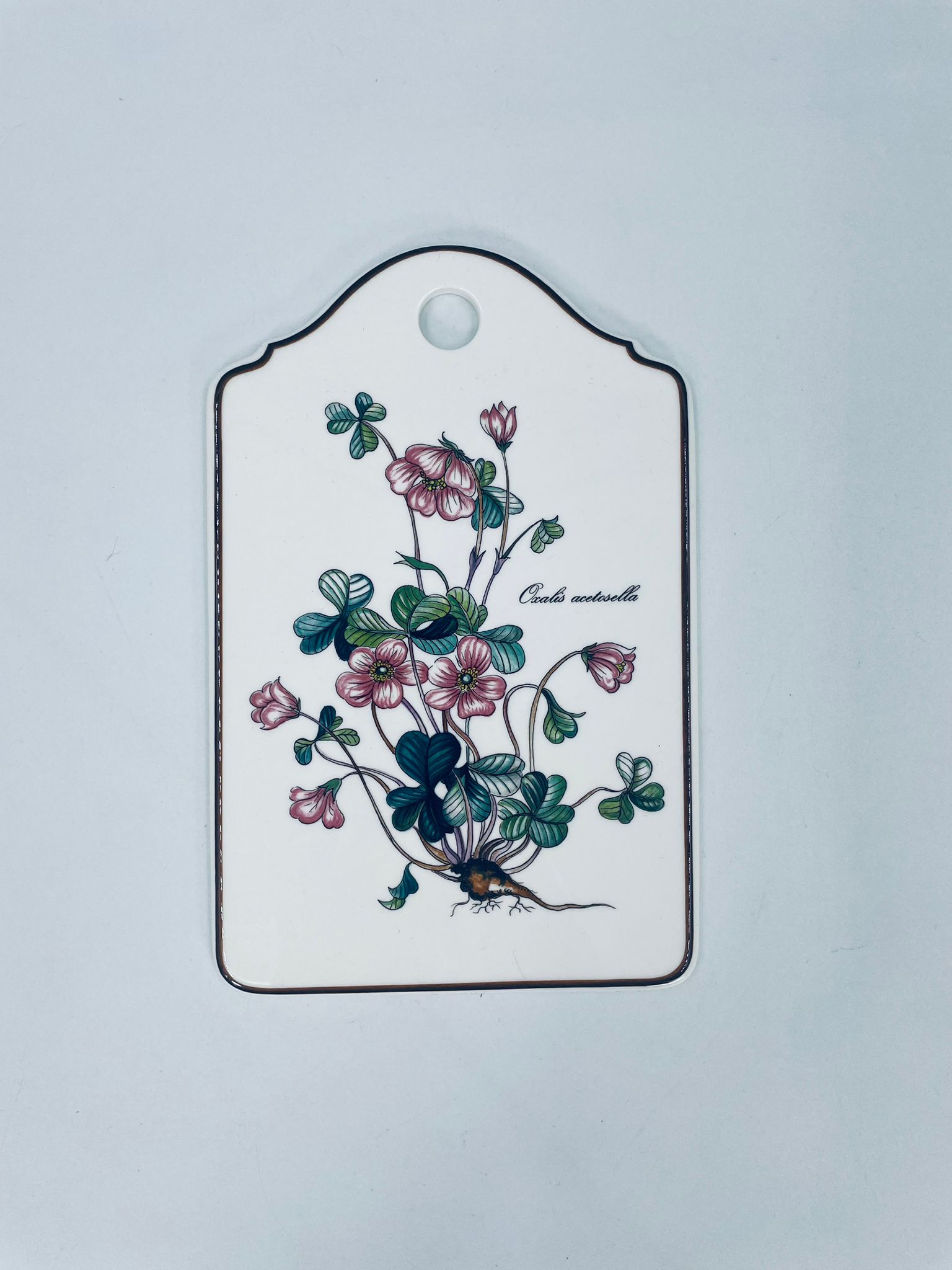 Deseczka dekoracyjna wytwórni Villeroy & Boch, z kolekcji botanica, wykonana z wysokiej jakości porcelany w kremowym kolorze. Deseczka z motywem roślinnym przedstawiającym szczawik zajeczy (oxalis acetosella).