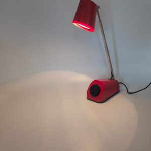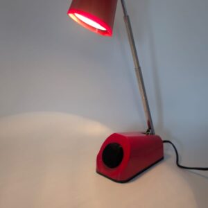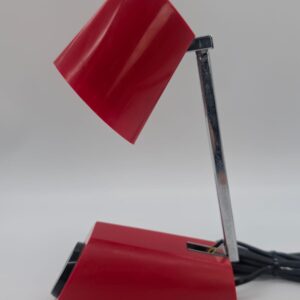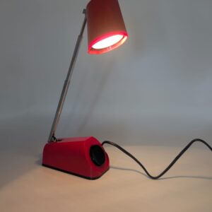 Czerwona, plastikowa lampa stołowa w stylu skandynawskim, projektu Benta Gantzel-Boysena z lat 60. XX wieku. Lampa ma prosty, minimalistyczny design i jest w dobrym stanie.