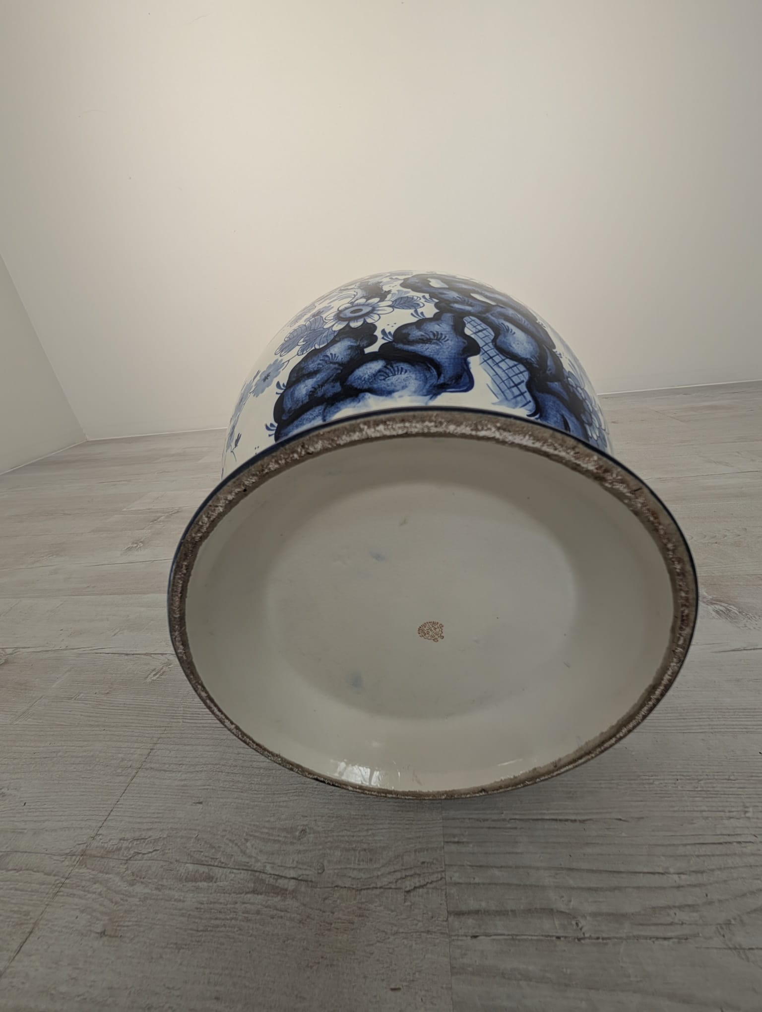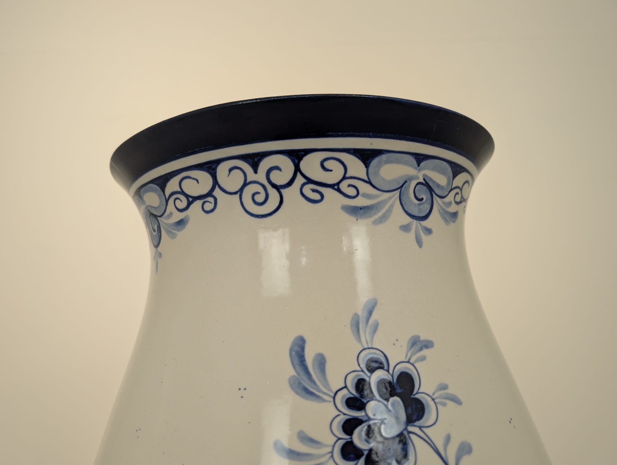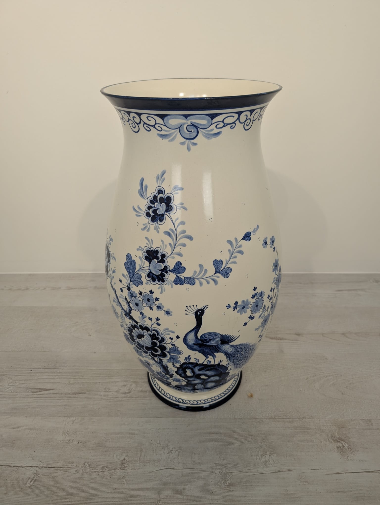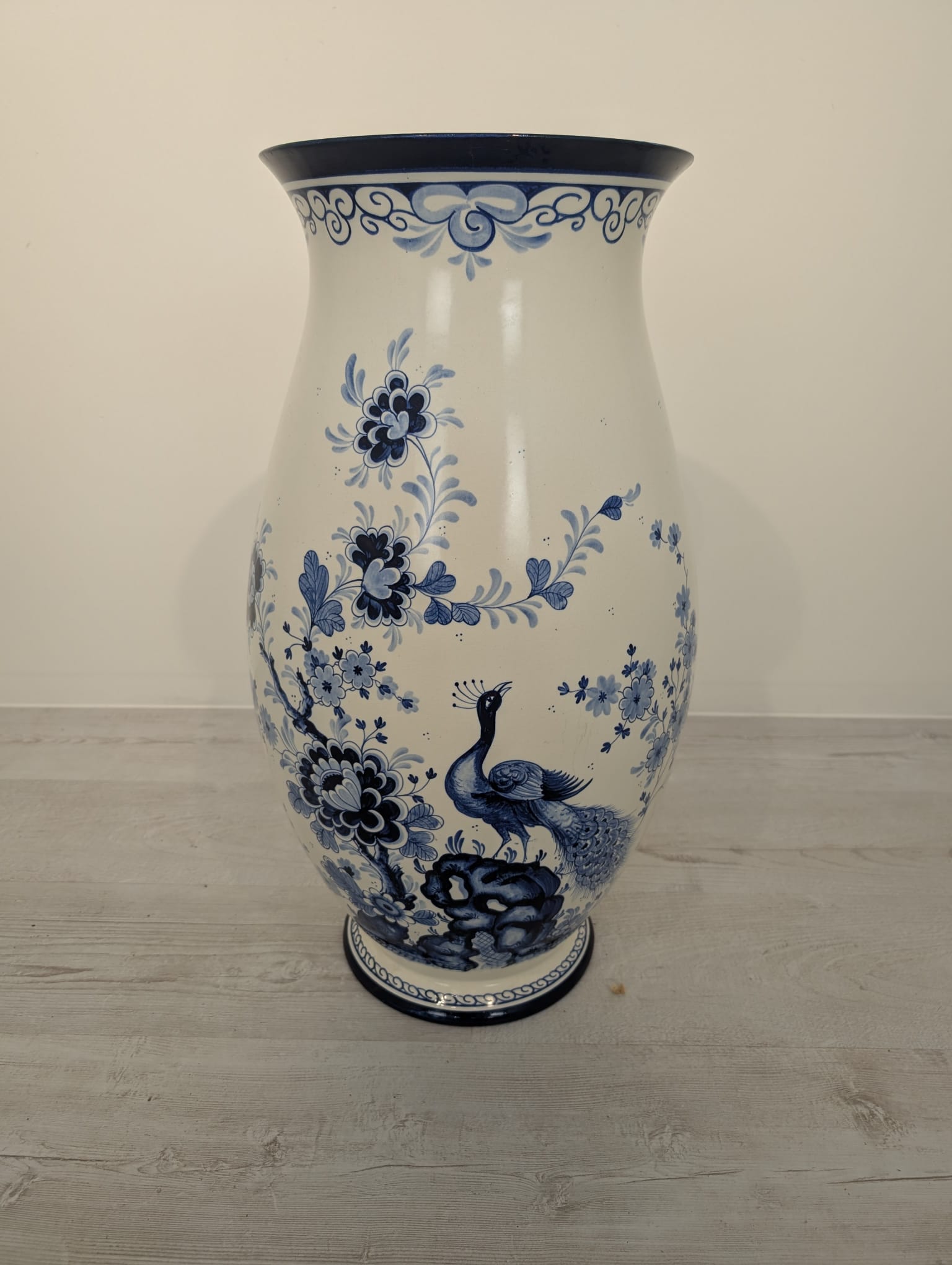 Duży porcelanowy wazon w pięknych kobaltowych wzorach przedstawiających żurawia w stylu holenderskim.