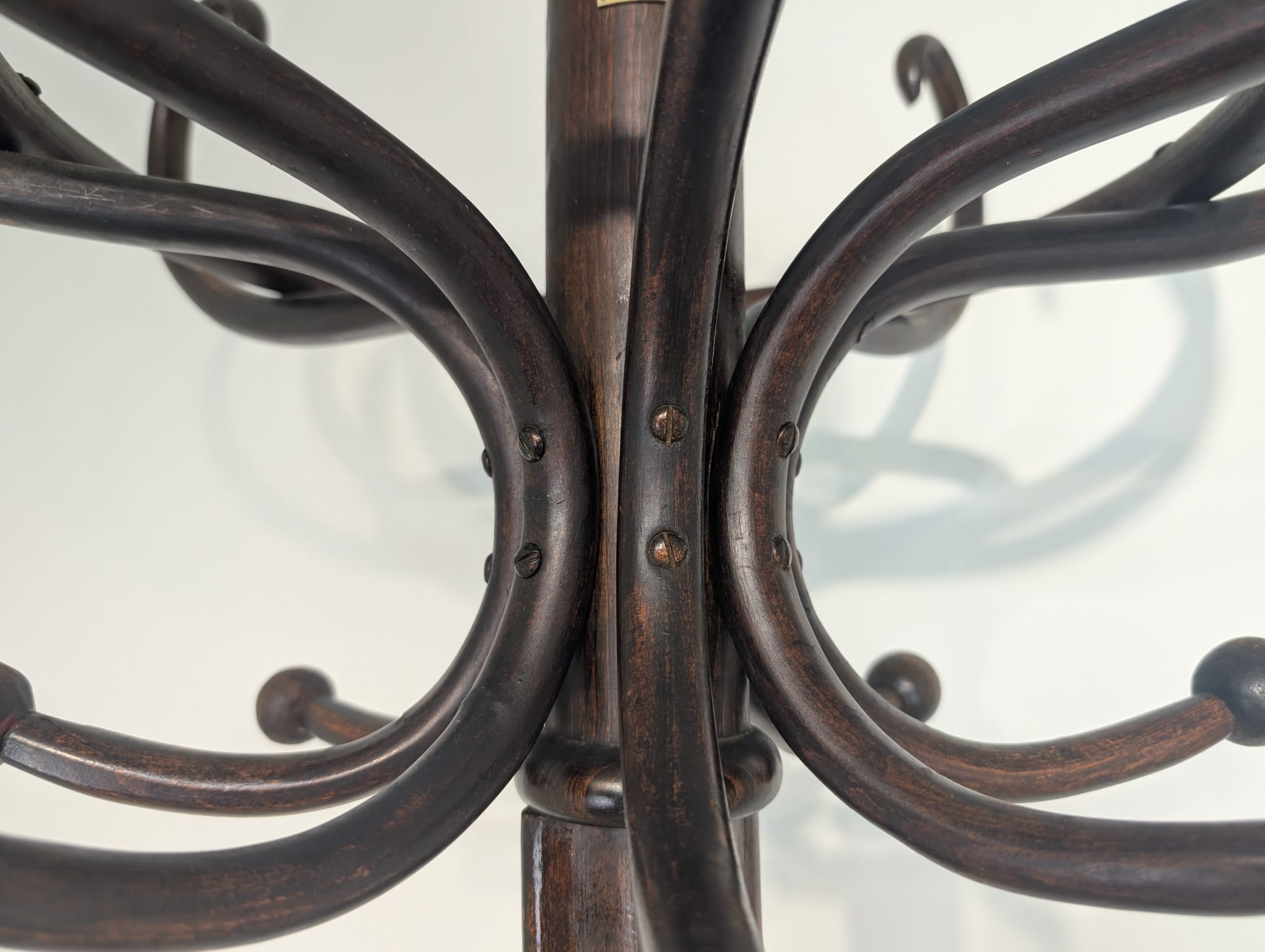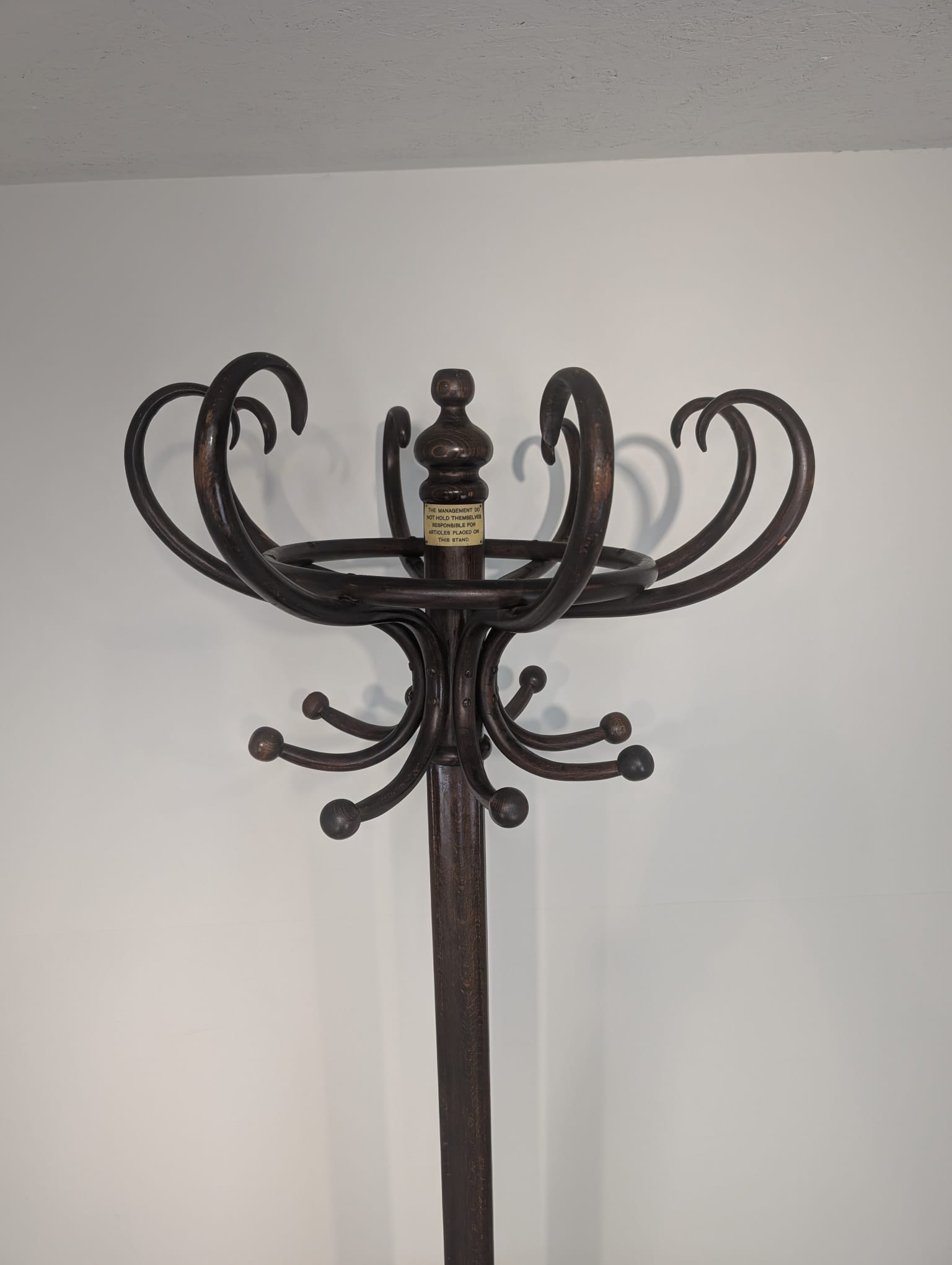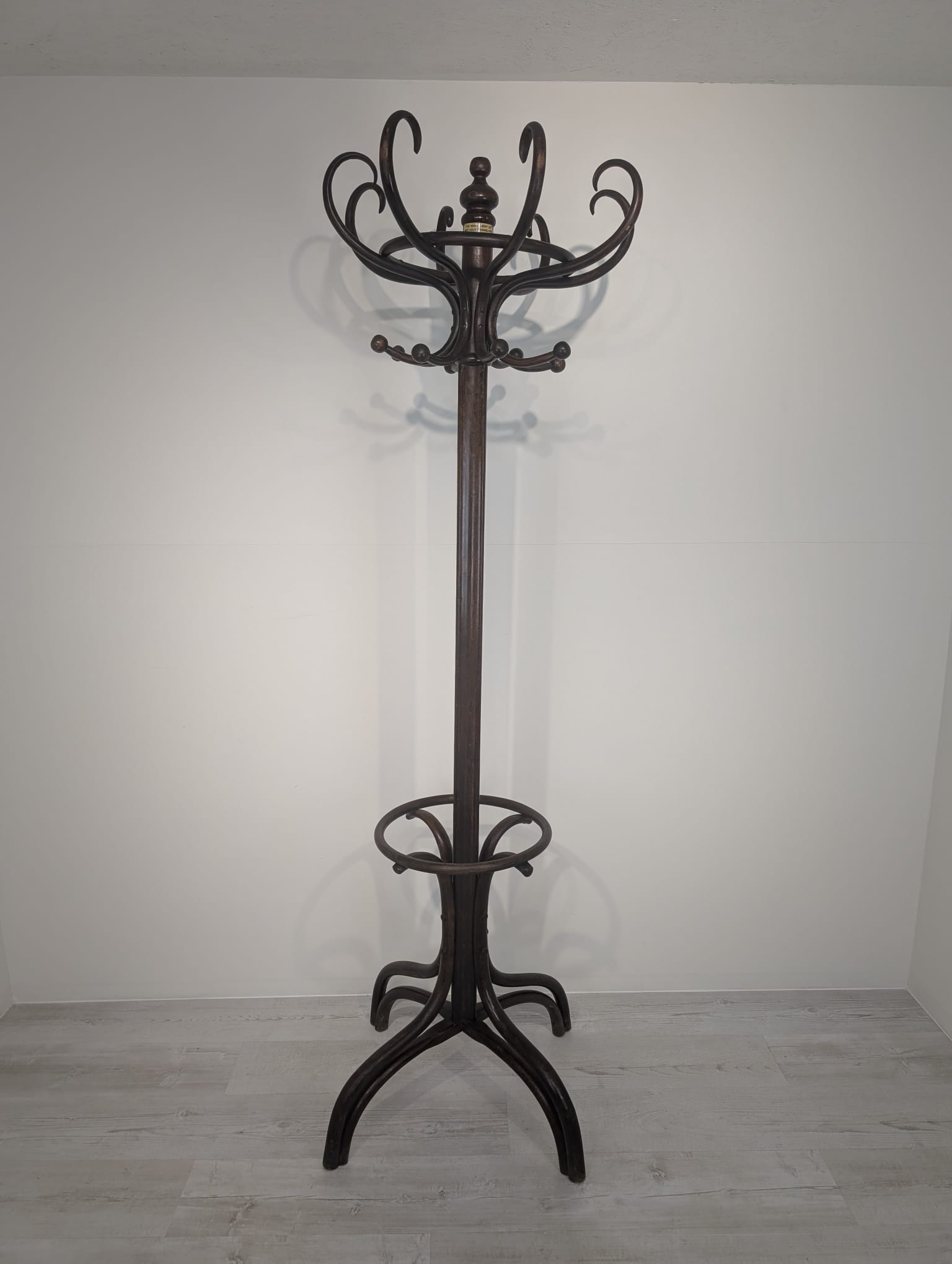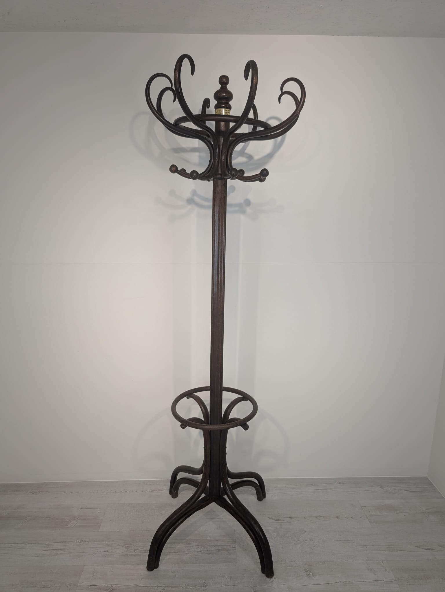 Wieszak z lat 40-stych z drewna mahoniowego.