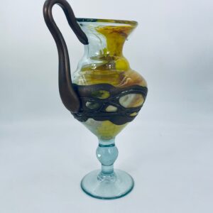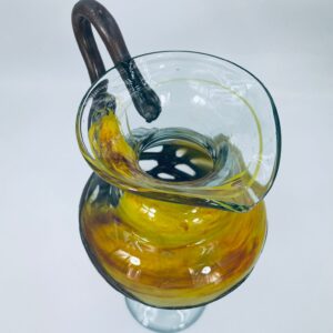 Dzban wyprodukowany przez Filipa Roberta, wykonany ze szkła Rumińskiego , dmuchanego, przezroczysty z przejściem w kolorze żółtym. Dzbanek posiada kosz z uchwytem wykonany z miedzi.