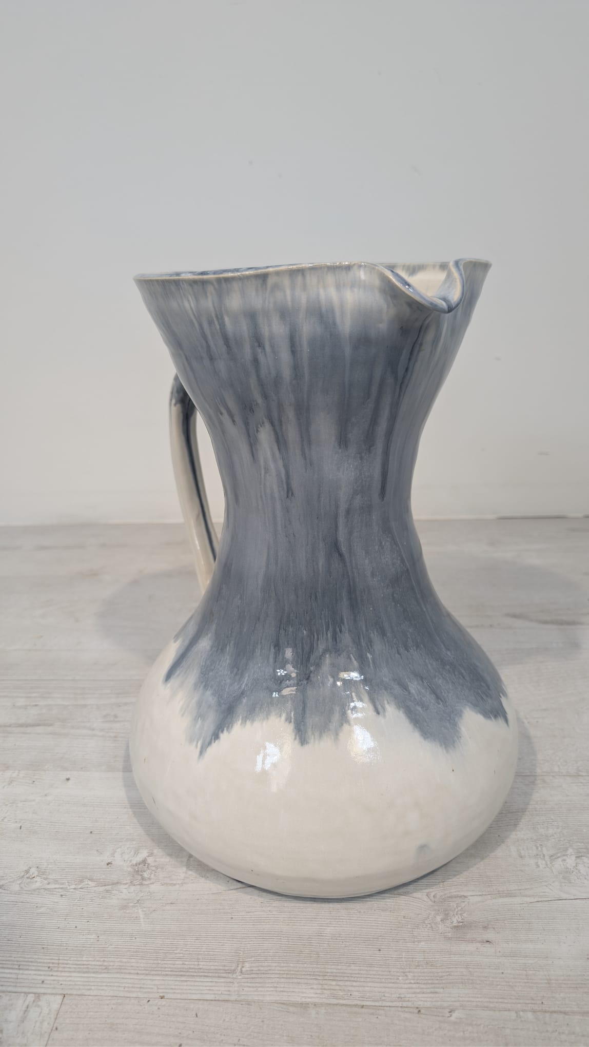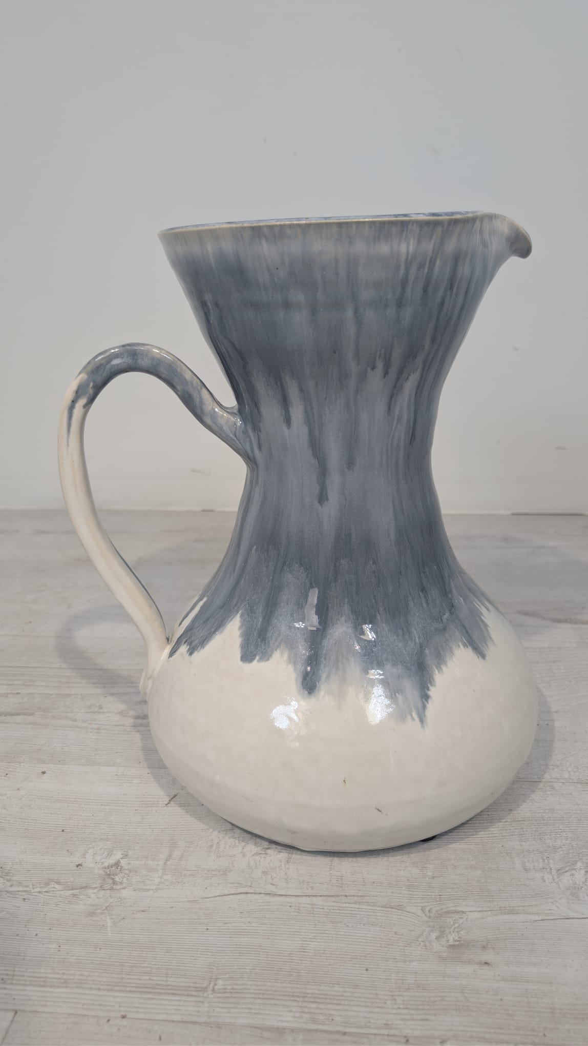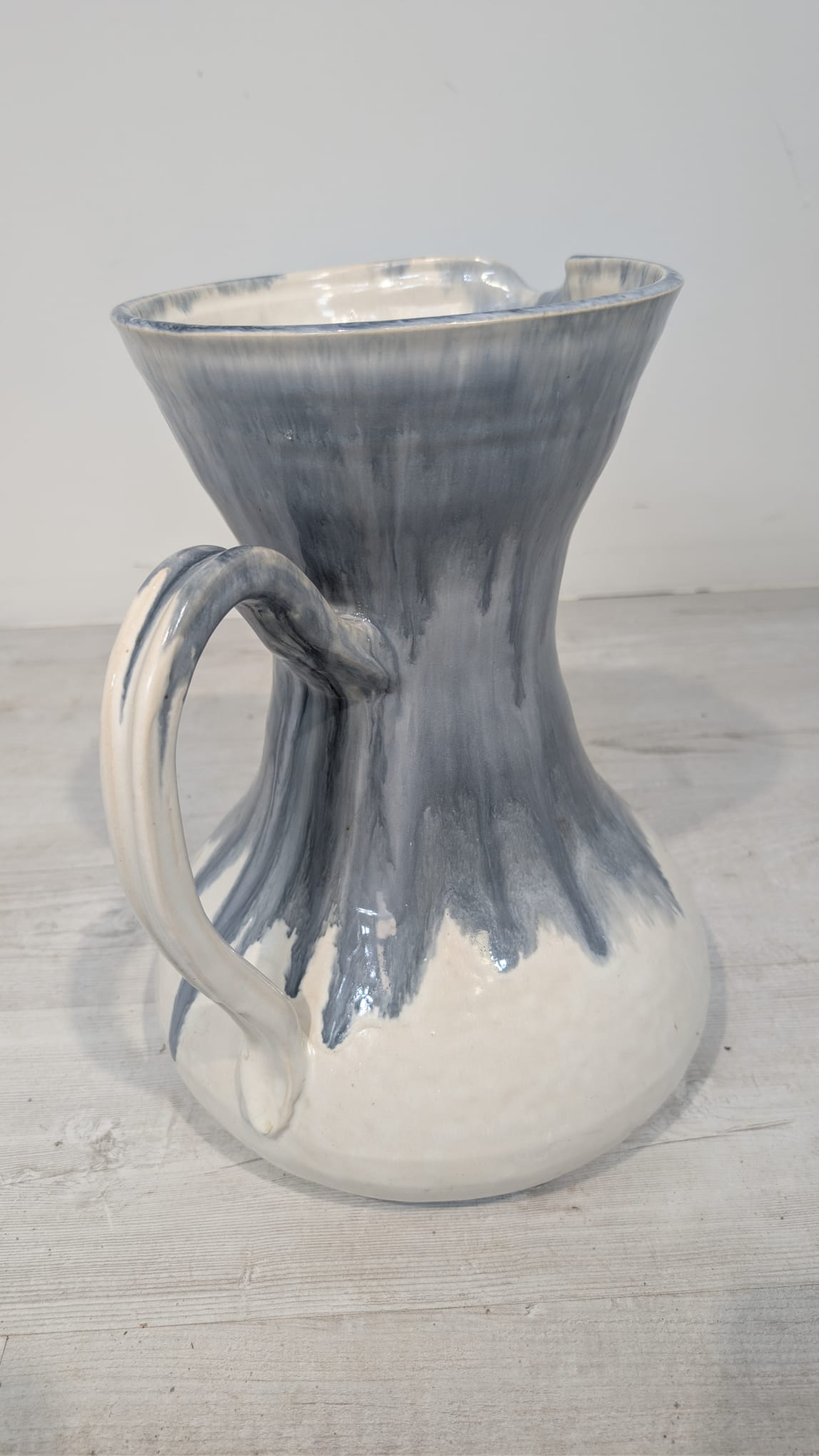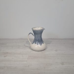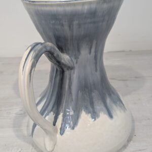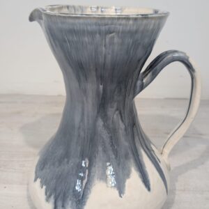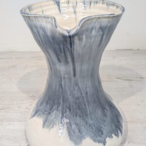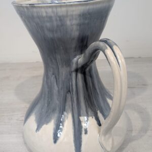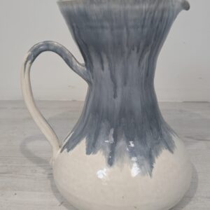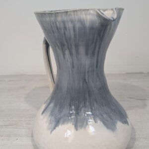 Elegancki, ceramiczny dzbanek lub wazon w stylu vintage. Posiada piękne, szaro-białe wykończenie z efektem drippingu. Idealny jako dekoracja wnętrza lub do przechowywania kwiatów.