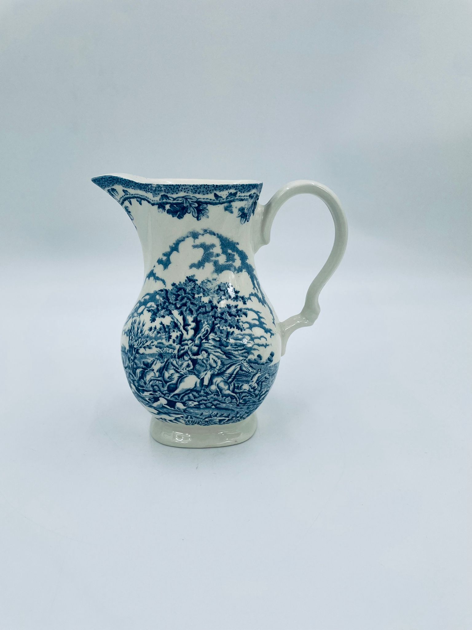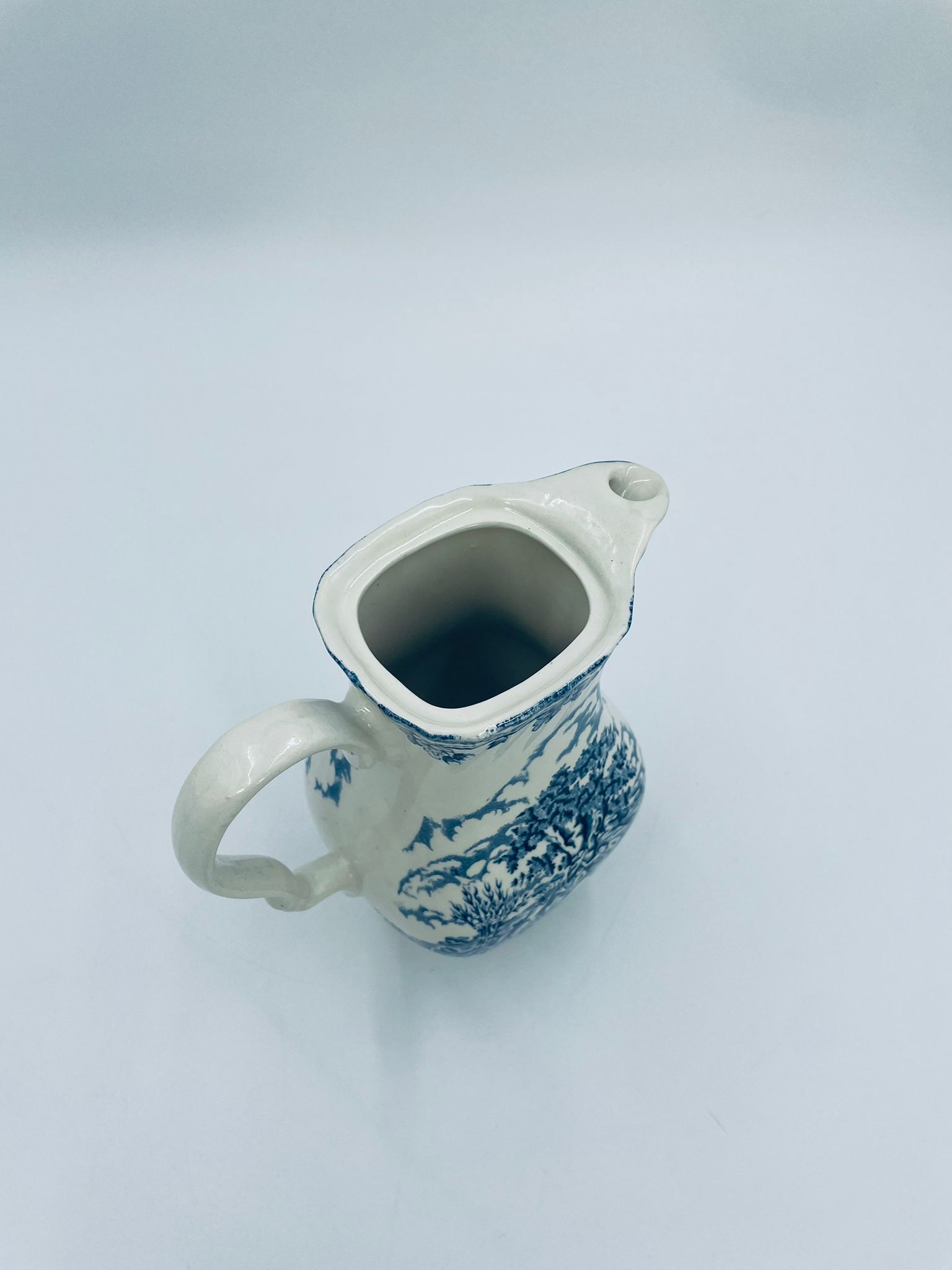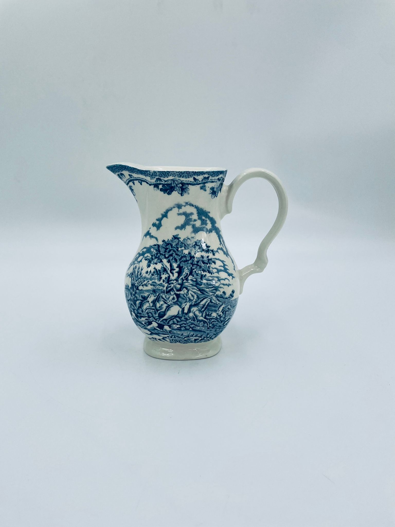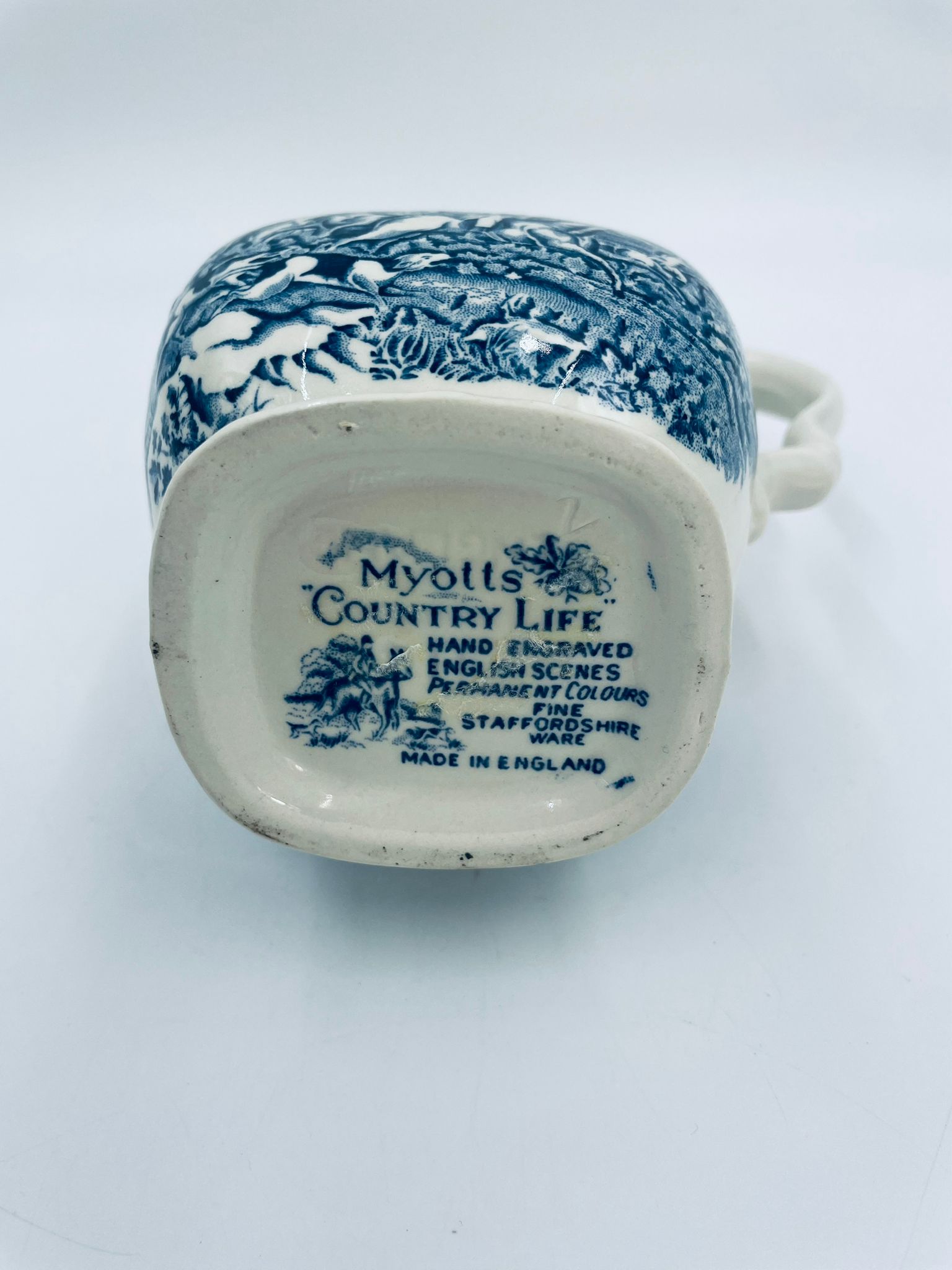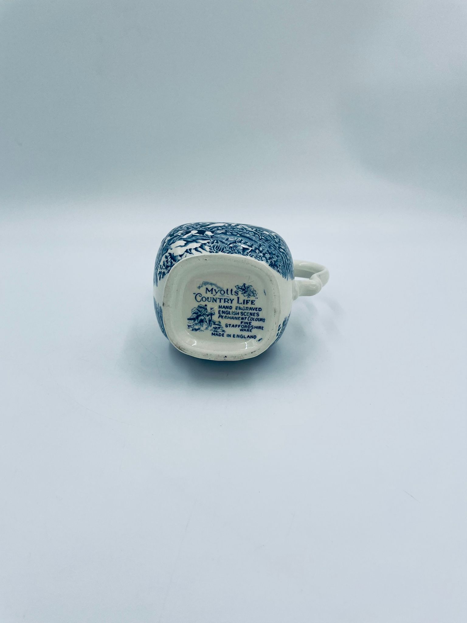 Dzbanek do kawy wytwórni Myotts Country Life, wykonany z wysokie jakości angielskiej porcelany. Dzbanek charakteryzuje się ręcznie grawerowanym, niebieskim wzorem „Country Life” życia na wsi. Brak przykrycia.