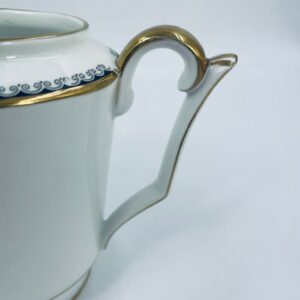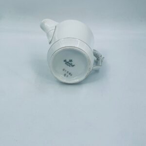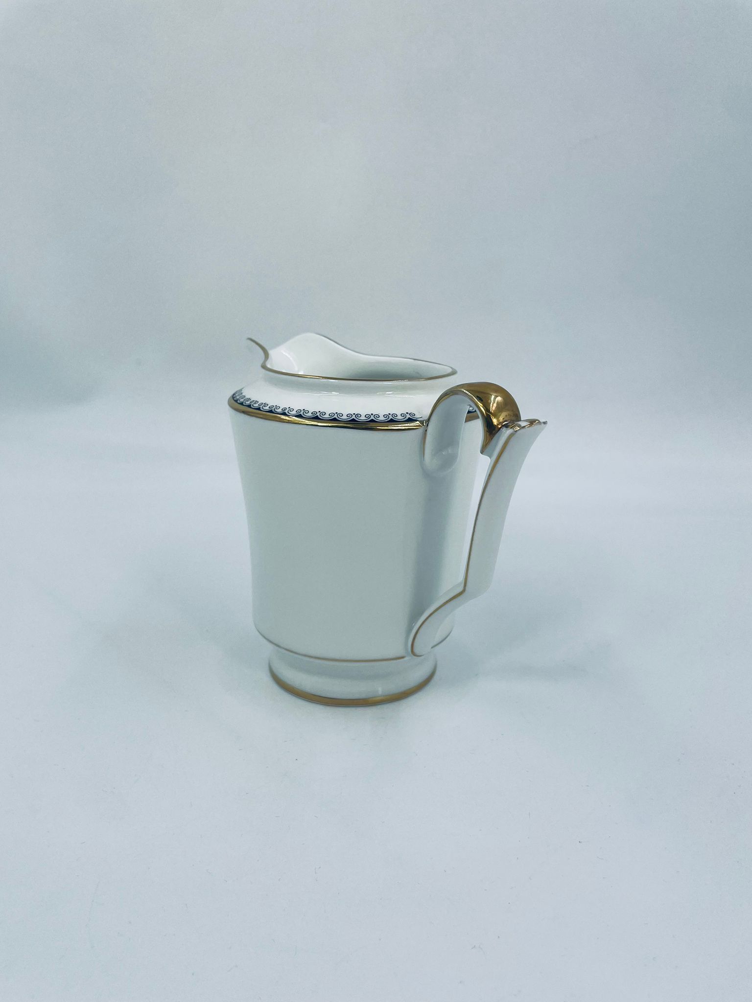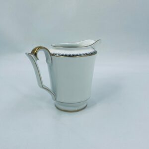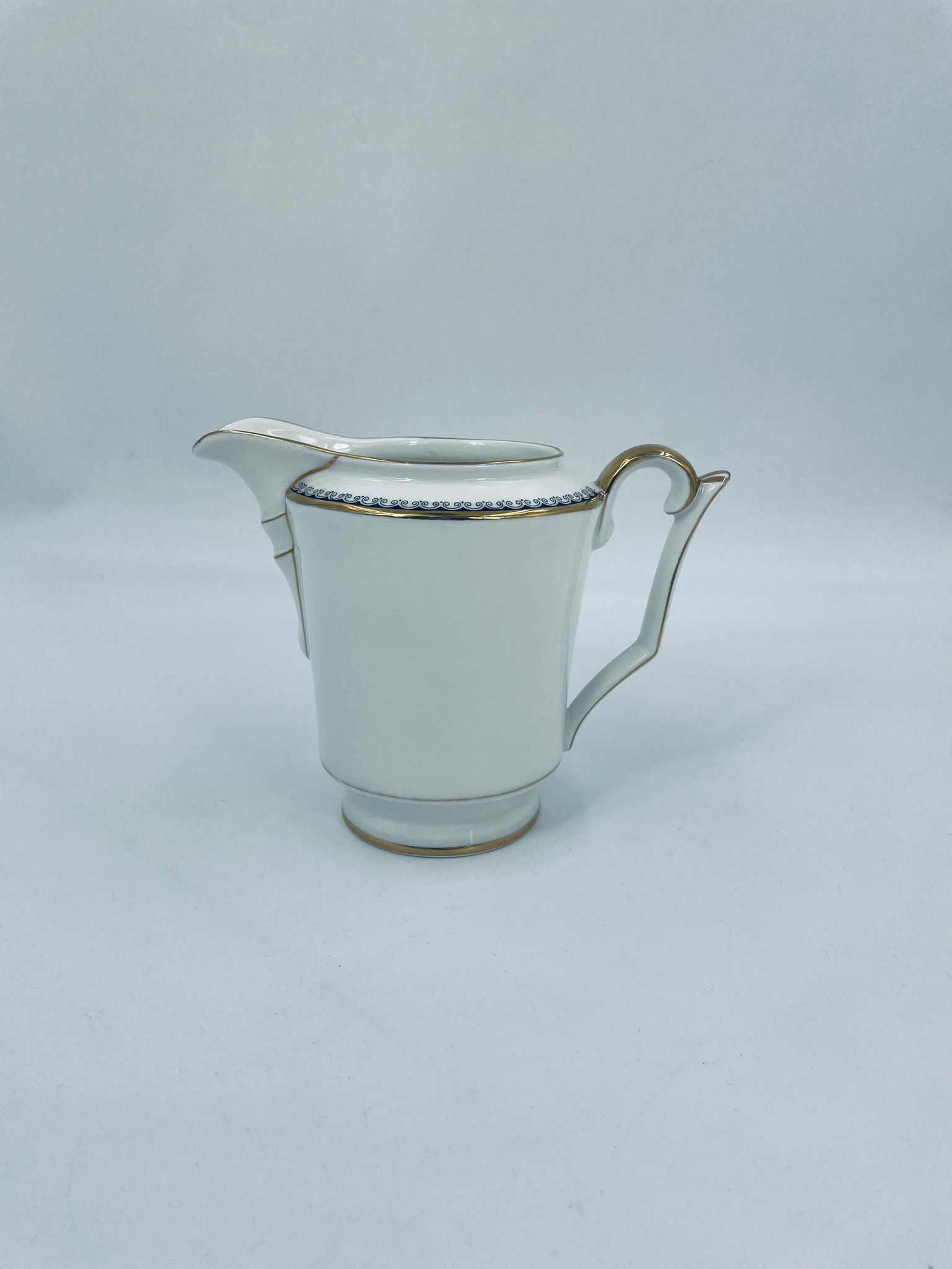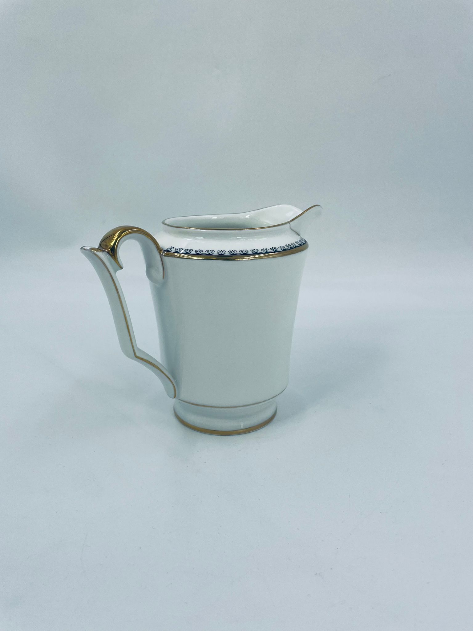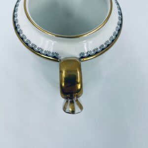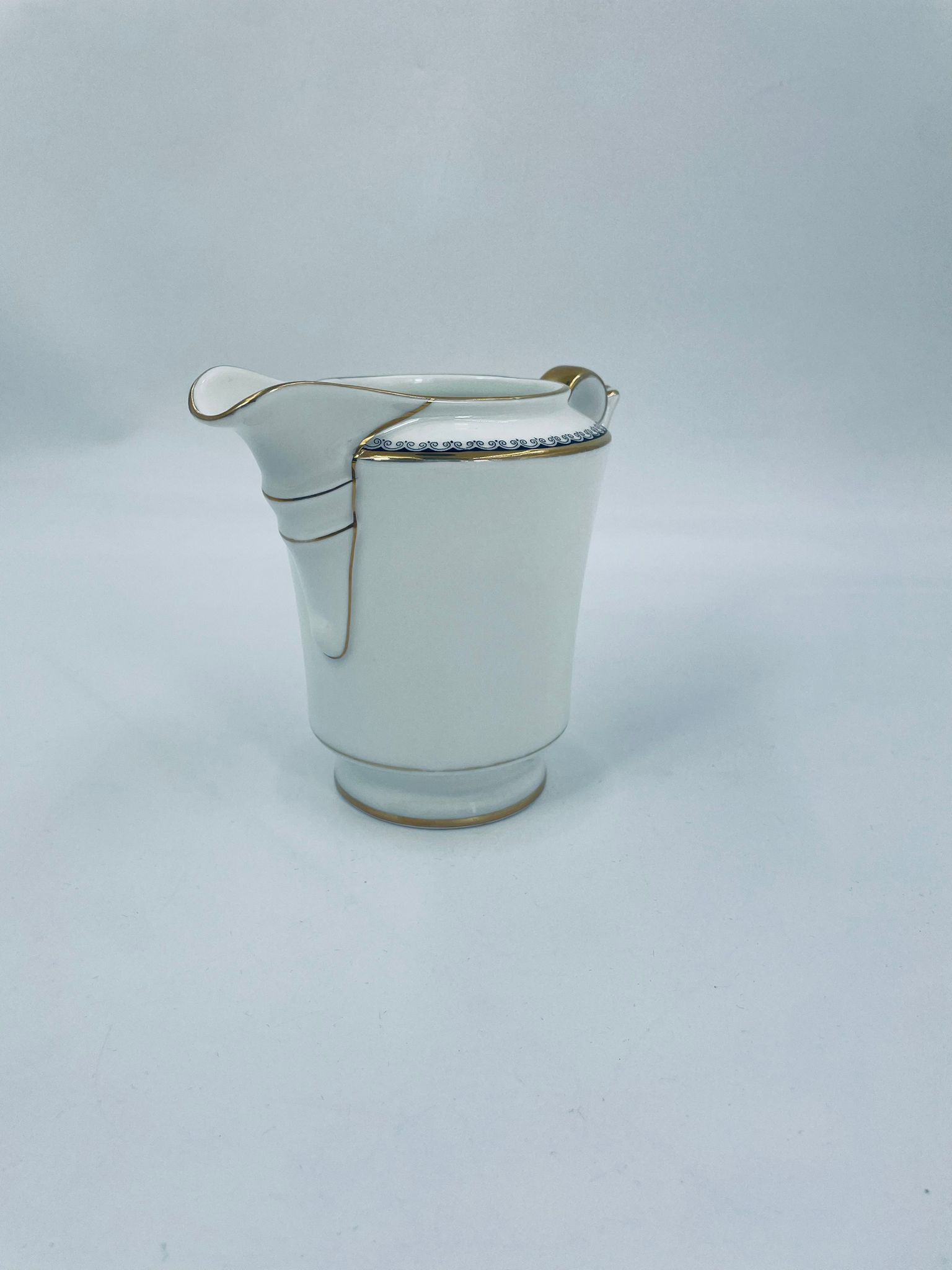 Dzbanek na mleko wytwórni Eschenbach Bavaria, wykonany z wysokiej jakości białej porcelany. Mlecznik z ozdobnym uchwytem, ozdobiony czarnym wzorem, wykończony złoceniem na rantach.