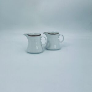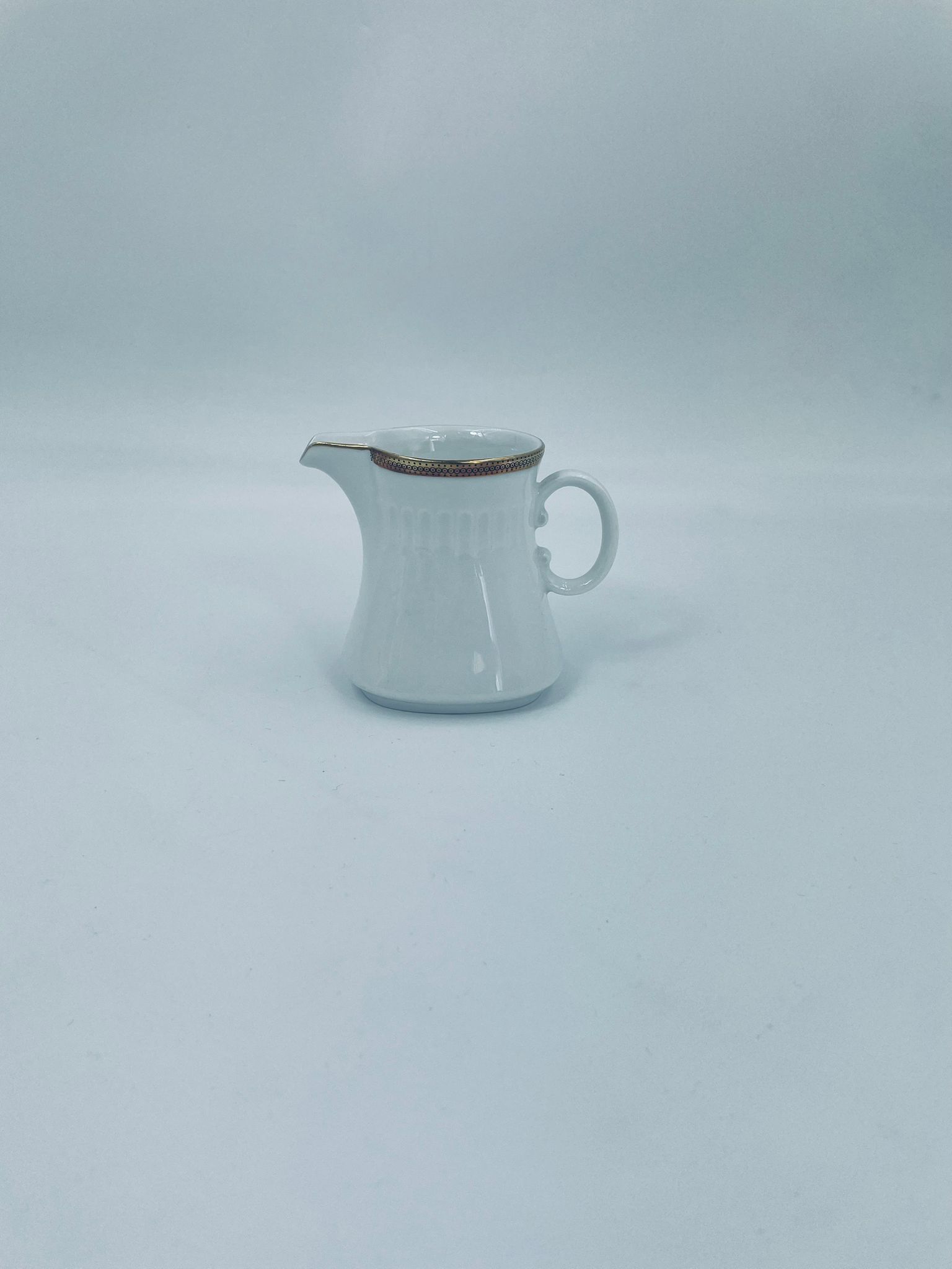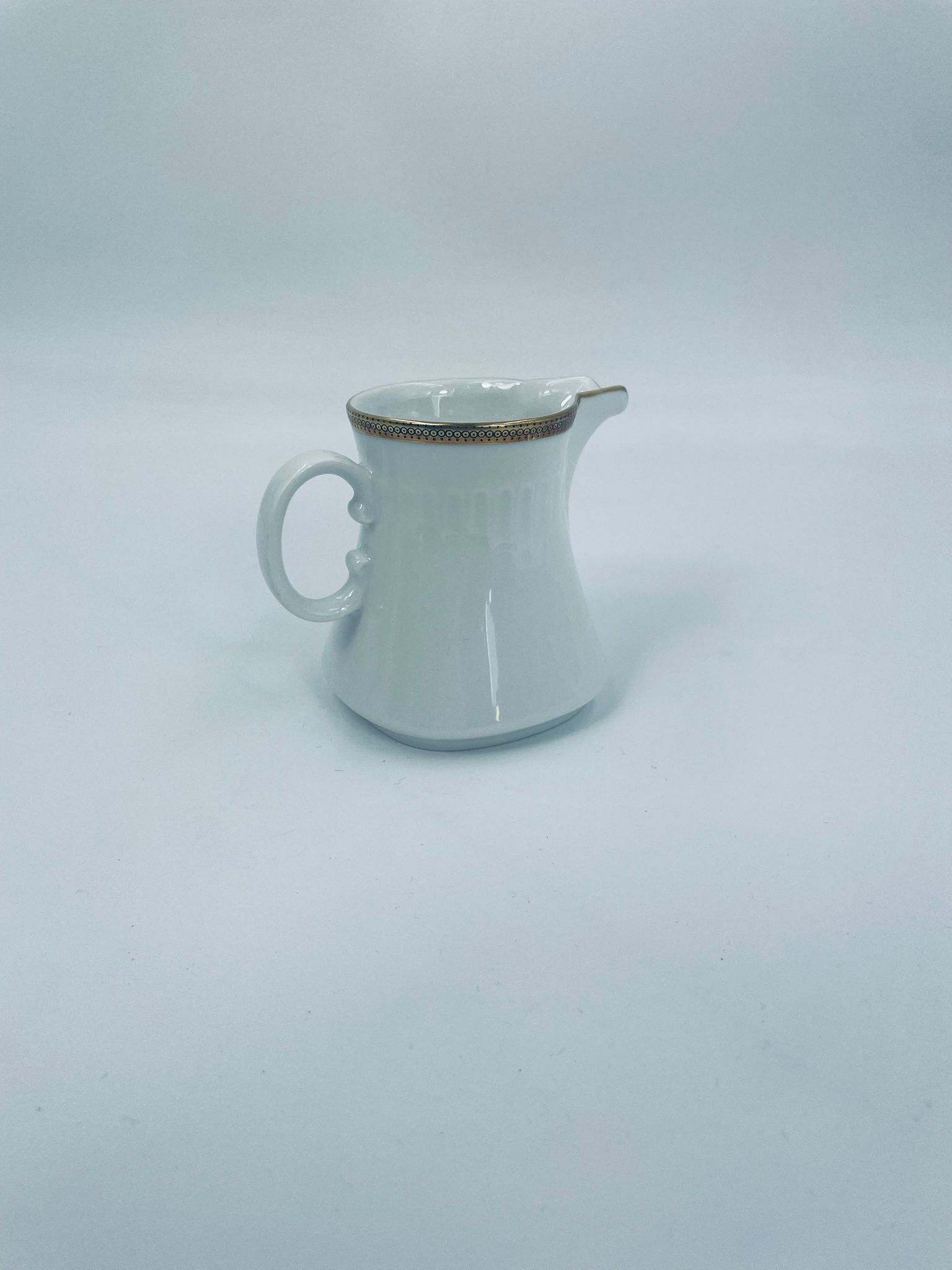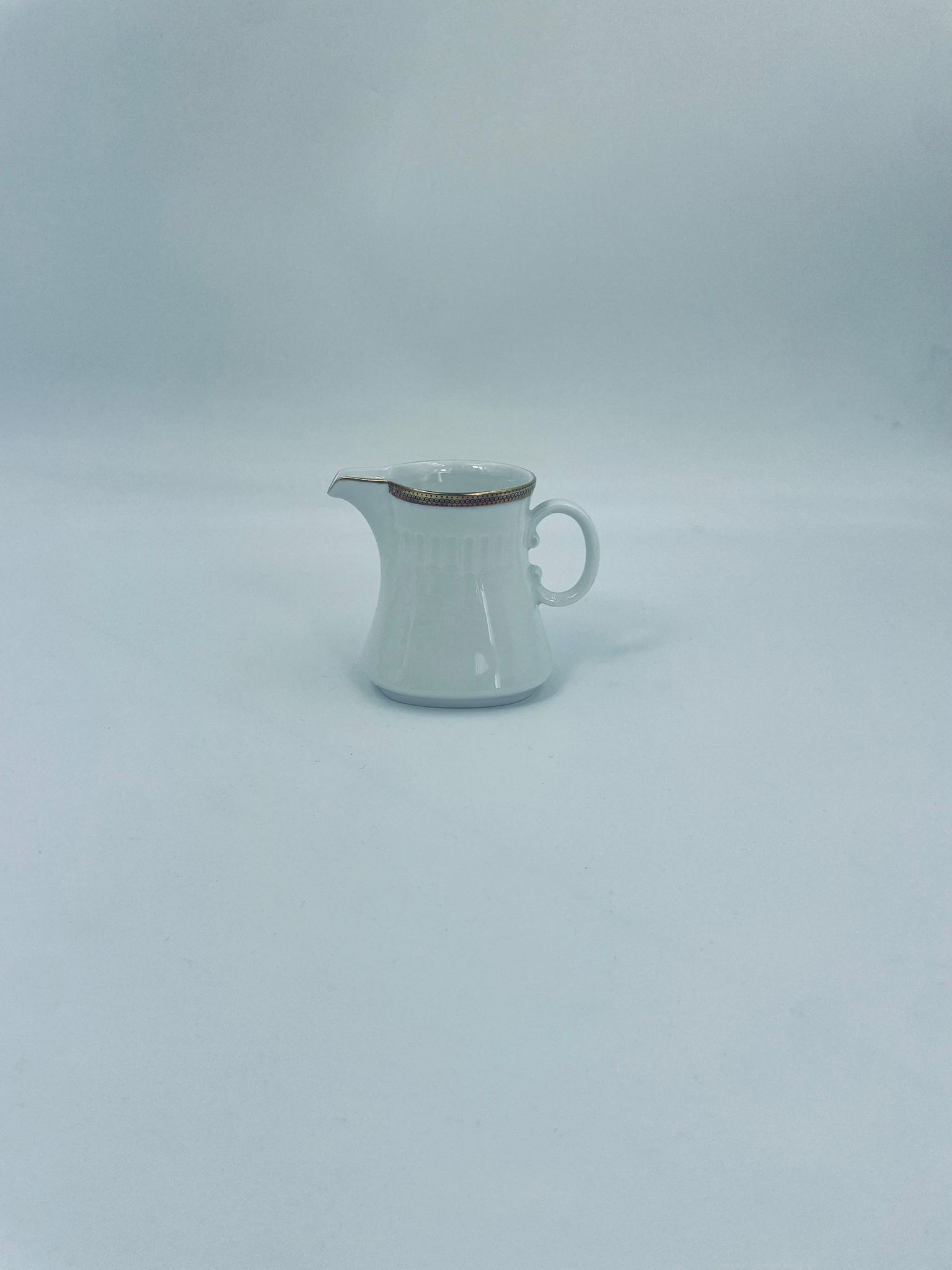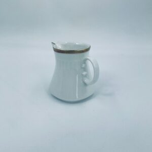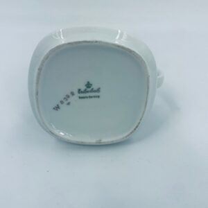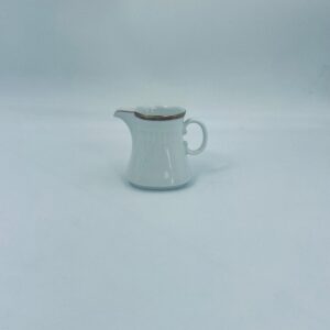 Dzbanek na mleko wytwórni Eschenbach Bavaria, wykonany z wysokiej jakości białej porcelany. Charakteryzuje się klasycznym stylem z delikatnym zdobieniem, złotym obrzeżem oraz subtelnymi ryflowaniami.