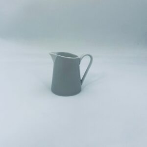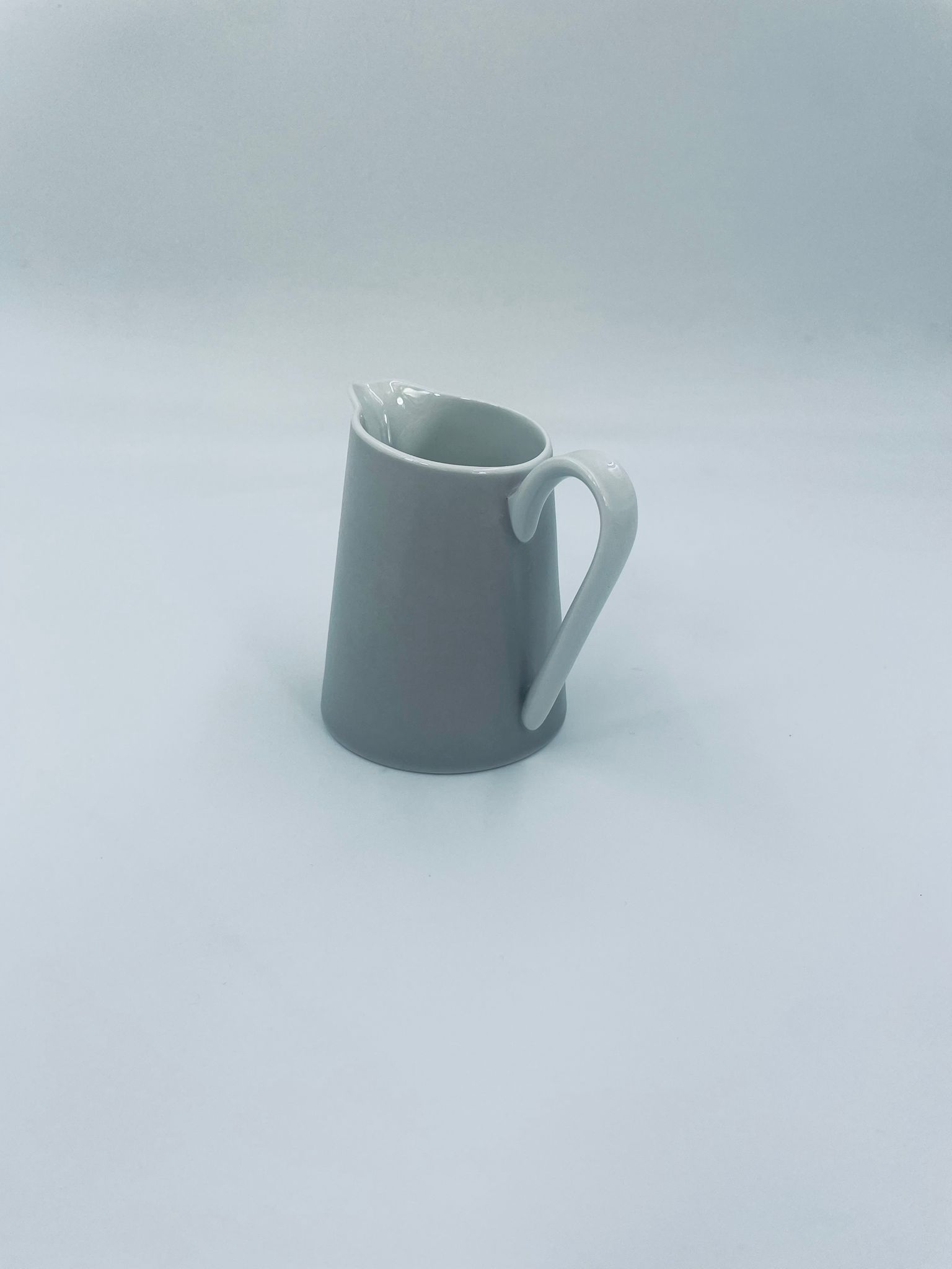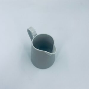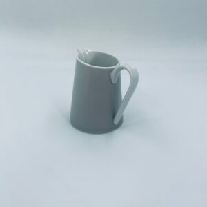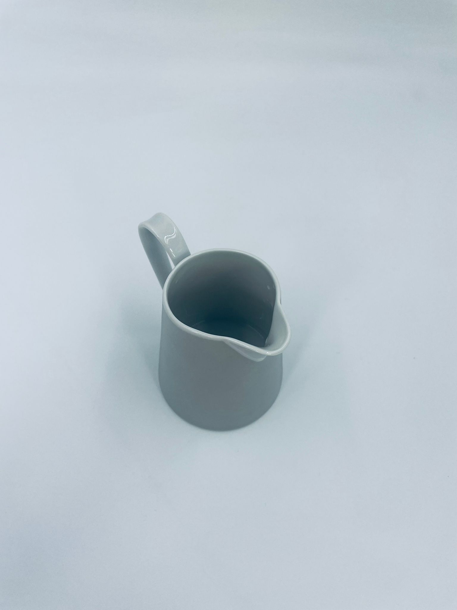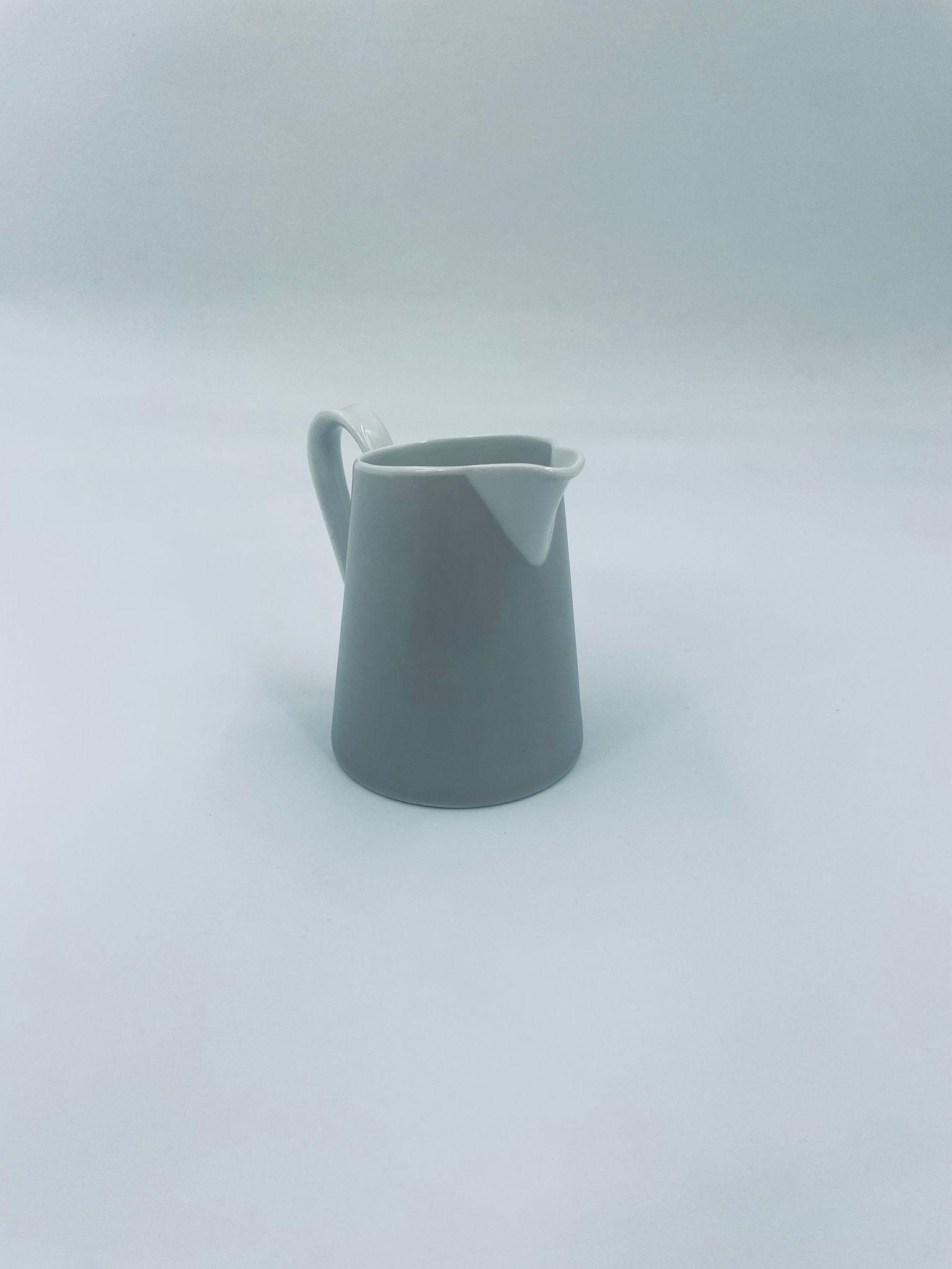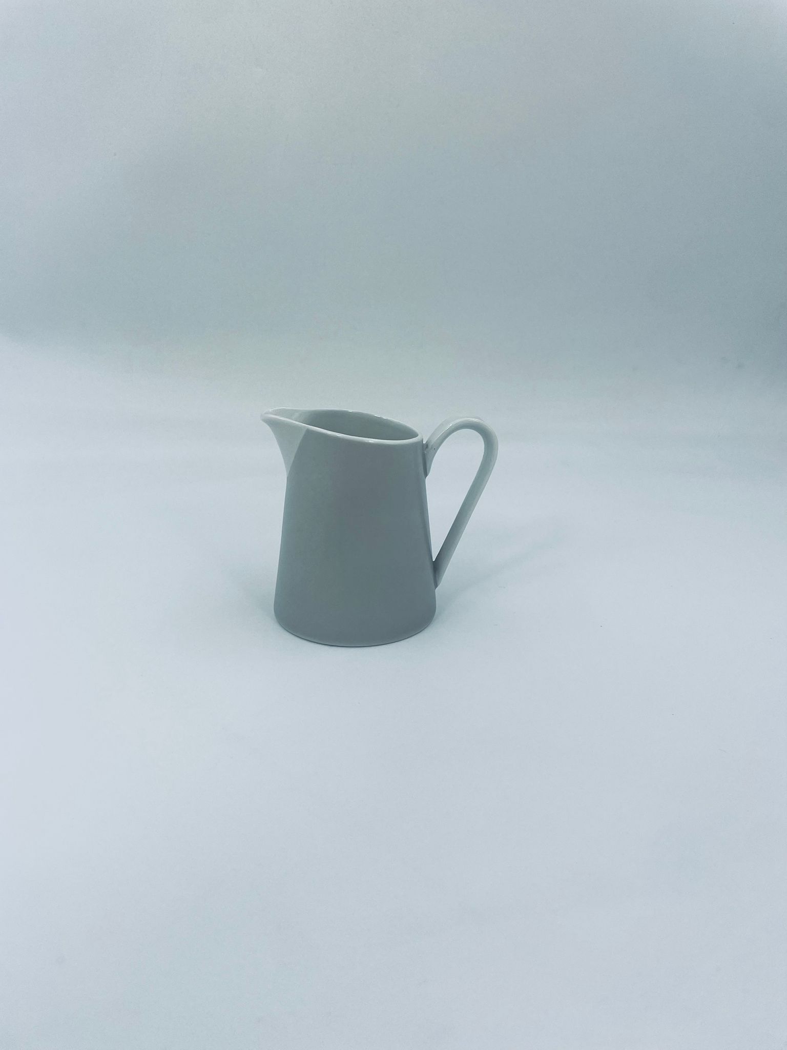 Dzbanek na mleko wytwórni Schönwald, wykonany z wysokiej jakości białej porcelany z odcieniem szarości. Mlecznik klasyczny do użytku codziennego.