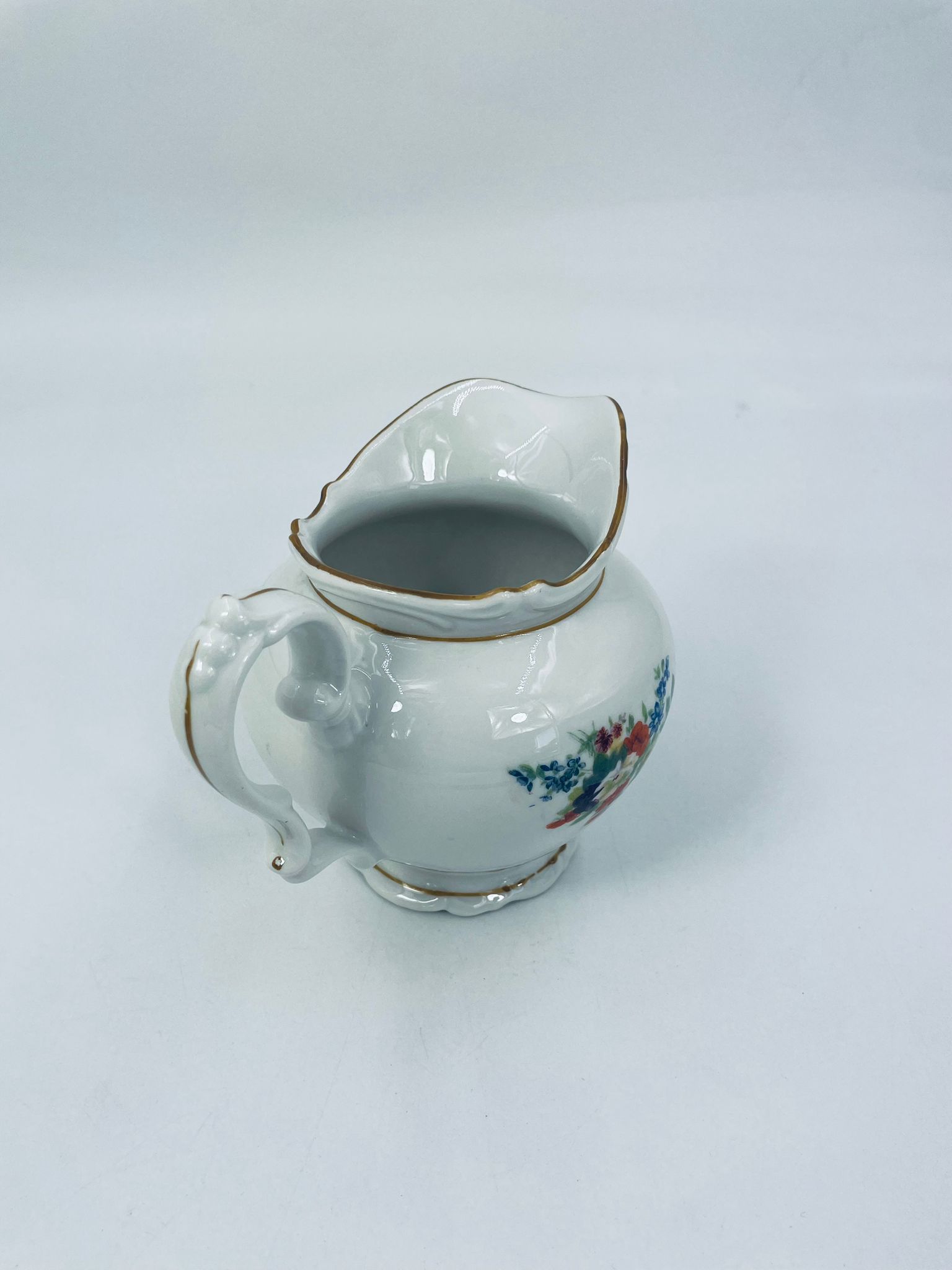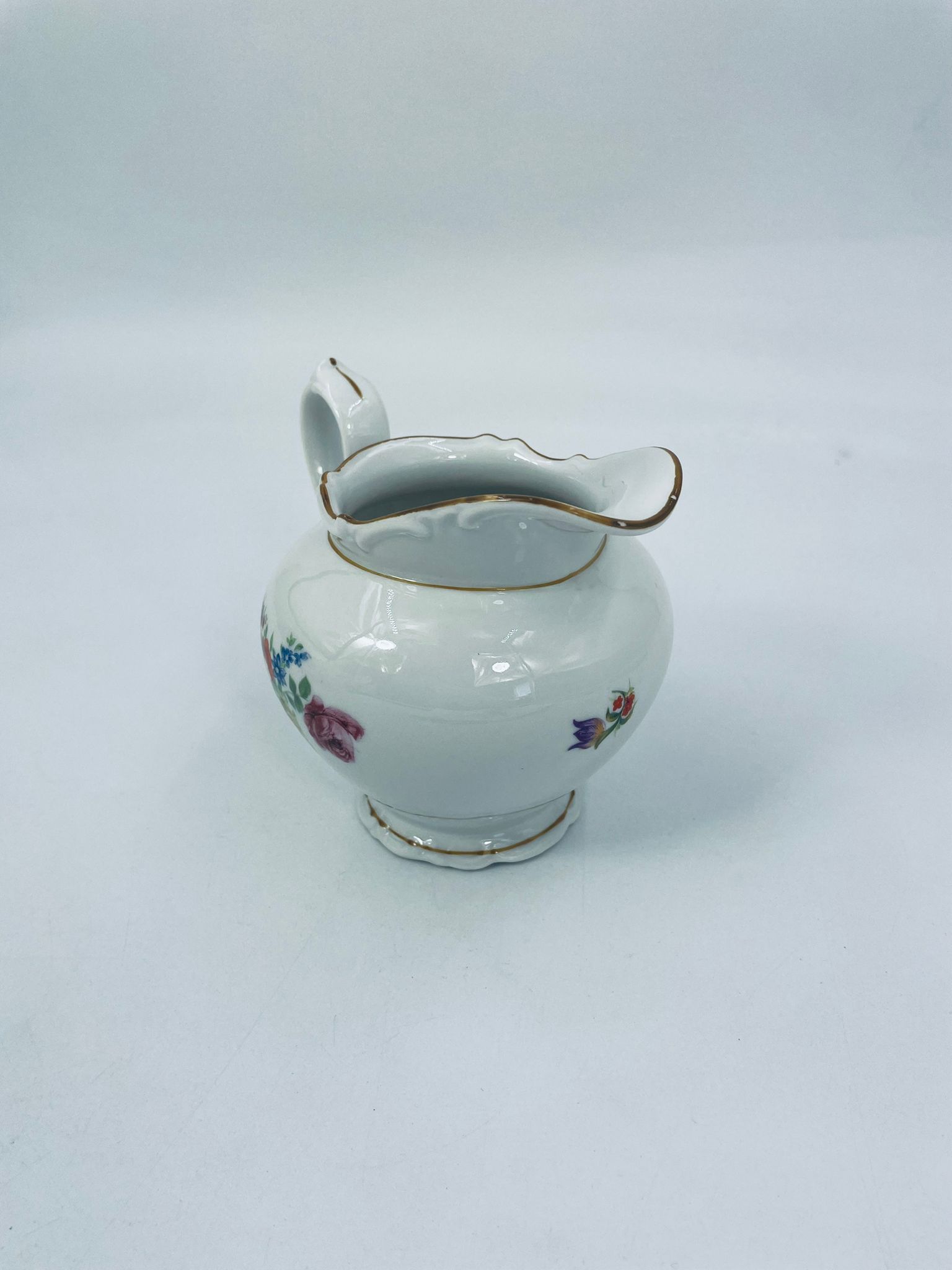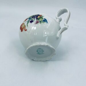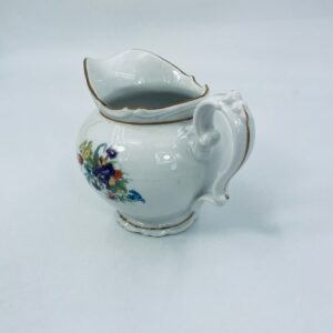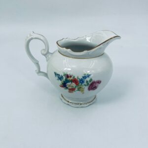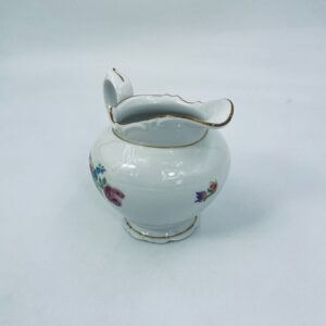 Dzbanek na mleko kolekcjonerski SR Echt Porzellan, porcelana w białym kolorze charakteryzuje sie delikatnymi zdobieniami kwiatowymi i złoconymi detalami, wykończona złoceniami na rantach.