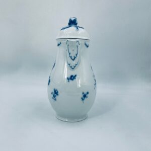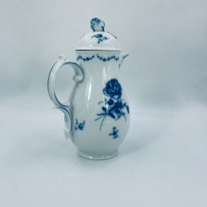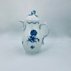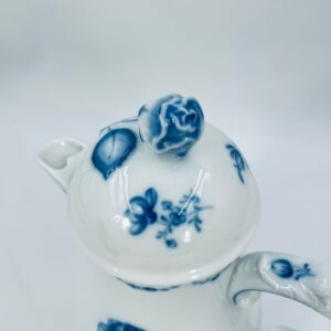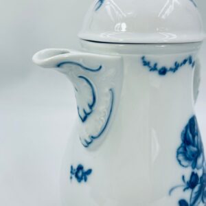 Dzbanek na herbatę renomowanej wytwórni Furstenberg z dekorem Lottine, wykonany z wysokiej jakości białej porcelany. Fürstenberg to jedna z najstarszych manufaktur porcelany w Niemczech, założona w 1747 roku. Dekor „Lottine” opiera się na historycznym wzorze kwiatowym z około 1760 roku. Kolekcja Lottine charakteryzuje się ponadczasowym urokiem w stylu Rokoko z bulwiastymi konturami i podwójnie zakrzywionymi uchwytami. Dzbanuszek z pięknym motywem kwiatowym w kolorze kobaltowym oraz z reliefowymi wzorami i ozdobnym uchwytem w kształcie róży na pokrywie.