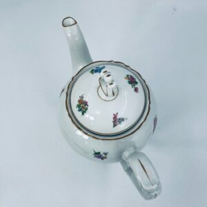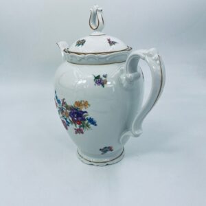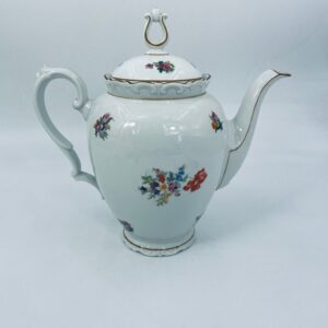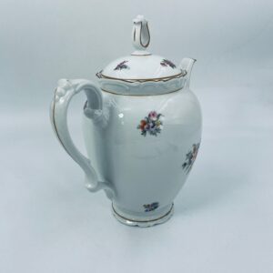 Dzbanek kolekcjonerski SR Echt Porzellan, porcelana w białym kolorze charakteryzuje sie delikatnymi zdobieniami kwiatowymi i złoconymi detalami, wykończona złoceniami na rantach.