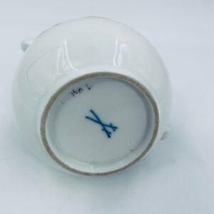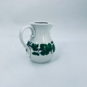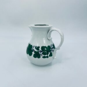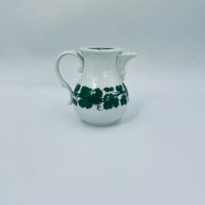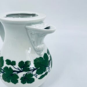 Dzbanek do herbaty wytwórni Meissen, wykonany z najwyższej jakości białej porcelany. Dzbanuszek ozdobiony jest ręcznie malowanym wzorem zielonych liści bluszczu. Imbryczek posiada ozdobny dzióbek oraz uchwyt. Mały uszczerbek w górnej części oraz brak przykrycia