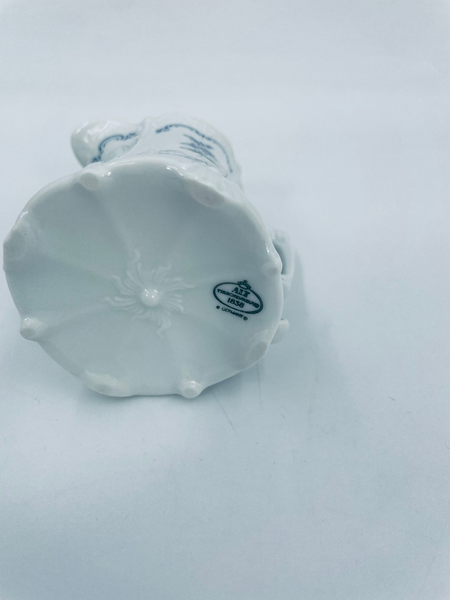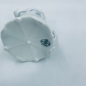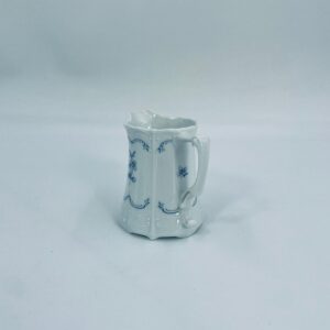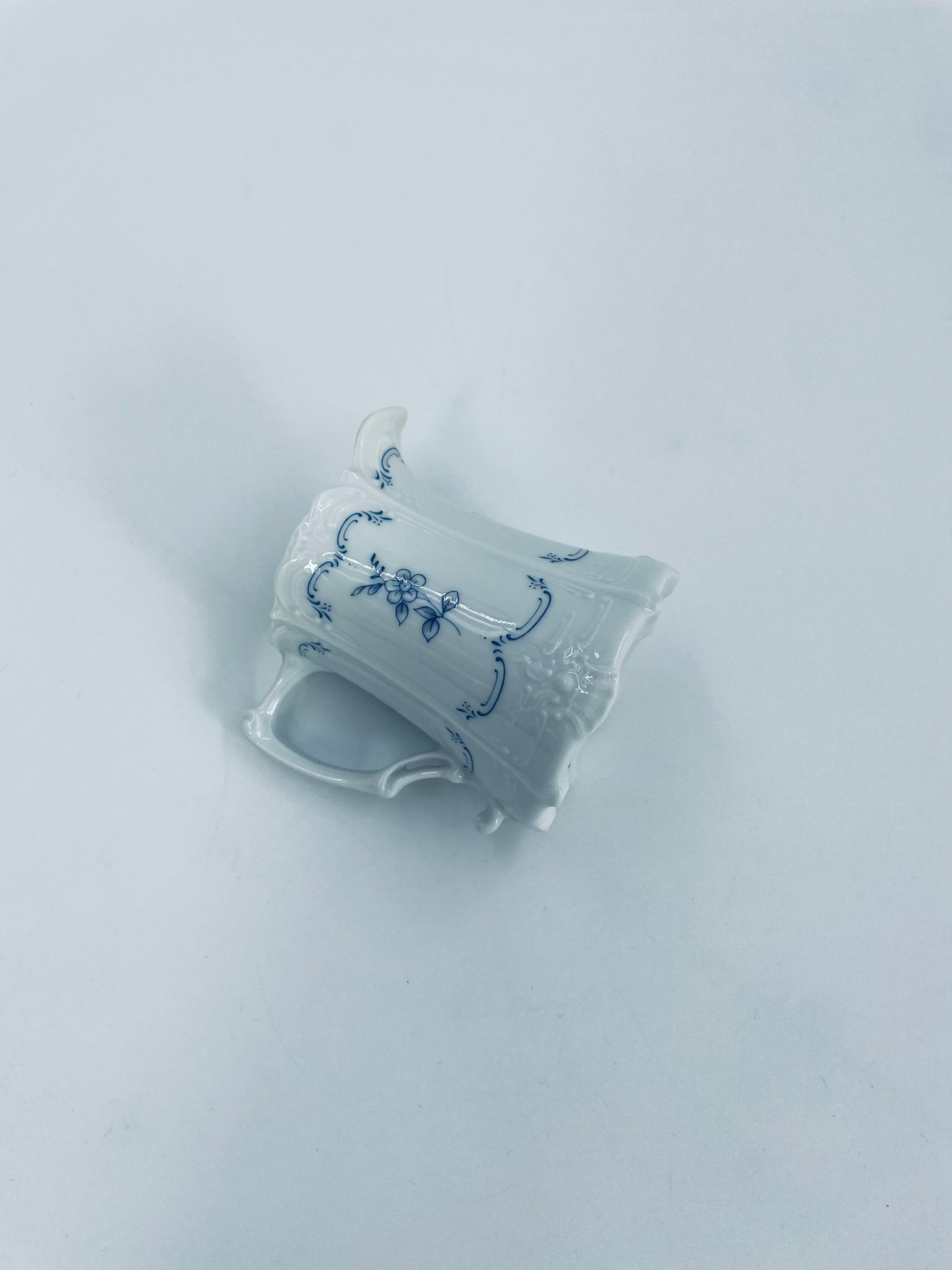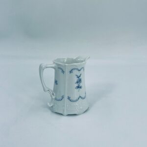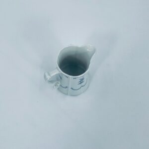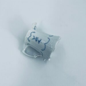 Dzbanuszek na mleko wytwórni Tirschenreuth wykonany z wysokiej jakości białej porcelany. Mlecznik we wzorze Fleur De Lis Blue, charakteryzujący się niebieskimi akcentami, kwiatowym wzorem, ozdobnymi reliefami i pofalowanym brzegiem.