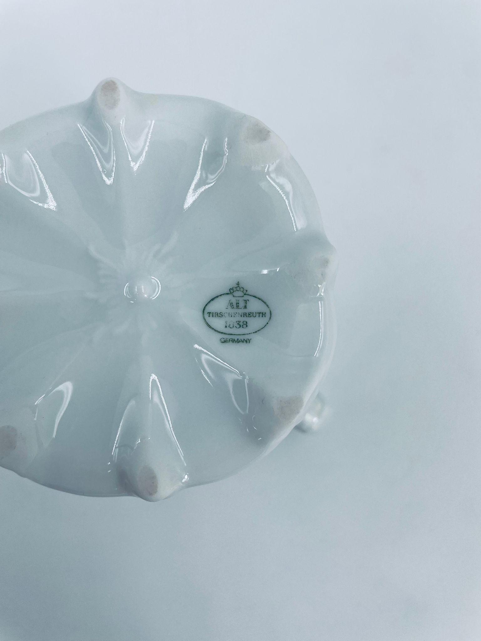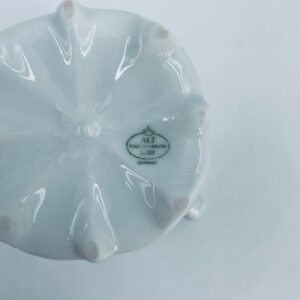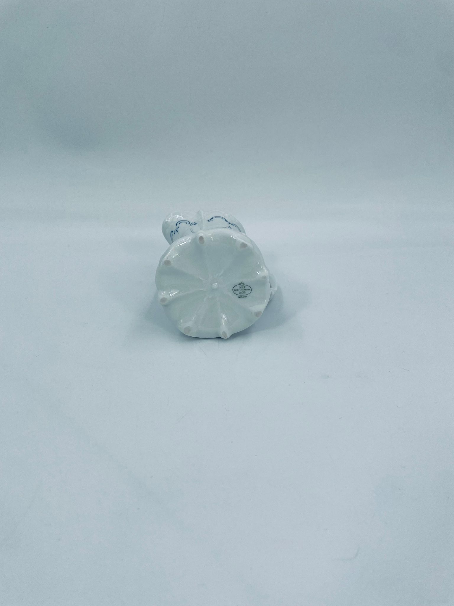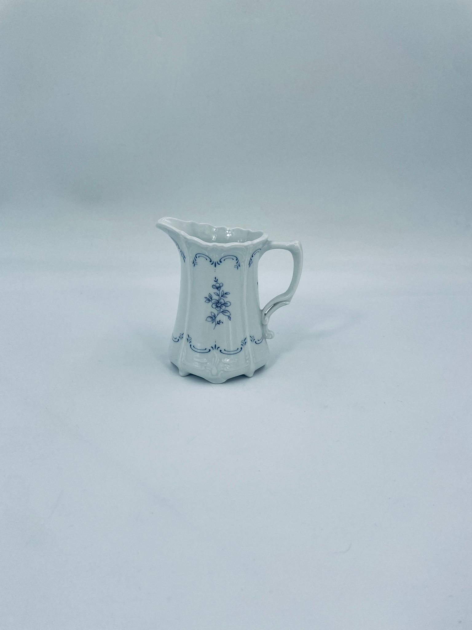 Dzbanuszek na mleko wytwórni Tirschenreuth wykonany z wysokiej jakości białej porcelany. Mlecznik we wzorze Fleur De Lis Blue, charakteryzujący się niebieskimi akcentami, kwiatowym wzorem, ozdobnymi reliefami i pofalowanym brzegiem.